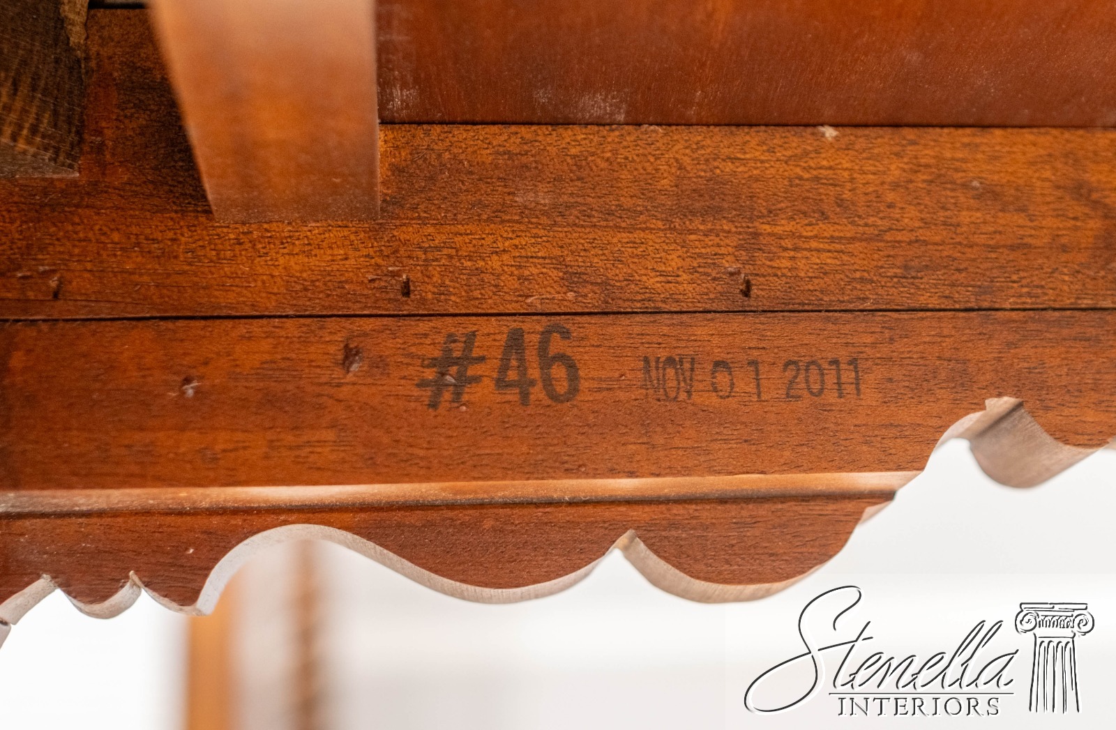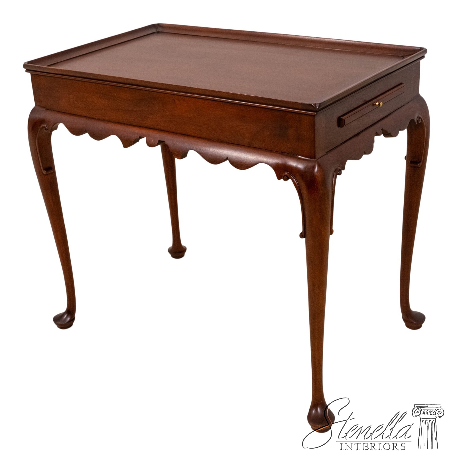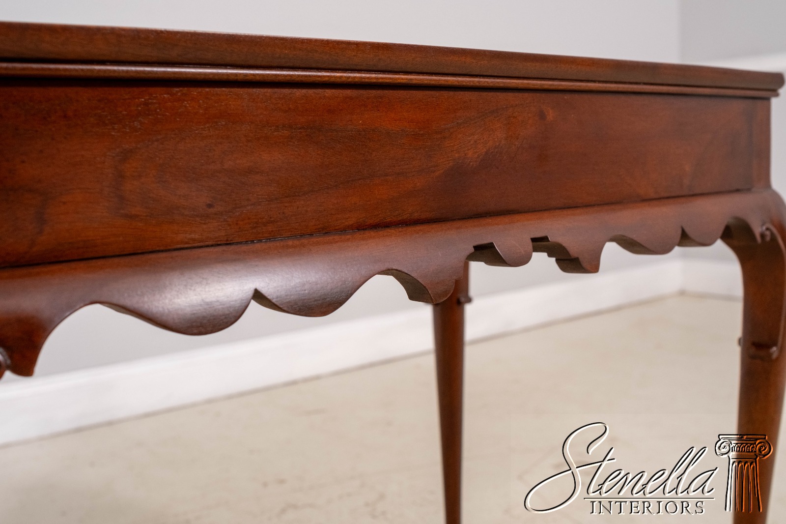Details: Finish no.46 Colonial Williamsburg Fine Carved Details High Quality Construction Queen Anne Legs & Pad Feet 18 C. Design Chippendale Style Traditional Style Scalloped Apron Pull Out Tray Slides Offered @ Fraction Original Retail Cost