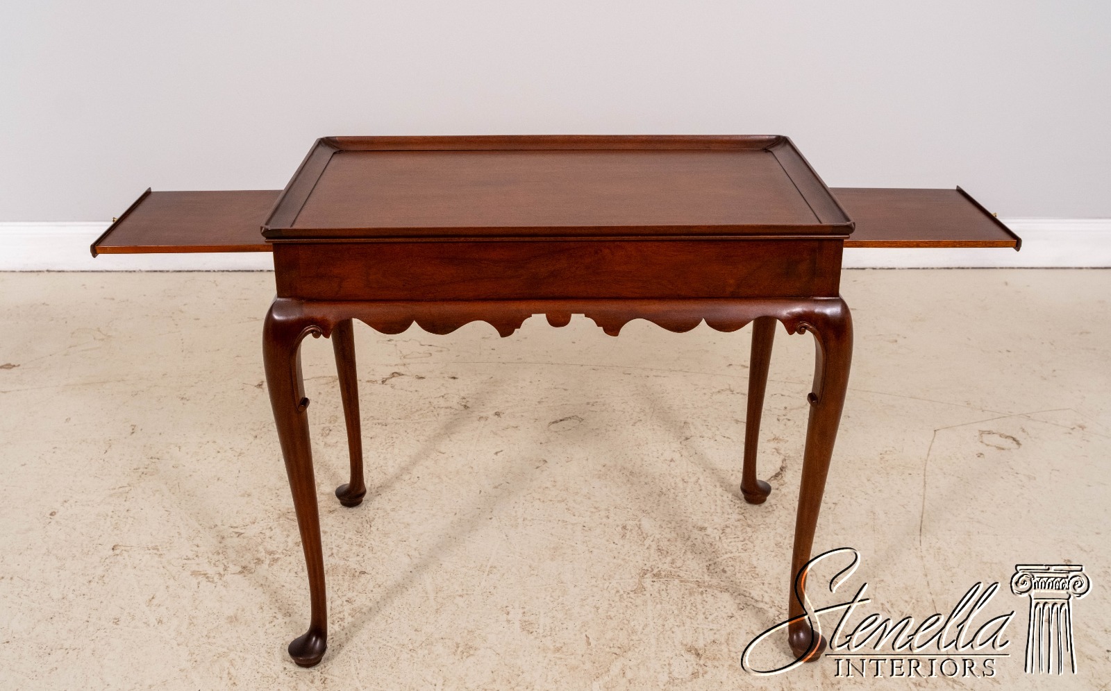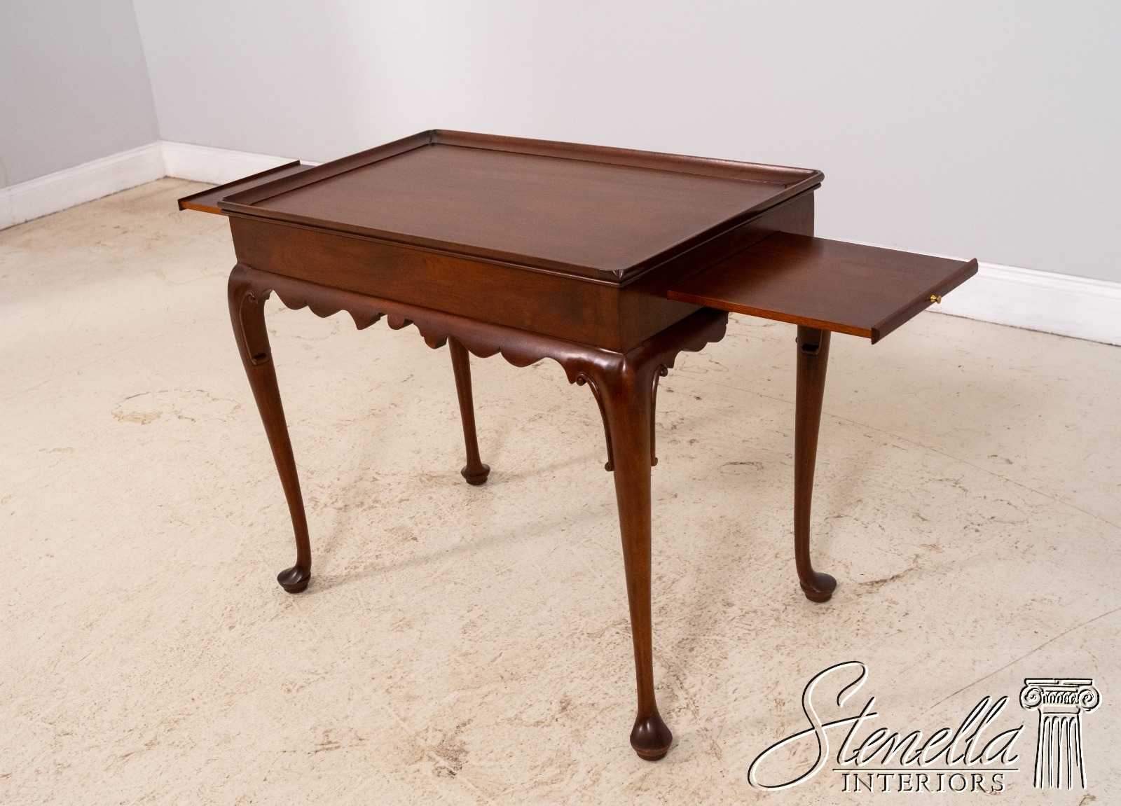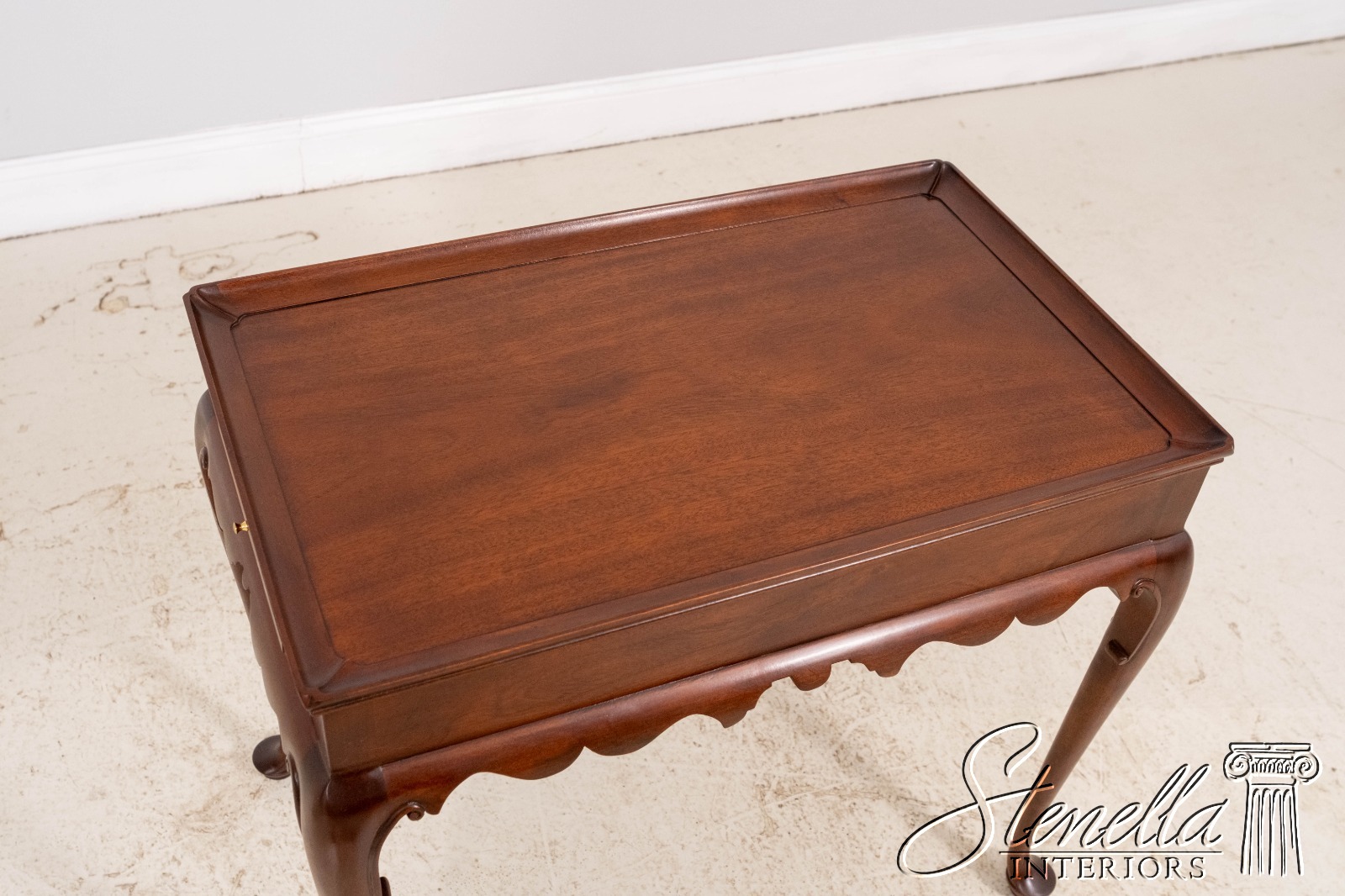 Details: Finish no.46 Colonial Williamsburg Fine Carved Details High Quality Construction Queen Anne Legs & Pad Feet 18 C. Design Chippendale Style Traditional Style Scalloped Apron Pull Out Tray Slides Offered @ Fraction Original Retail Cost