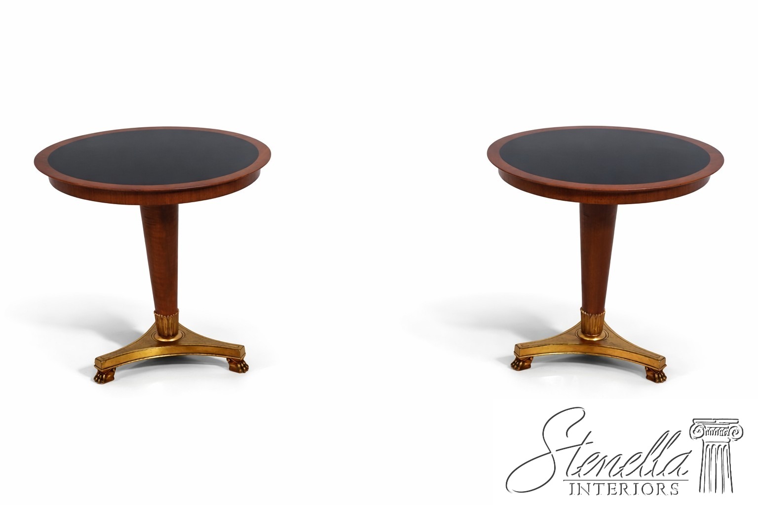 72054: Pair Vintage French Empire Round Gueridon Side Tables w. Bronze Bases