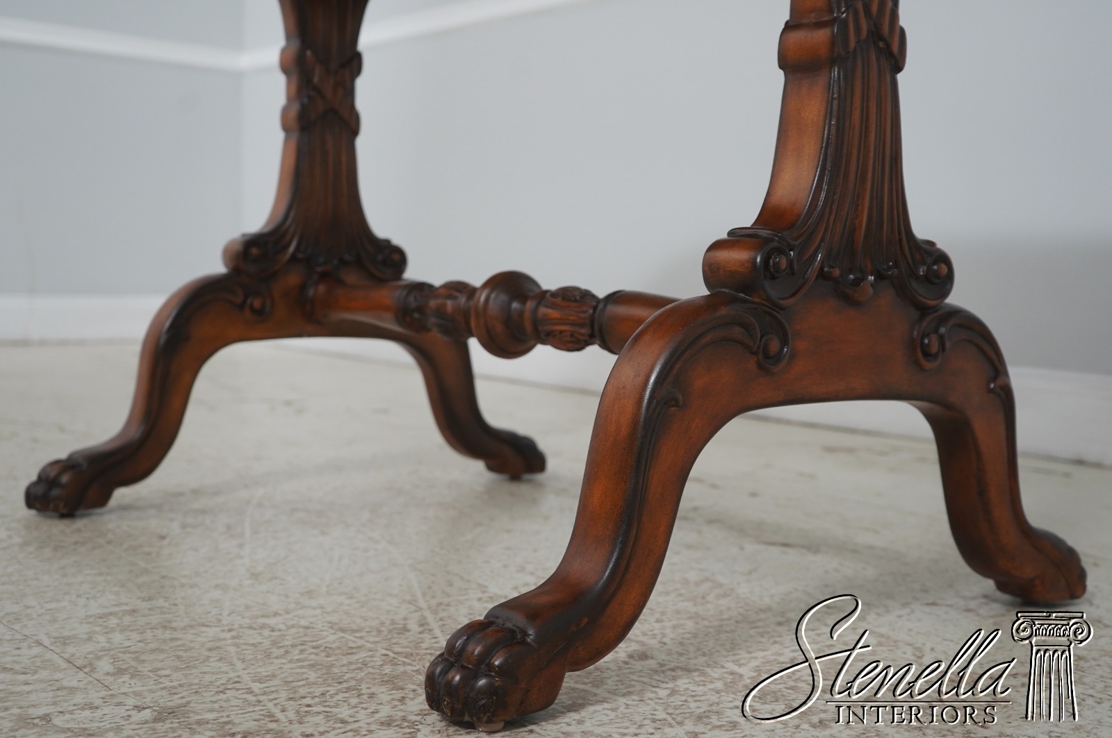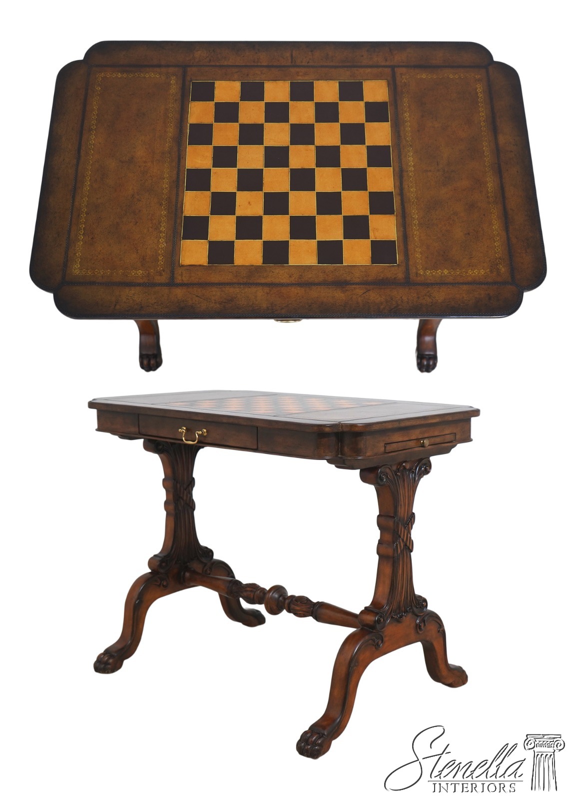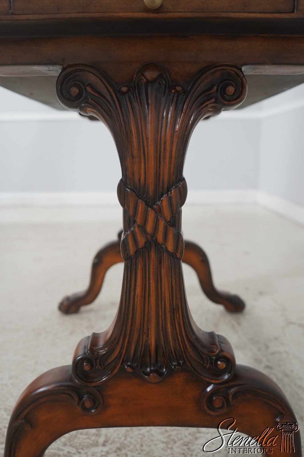 Details: Ball & Claw Feet Fine Carved Details High Quality Construction Nice Tooled Leather Top Traditional Style Mahogany Base 2 Drawers Stretcher Base Frame 2 Slide Out Slides Un-Marked As To Manufacture - Possibly By Maitland Smith Or Similar Manufacture Offered @ Fraction Original Retail Cost