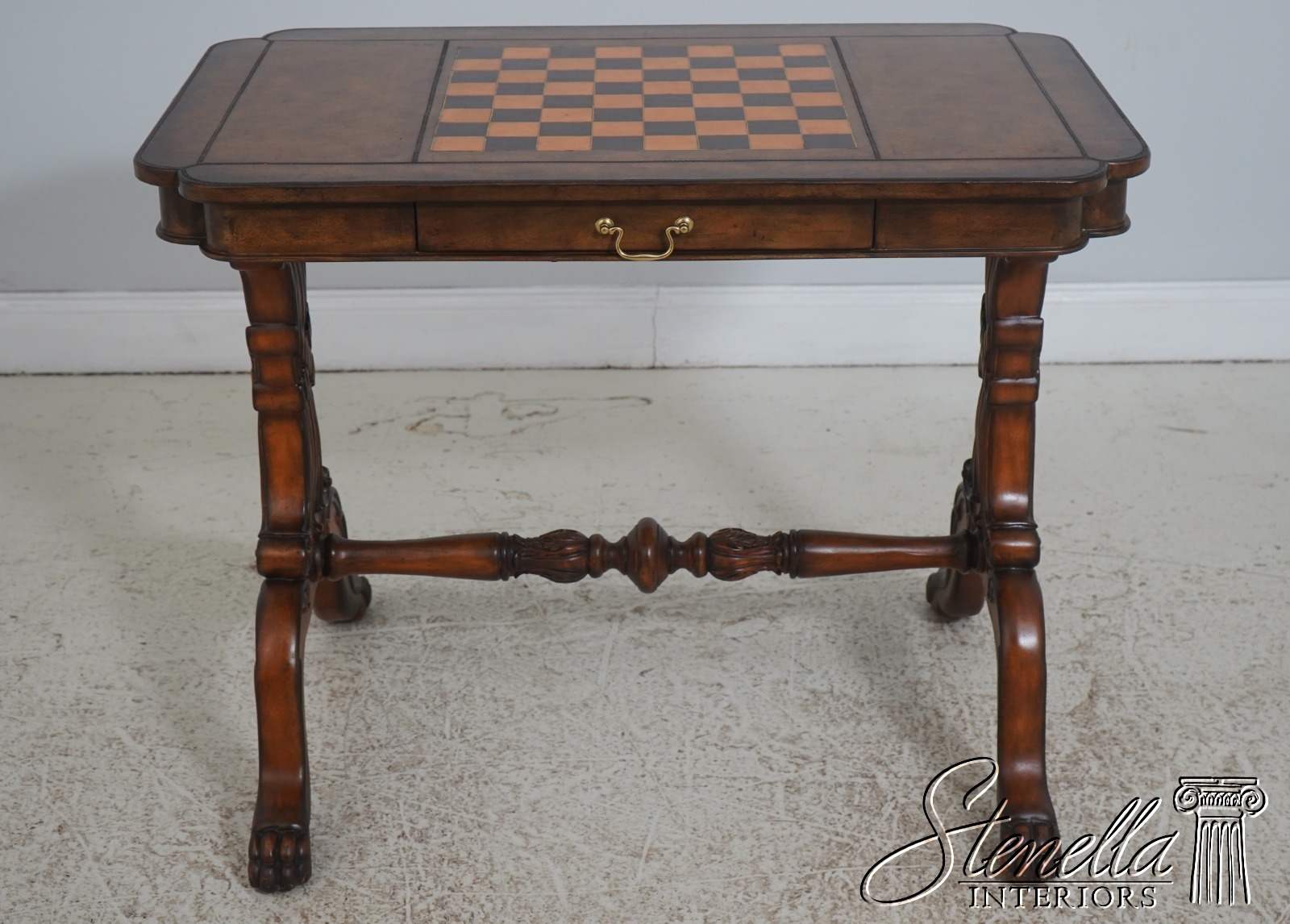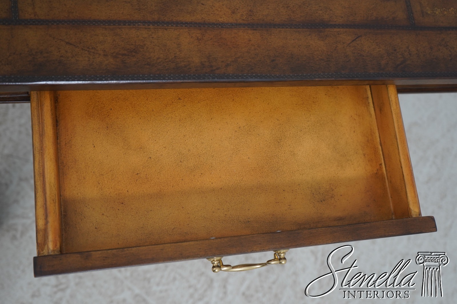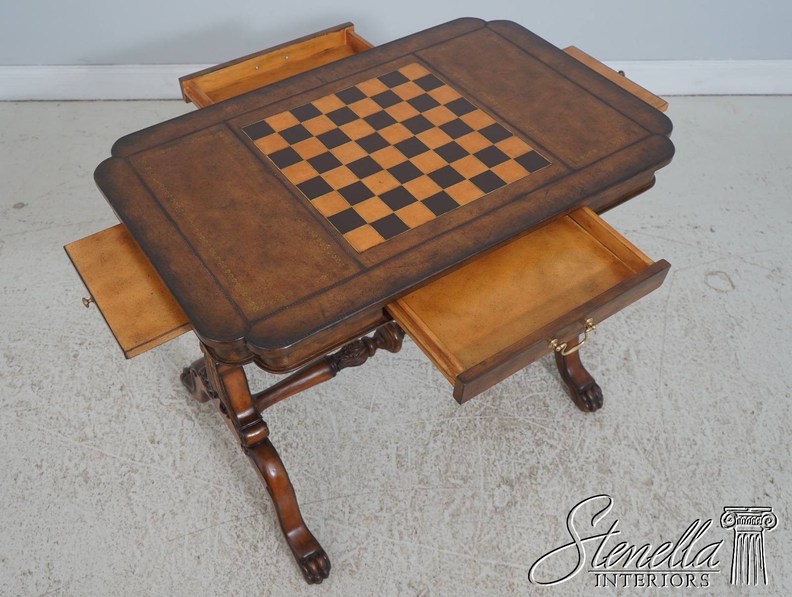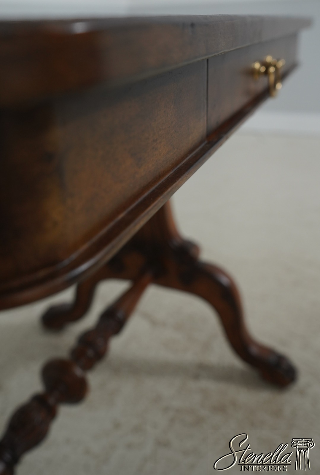 Details: Ball & Claw Feet Fine Carved Details High Quality Construction Nice Tooled Leather Top Traditional Style Mahogany Base 2 Drawers Stretcher Base Frame 2 Slide Out Slides Un-Marked As To Manufacture - Possibly By Maitland Smith Or Similar Manufacture Offered @ Fraction Original Retail Cost