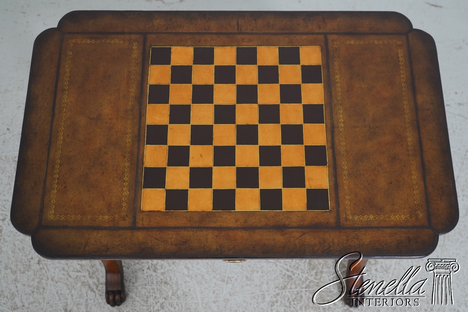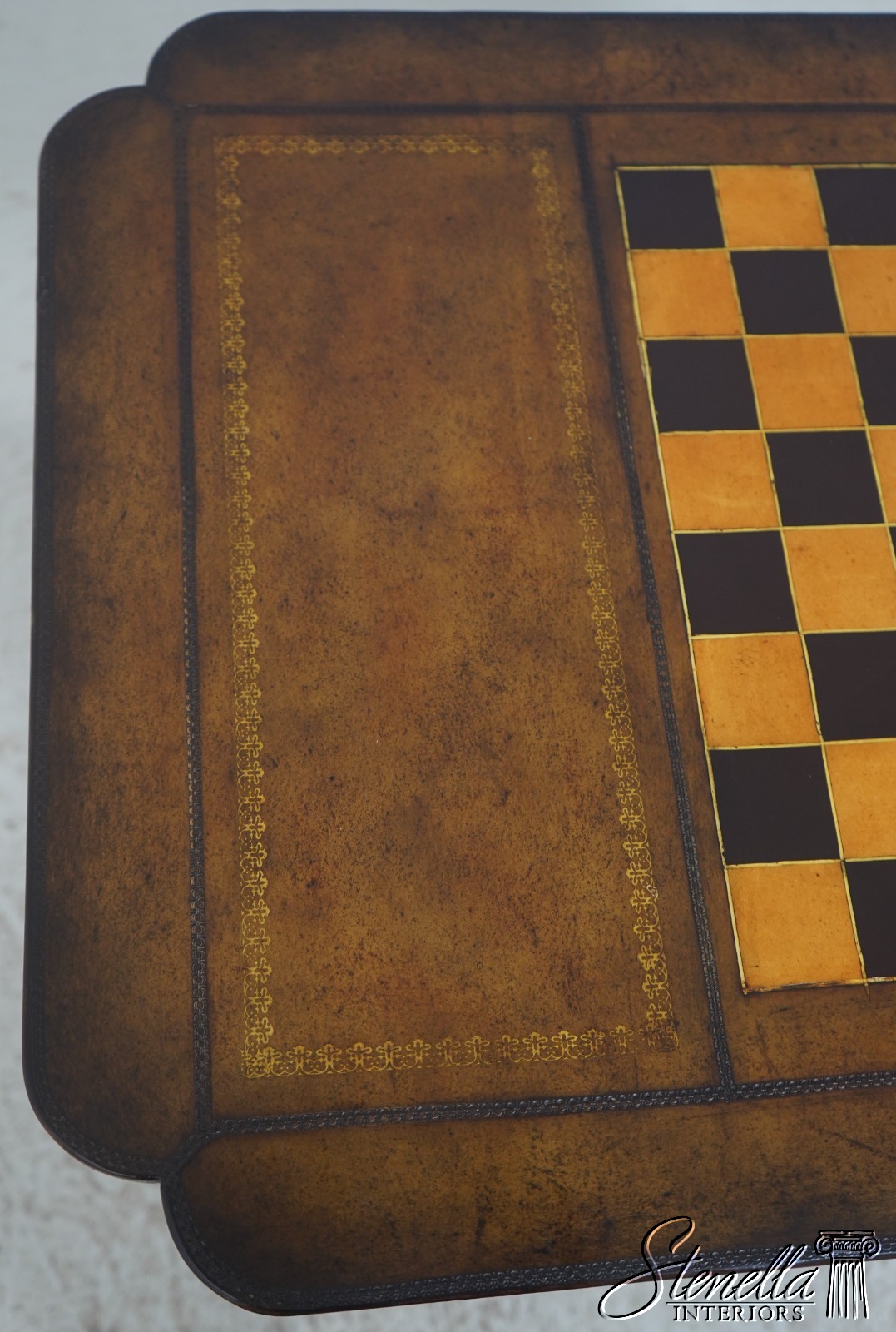 72141: Leather Wrapped Inlaid Mahogany Games Table