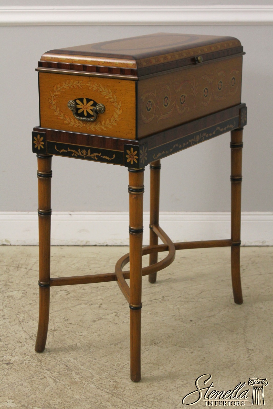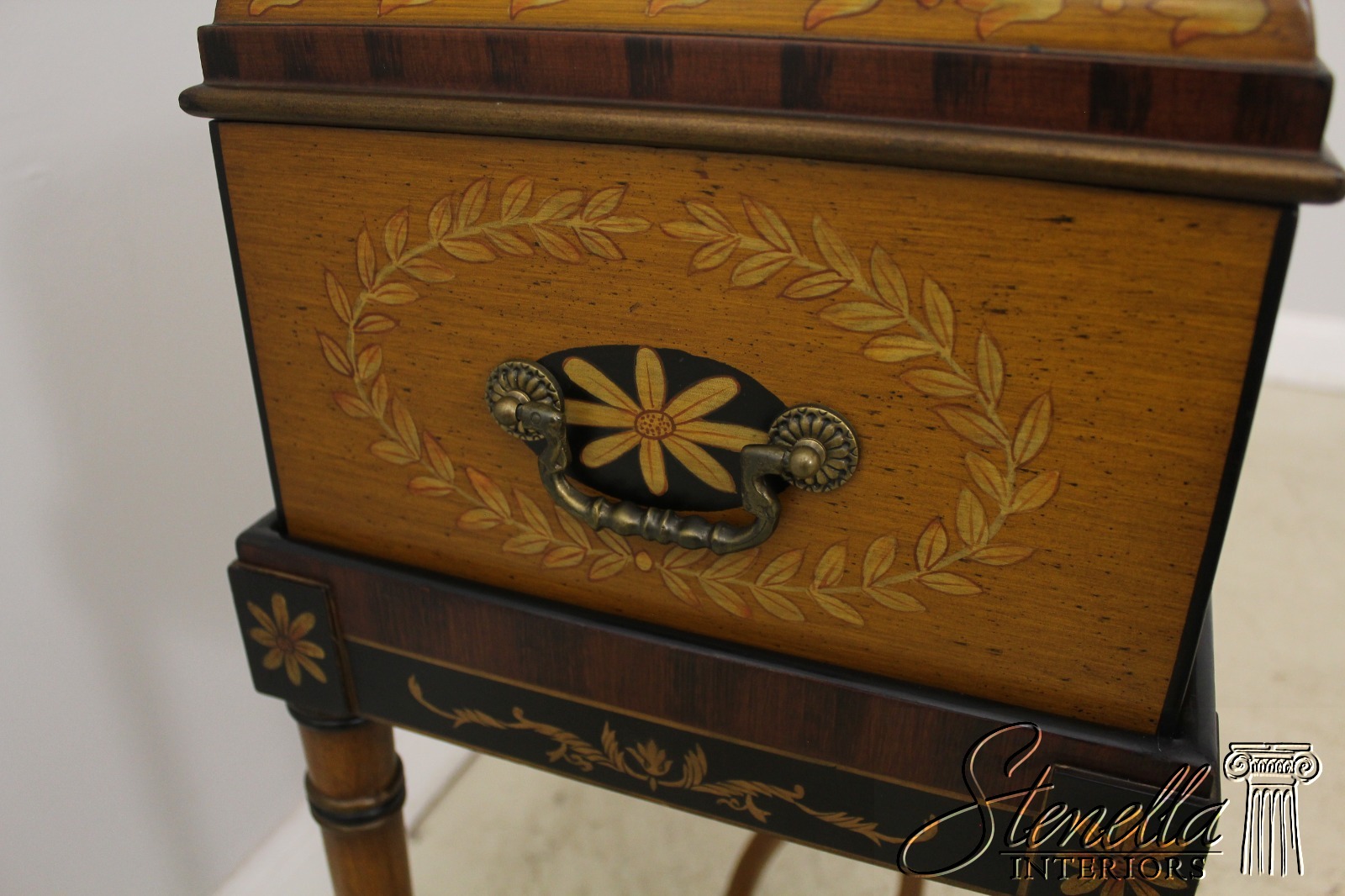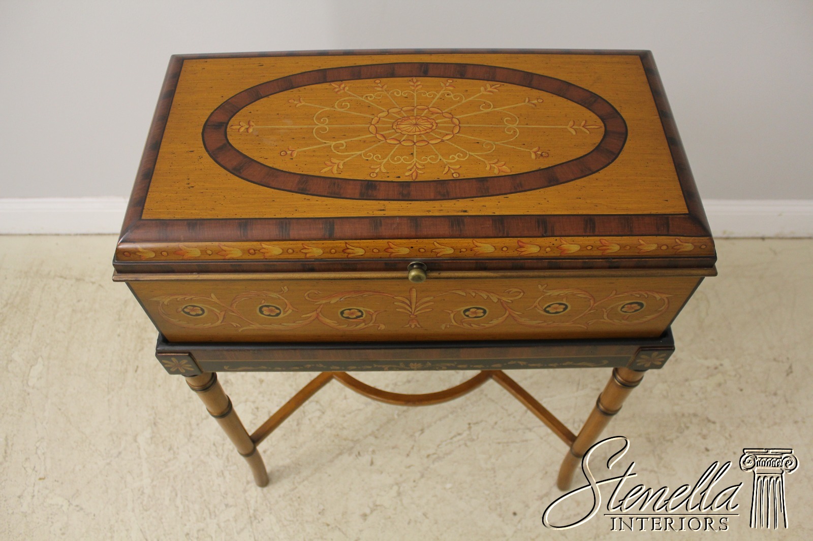 F57286: Neoclassical Paint Decorated Flip Top Box On Stand