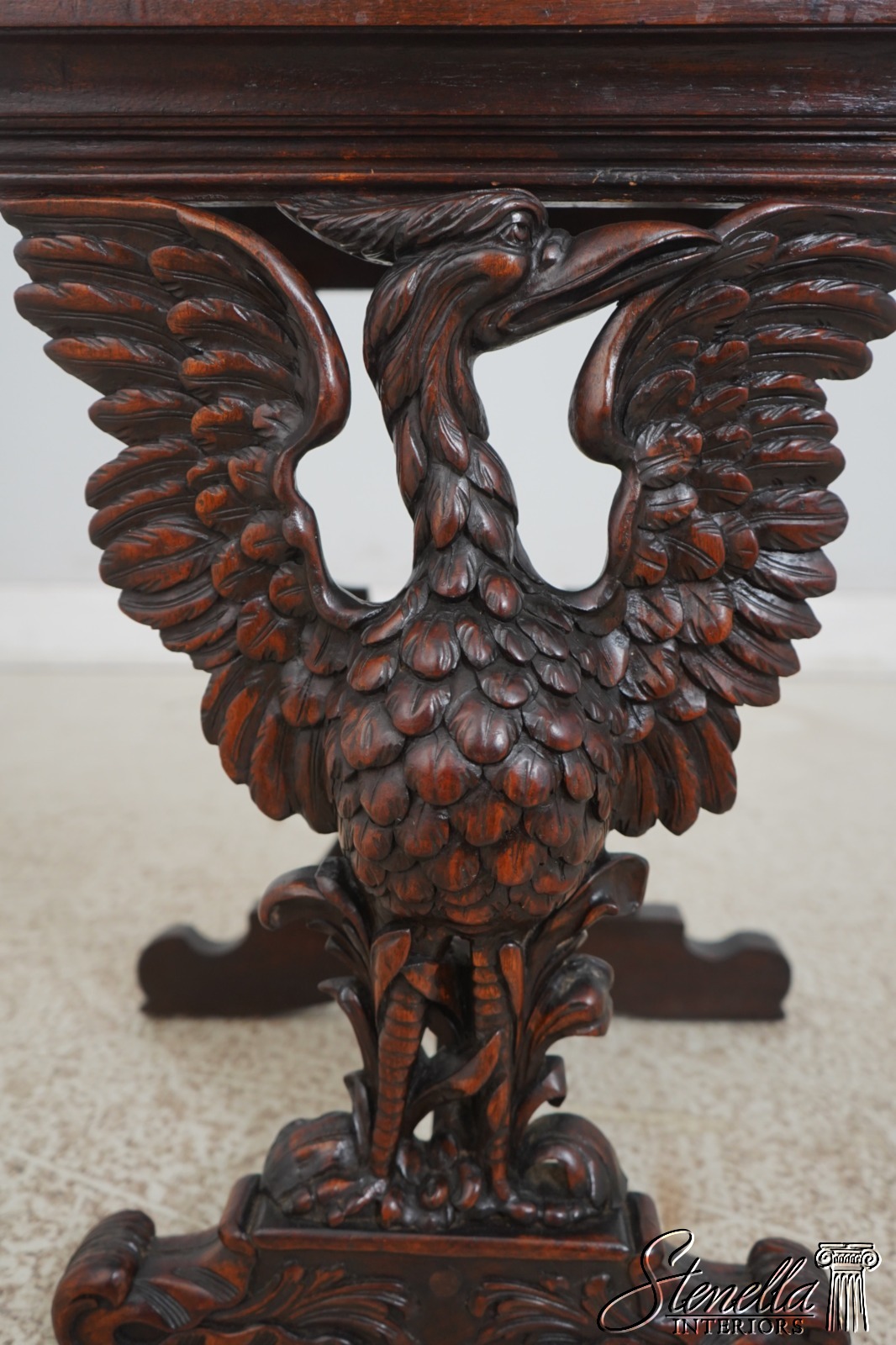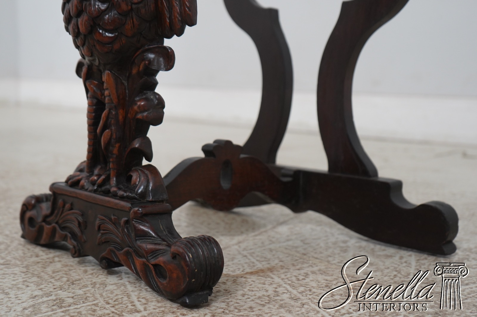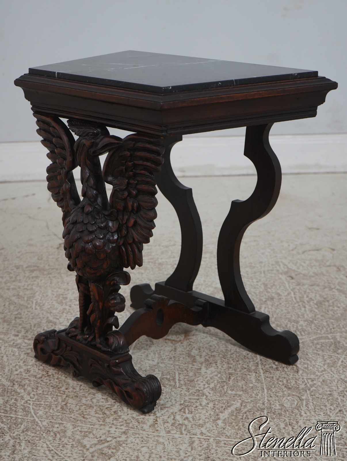 F59842: American Black Forrest Carved Walnut Winged Bird Side Table