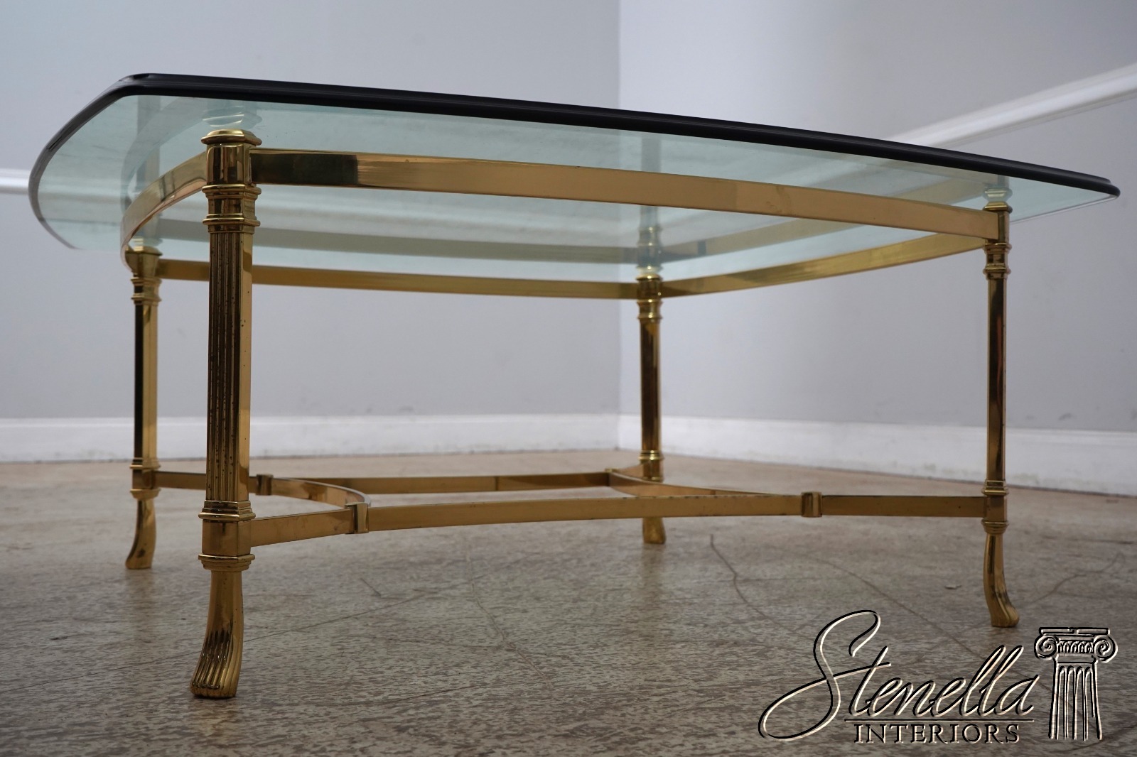 F61983EC: LABARGE Brass & Glass Top Coffee Table