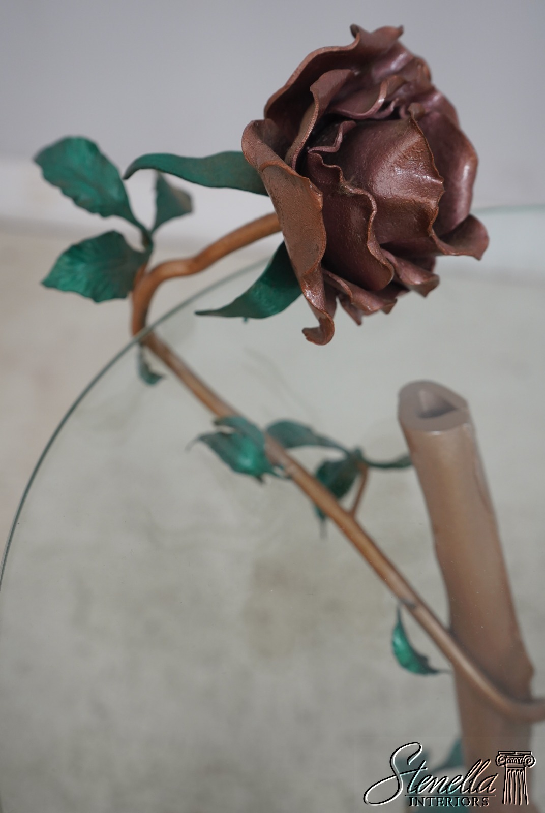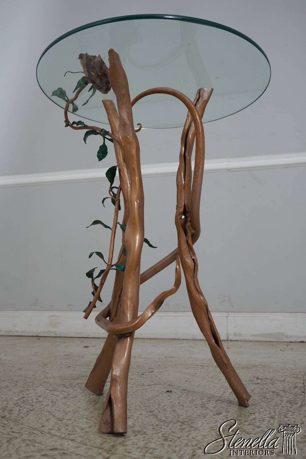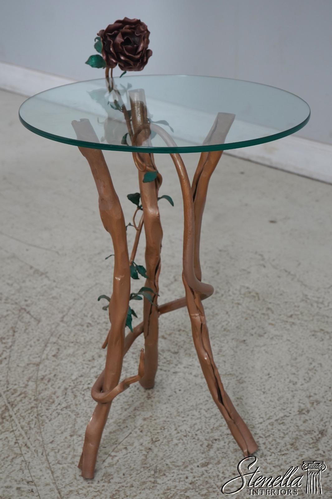 F63737EC: Stunning Italian Toleware Floral Base Iron Occasional Table