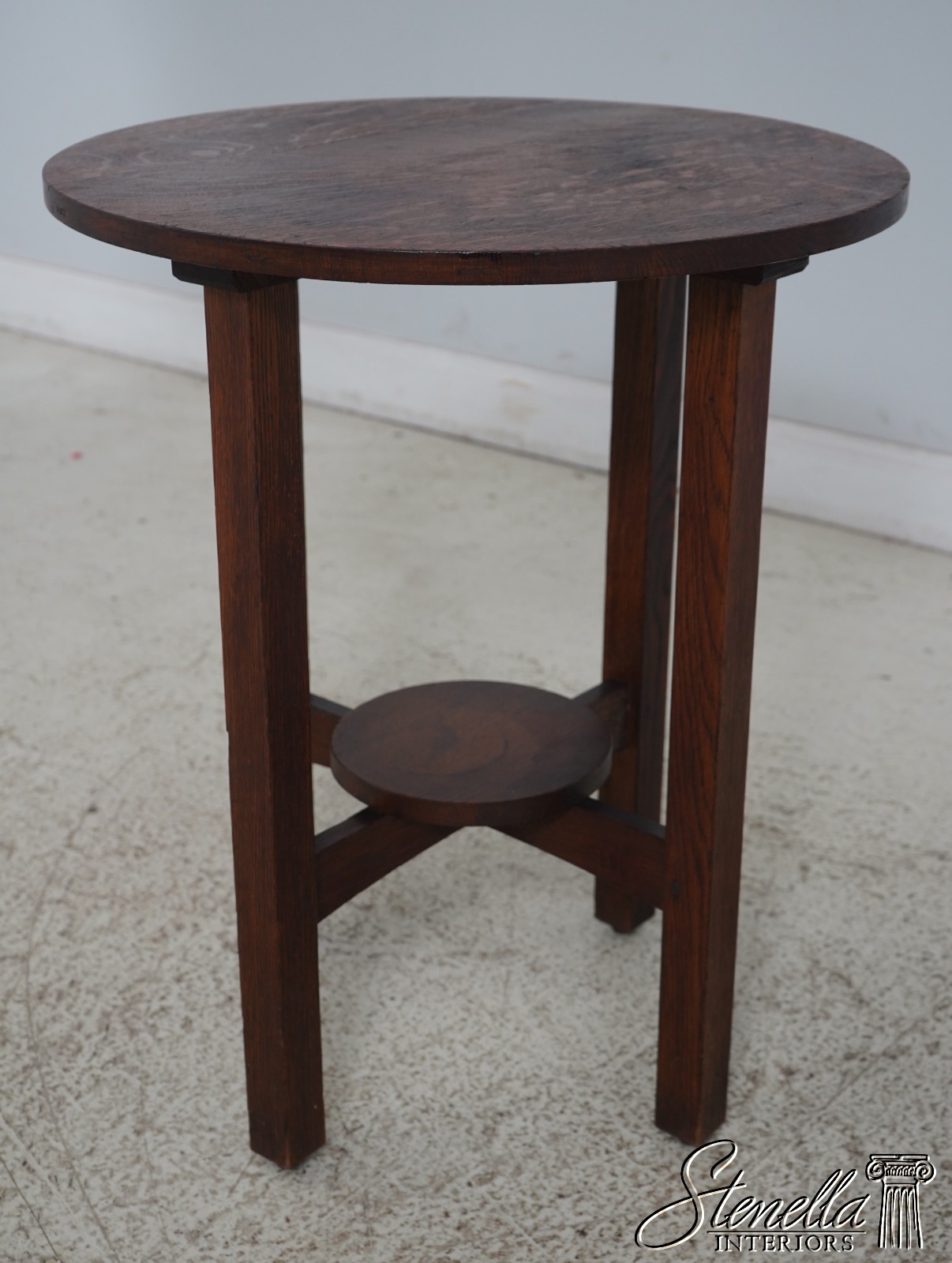 F63851EC: L&JG STICKLEY Antique Round Mission Oak Lamp Table