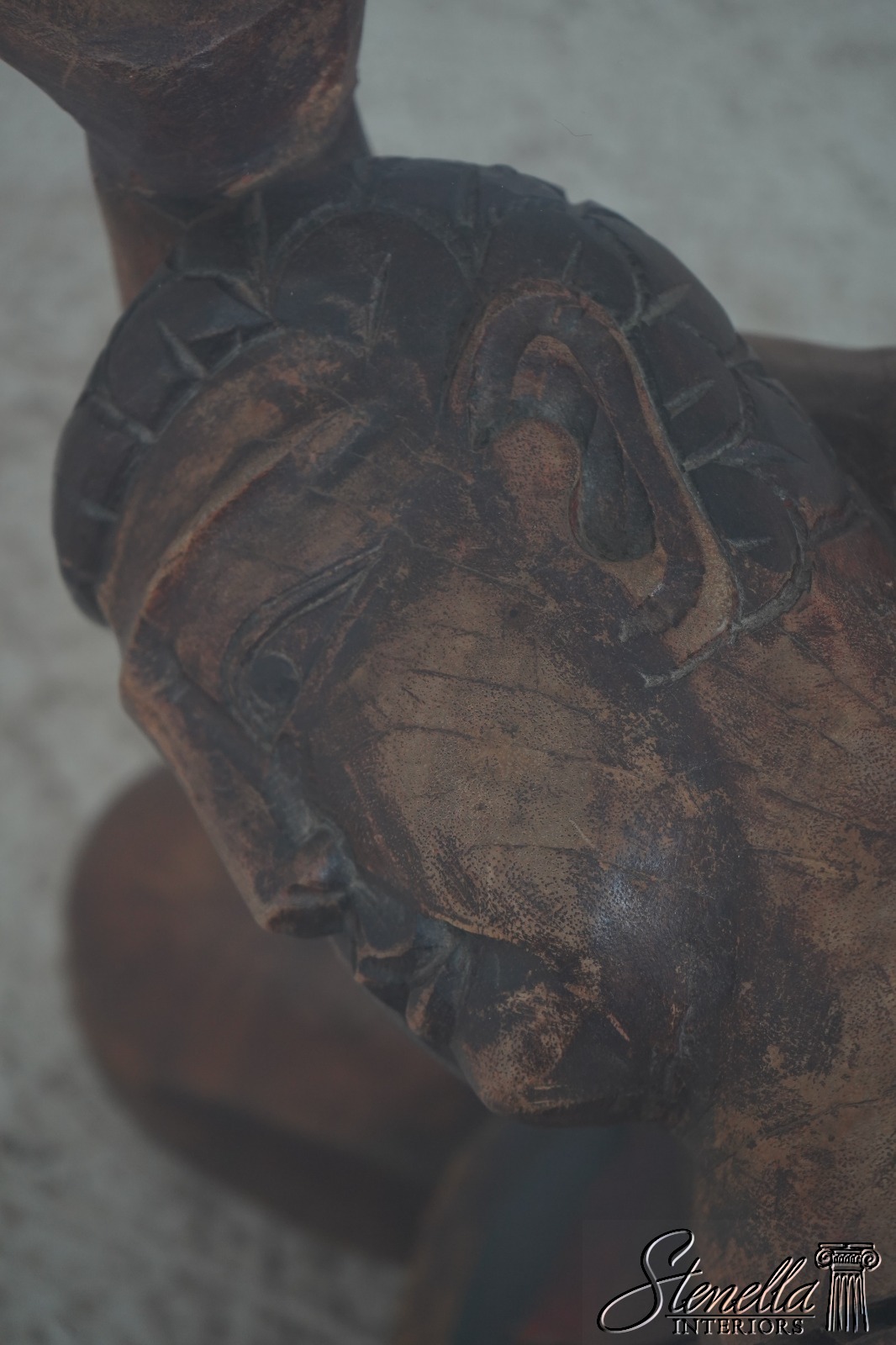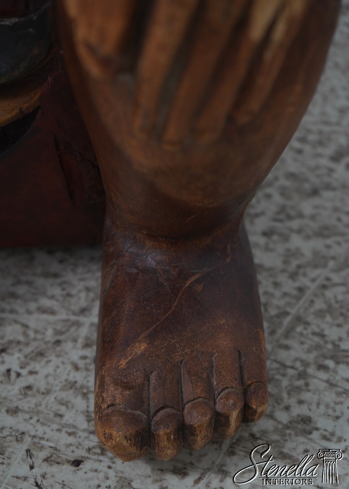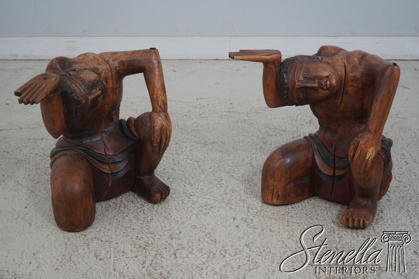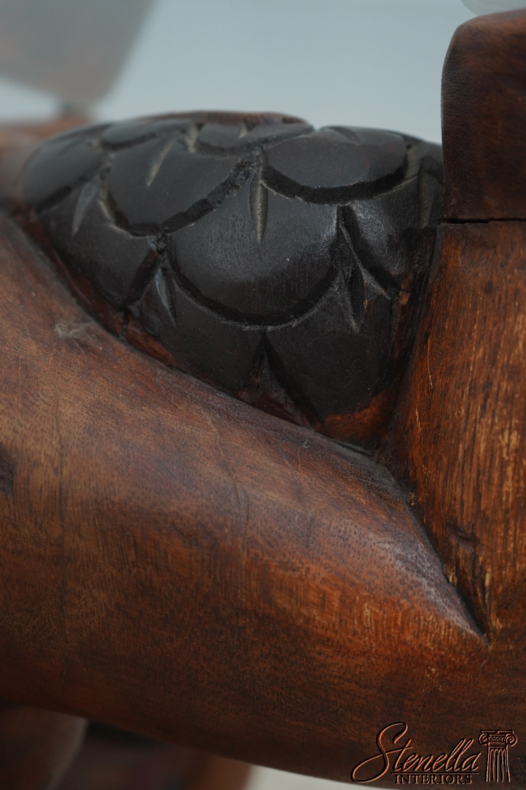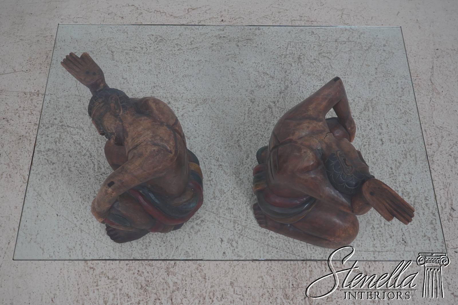 F63878EC: Asian Figural Carved Base Glass Top Coffee Table