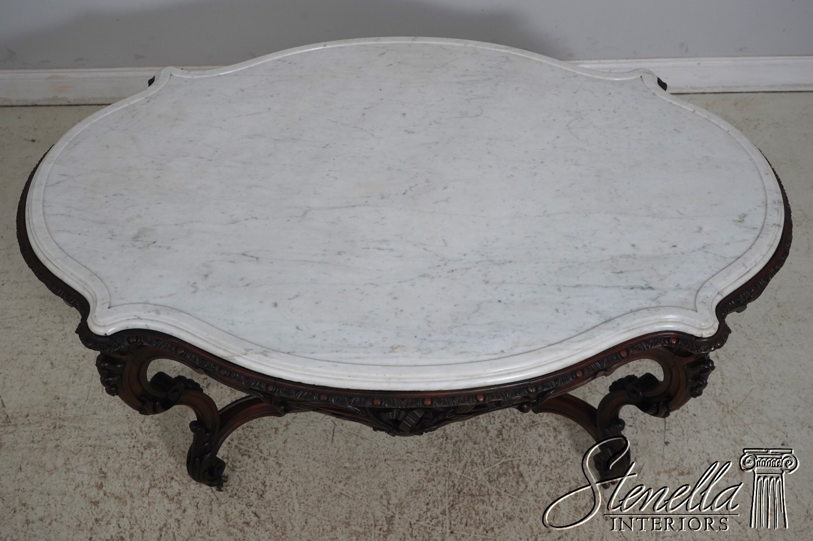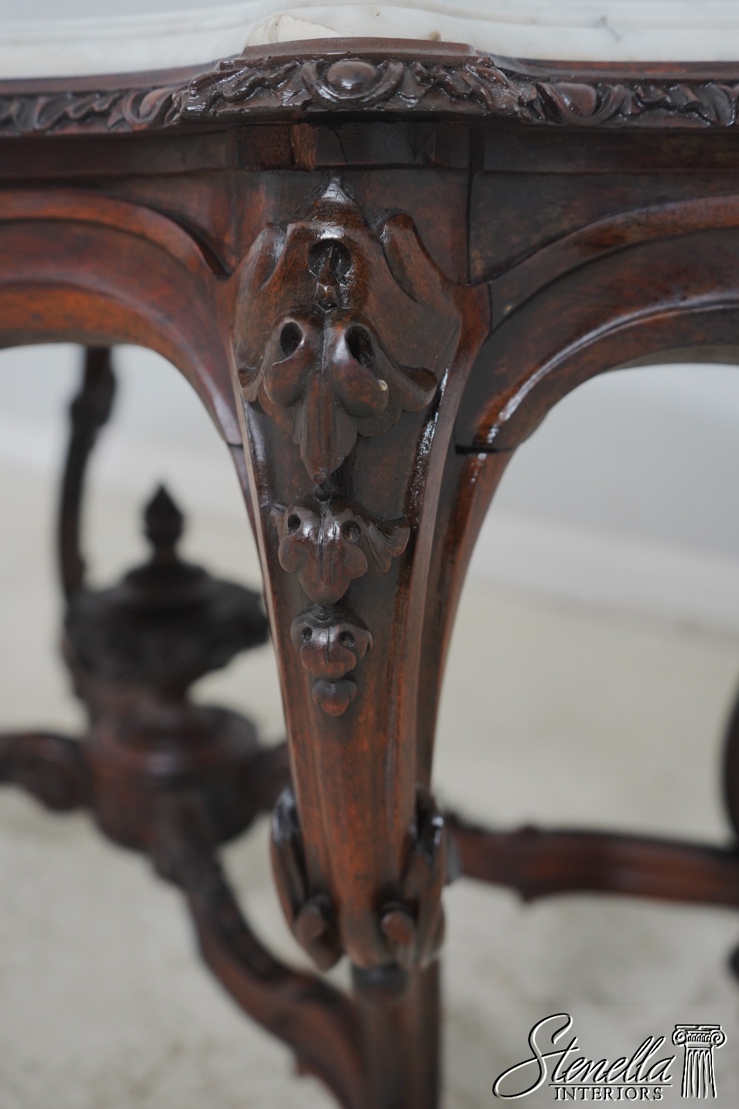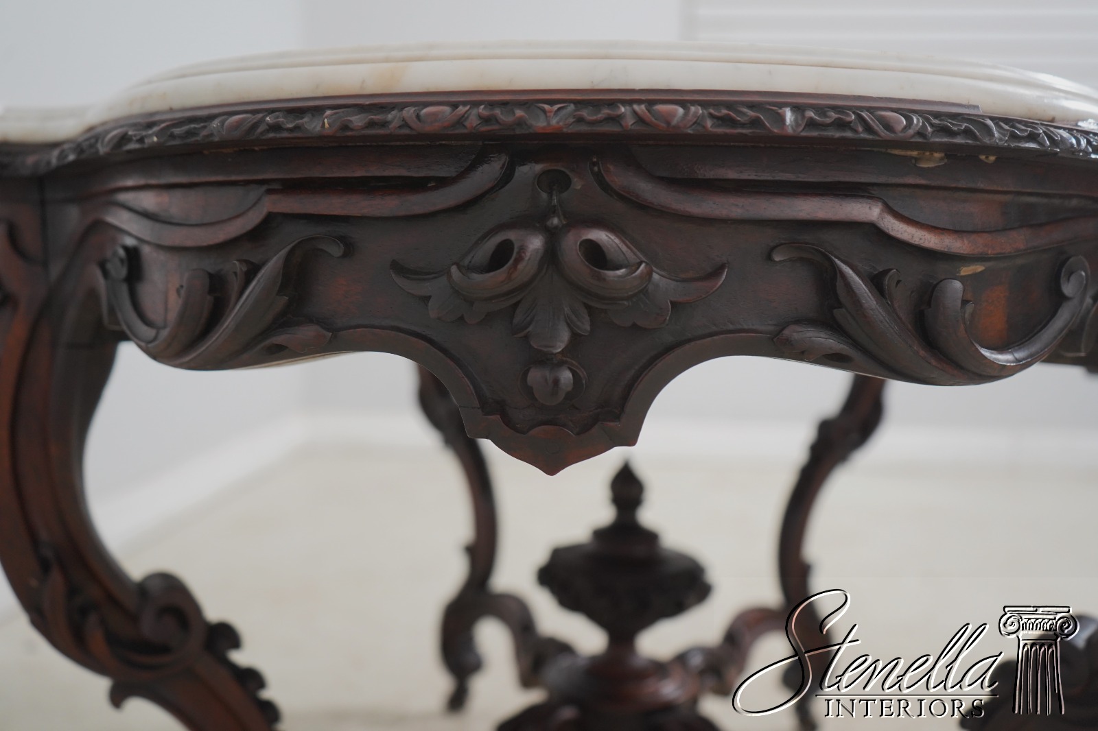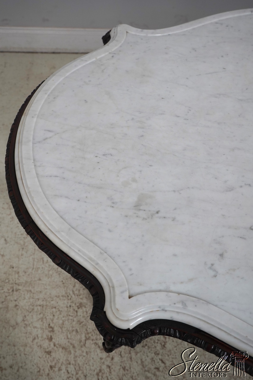 Details: Solid Walnut Base Original Vintage Finish Fine Carved Details High Quality Construction Large Impressive Table Turtle Shape Marble Top American Made Outstanding Carved Details Un-Marked As To Manufacture - Attributed To John Belter