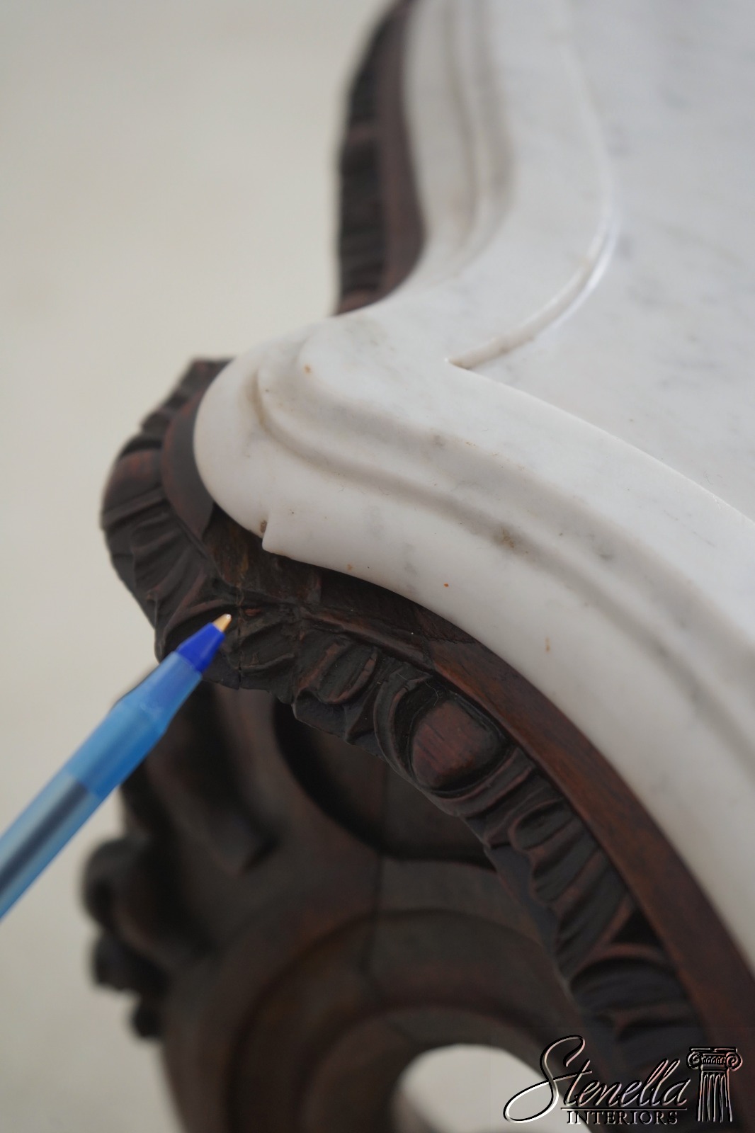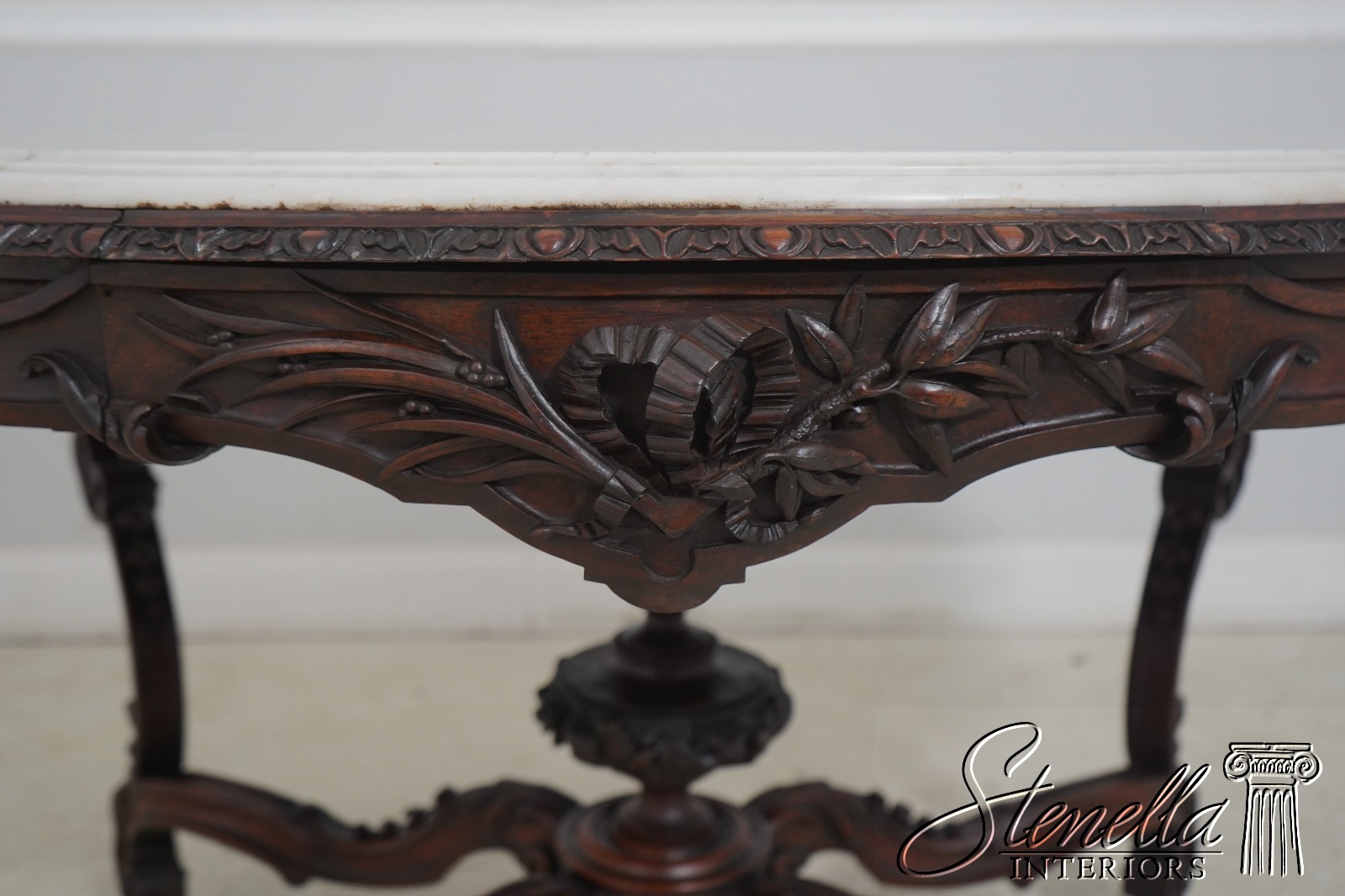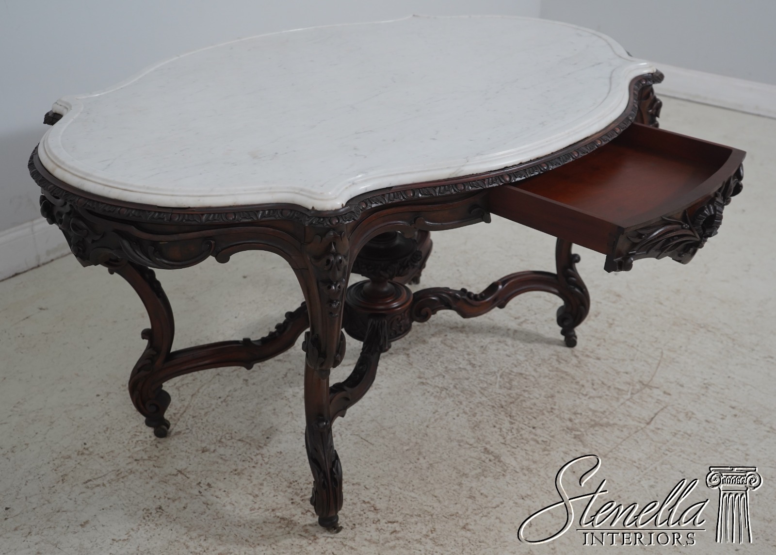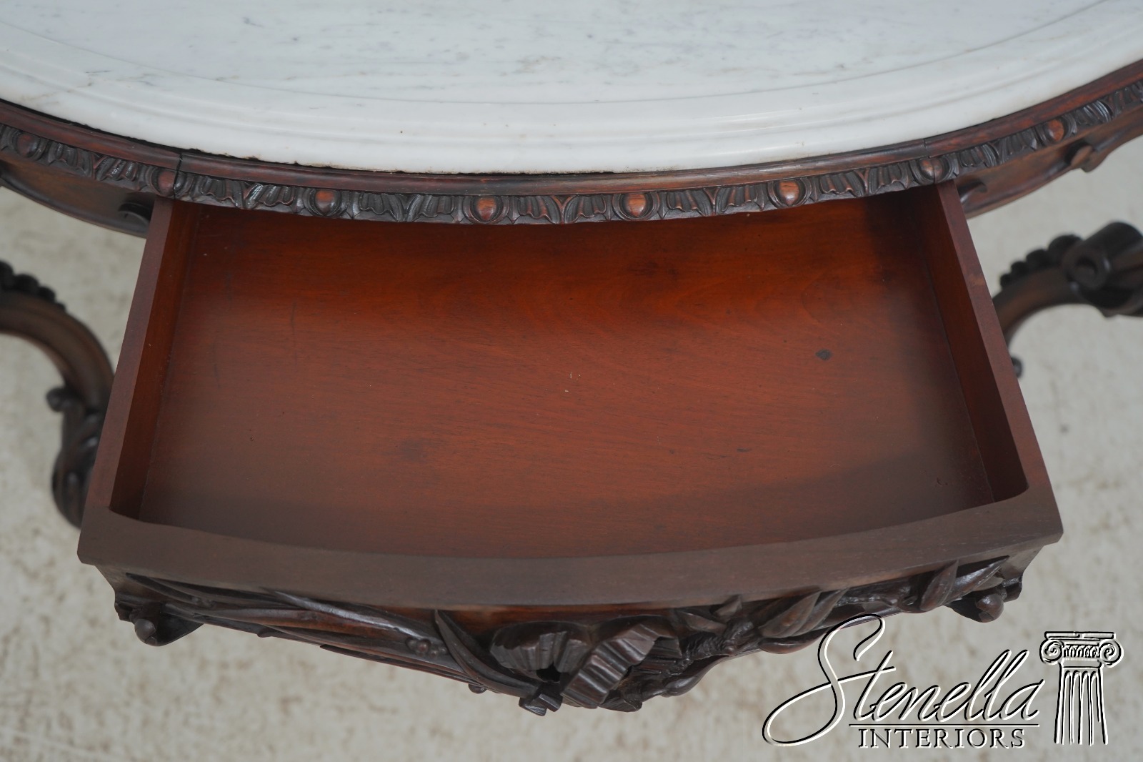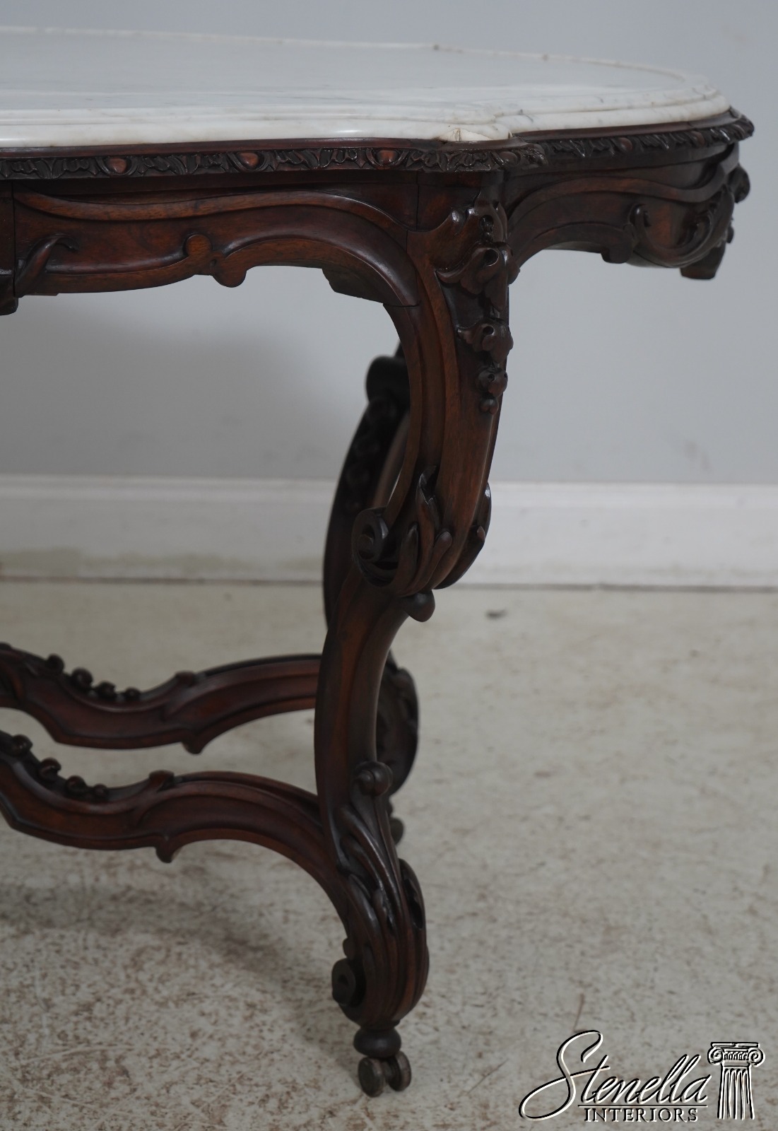 Details: Solid Walnut Base Original Vintage Finish Fine Carved Details High Quality Construction Large Impressive Table Turtle Shape Marble Top American Made Outstanding Carved Details Un-Marked As To Manufacture - Attributed To John Belter