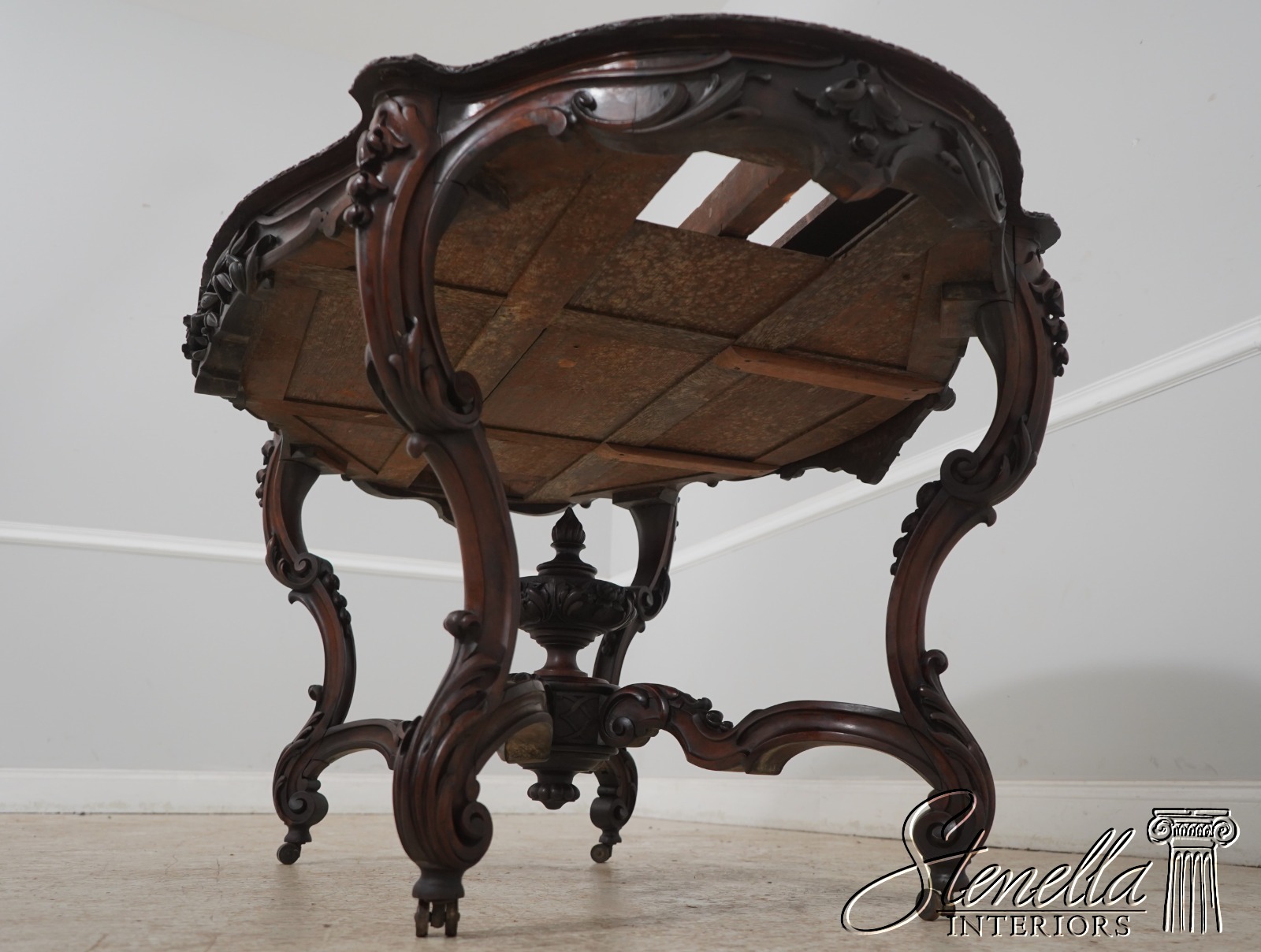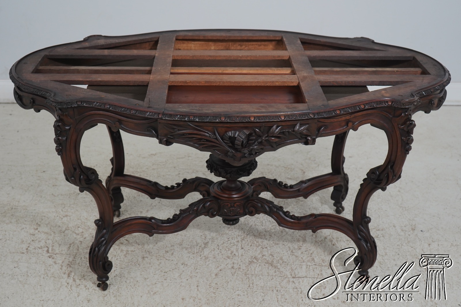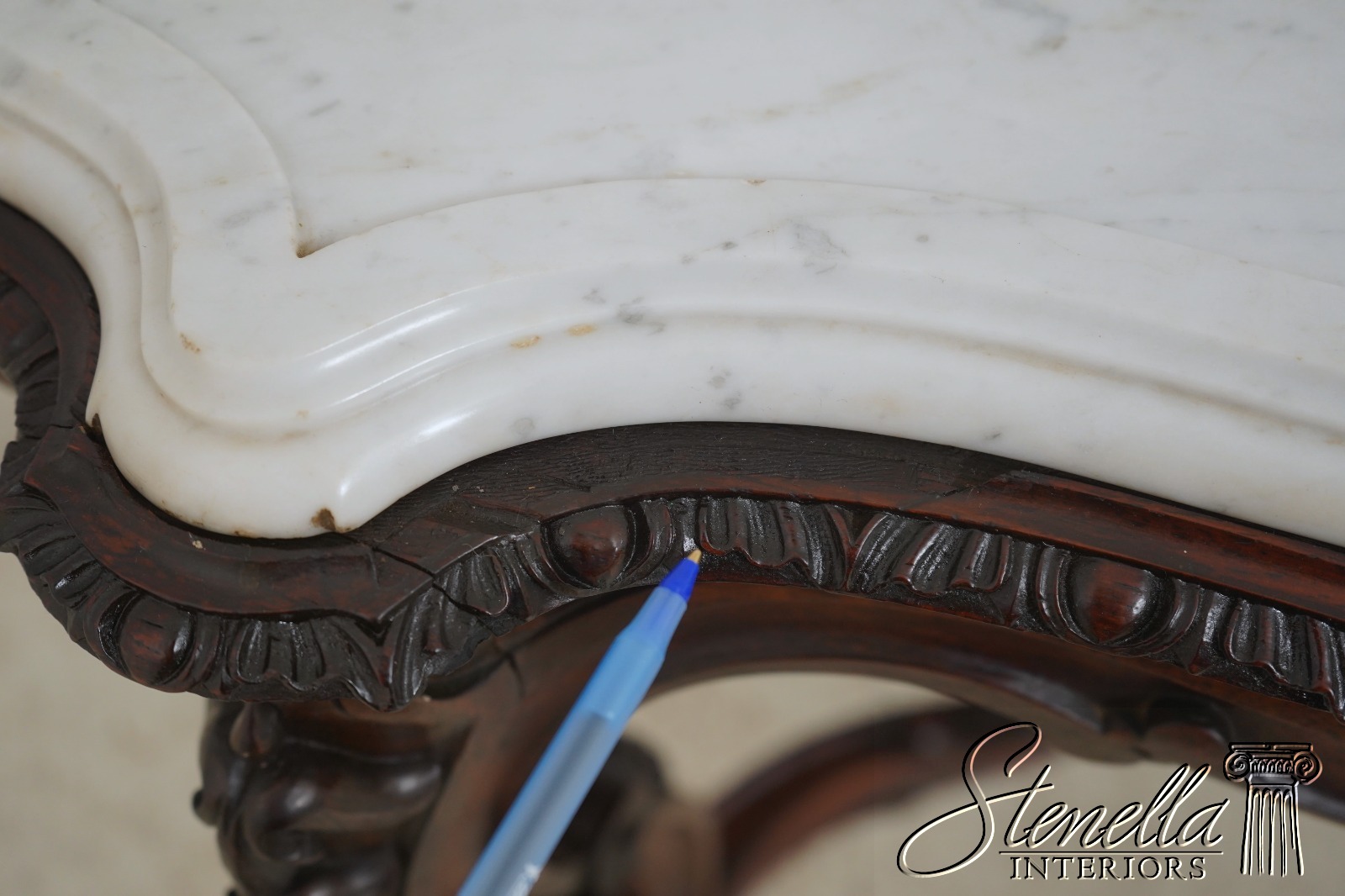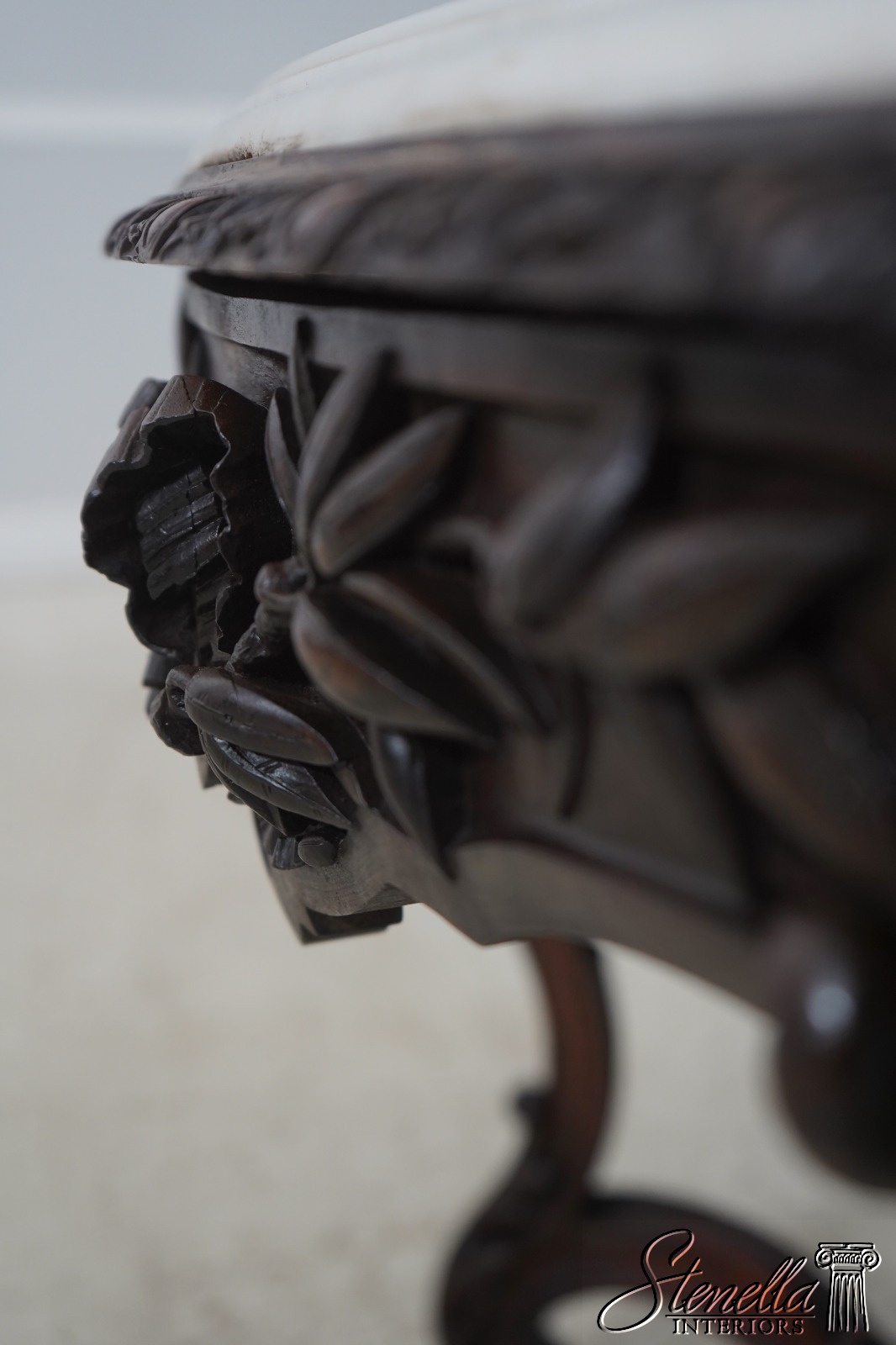 Details: Solid Walnut Base Original Vintage Finish Fine Carved Details High Quality Construction Large Impressive Table Turtle Shape Marble Top American Made Outstanding Carved Details Un-Marked As To Manufacture - Attributed To John Belter
