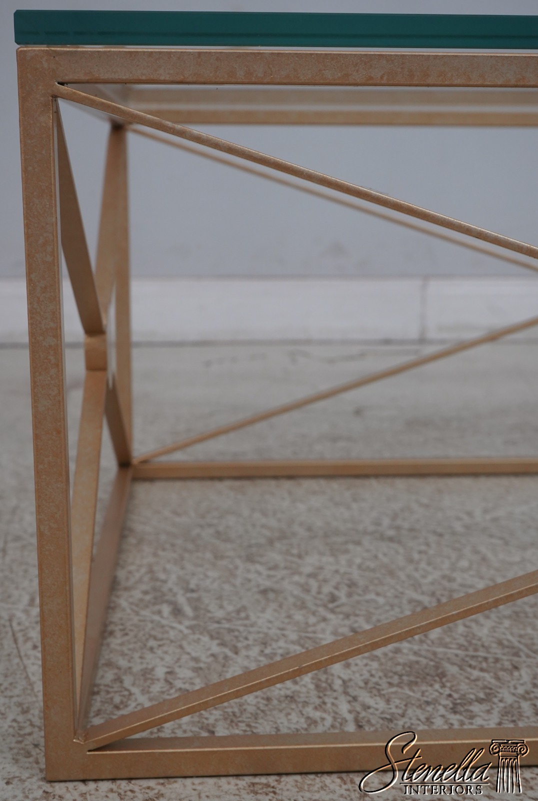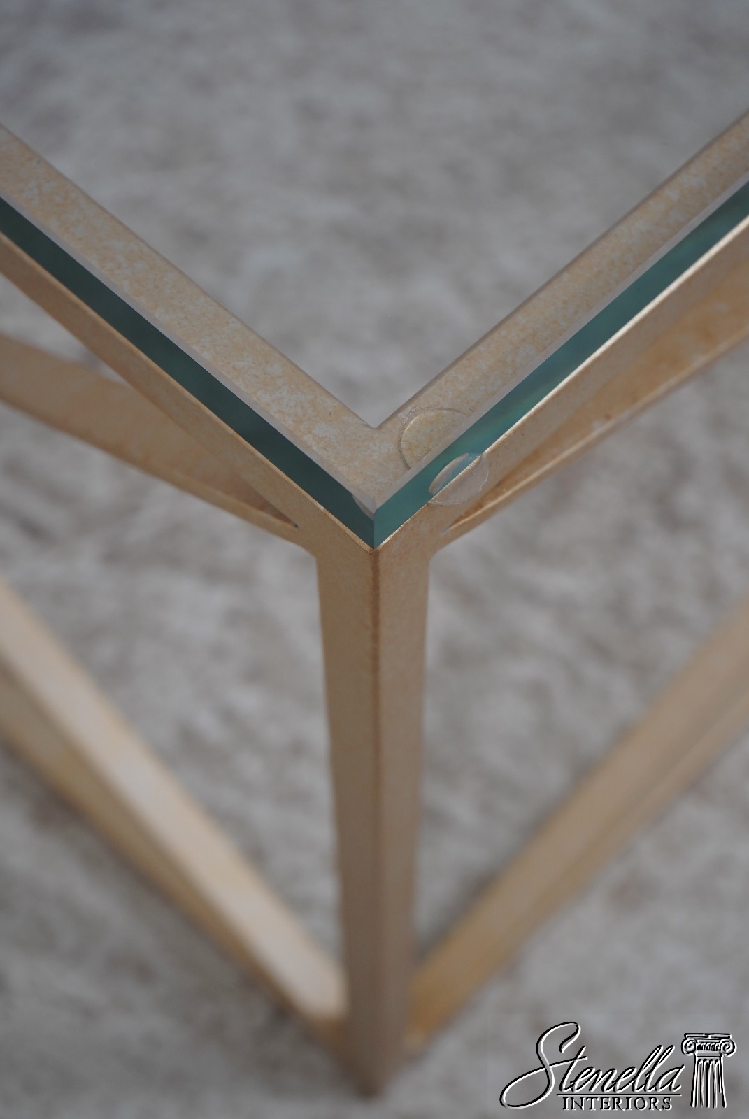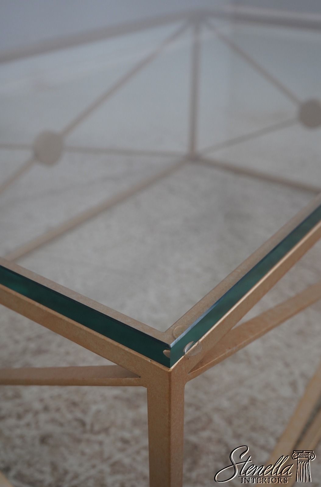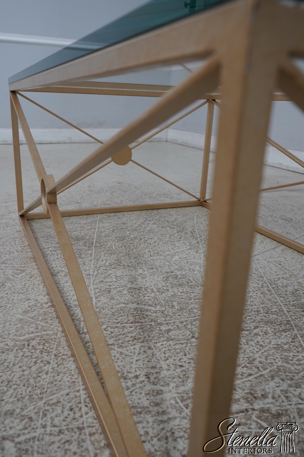 Details: Stunning Gold Finish Metal Base High Quality Construction Thick Glass Top Distressed Mirror Medallions Round Distressed Mirror Accent Panels Modern Design Un-Marked As To Manufacture Offered @ Fraction Original Retail Cost