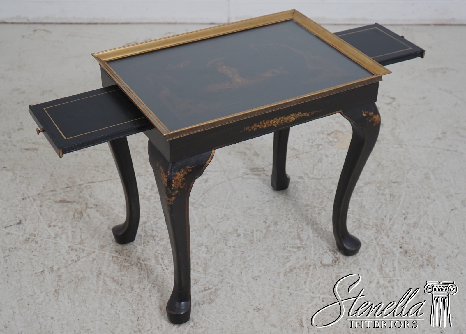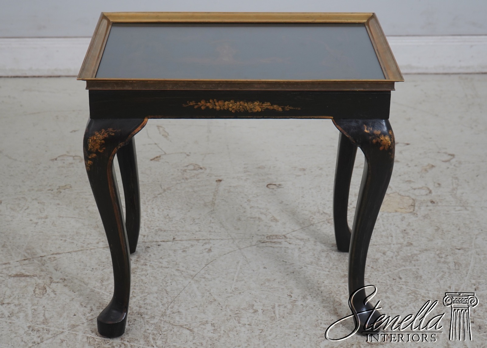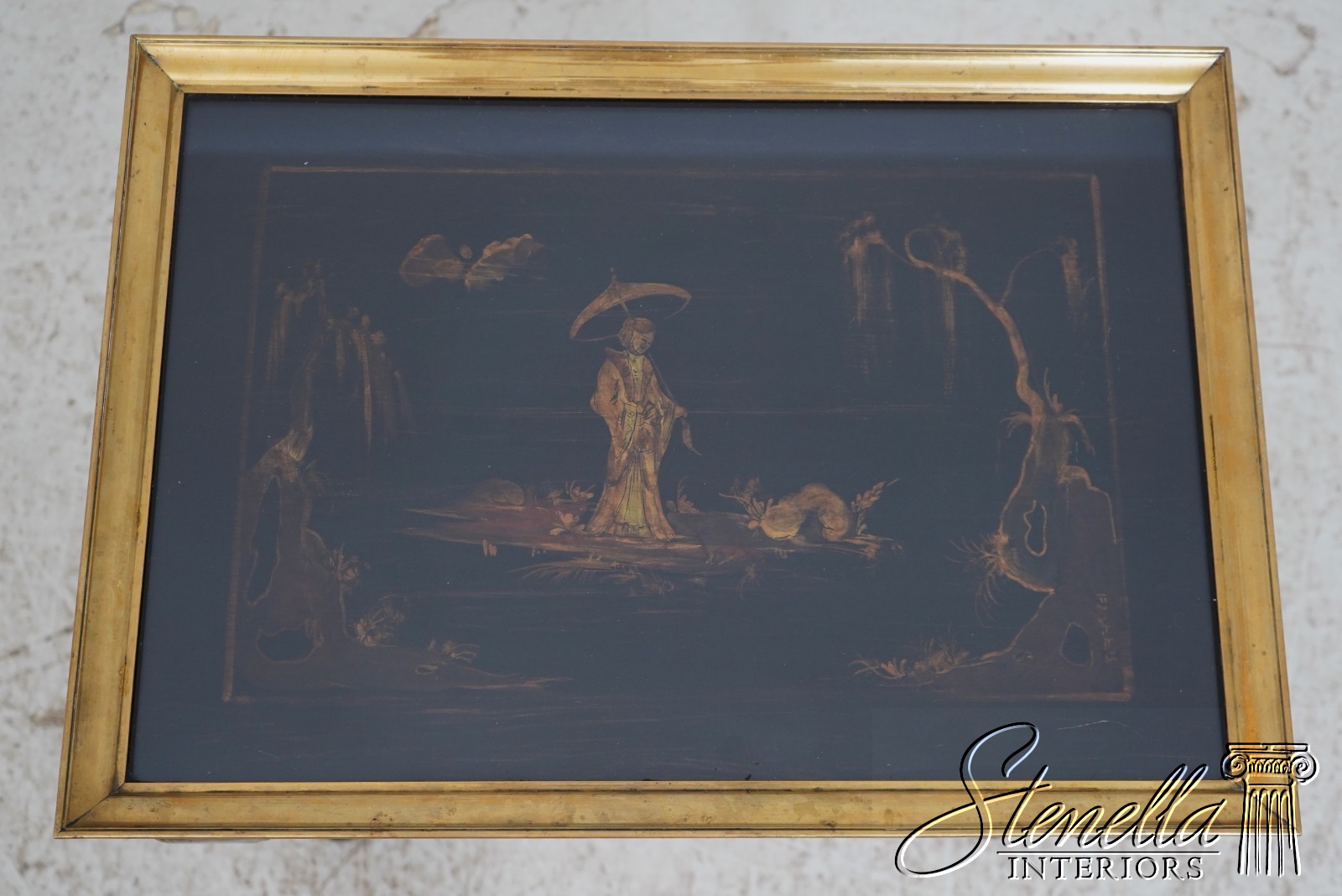F69747: Vintage Chinoiserie Decorated Glass Top Occasional Table