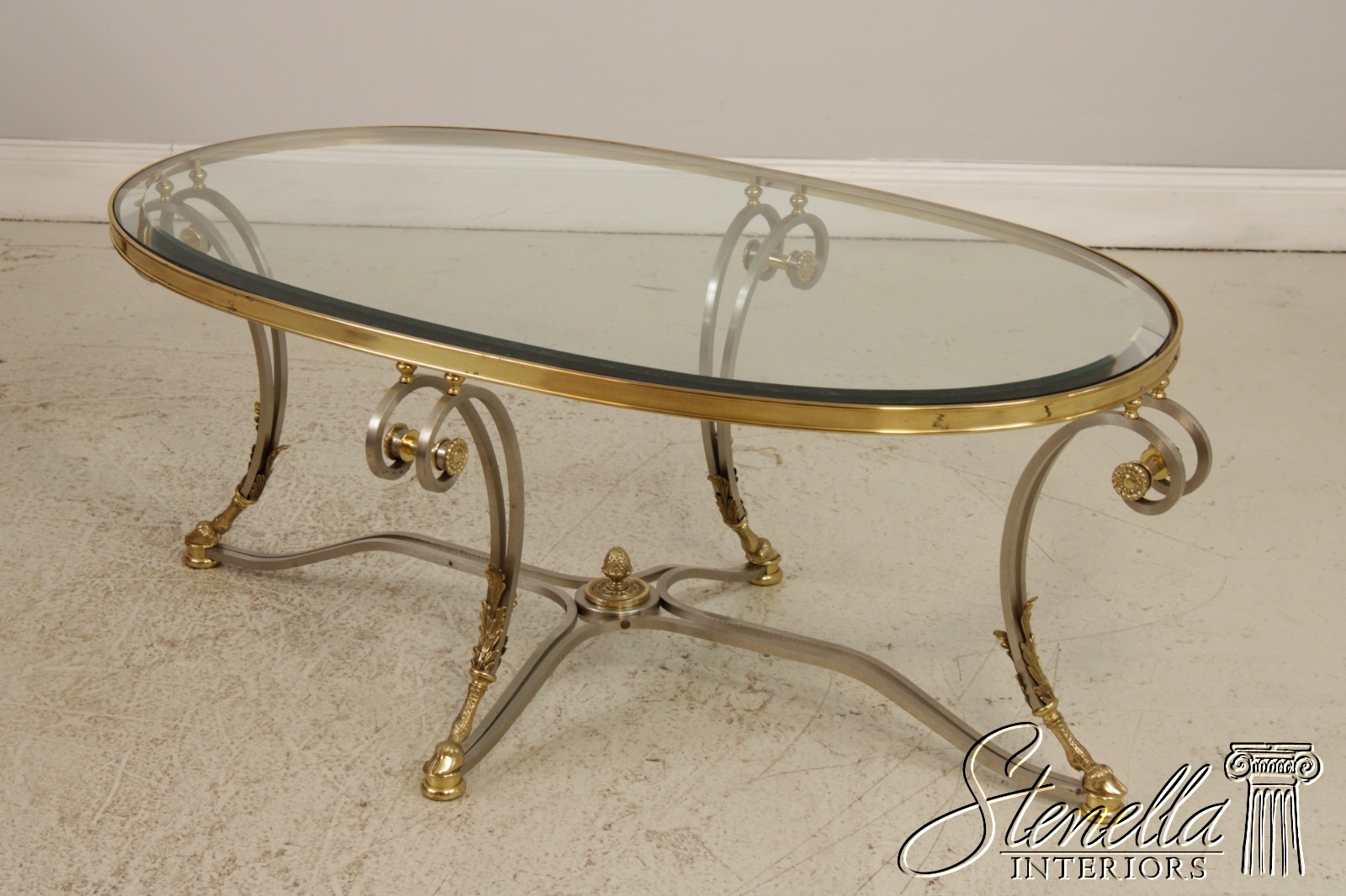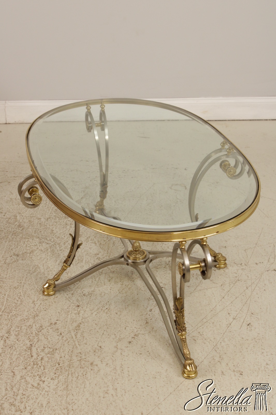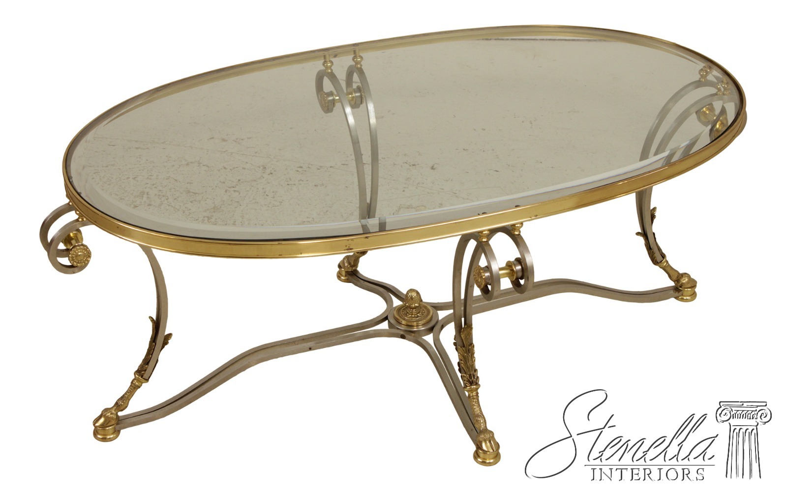 F71899: LABARGE Regency Brass & Steel Glass Top Coffee Table