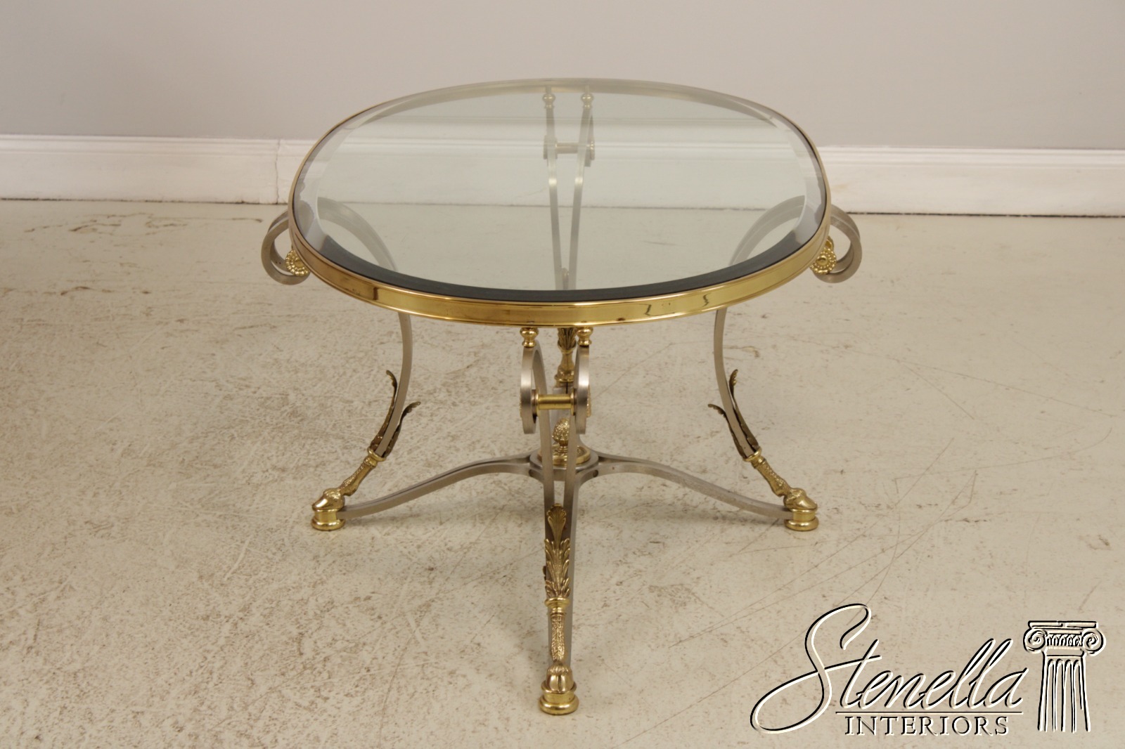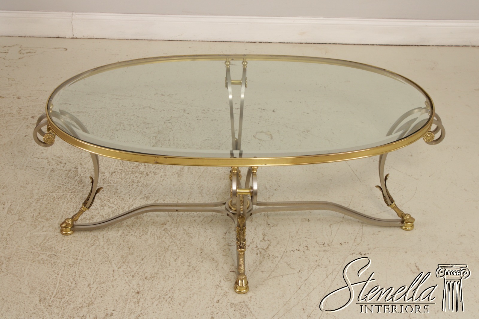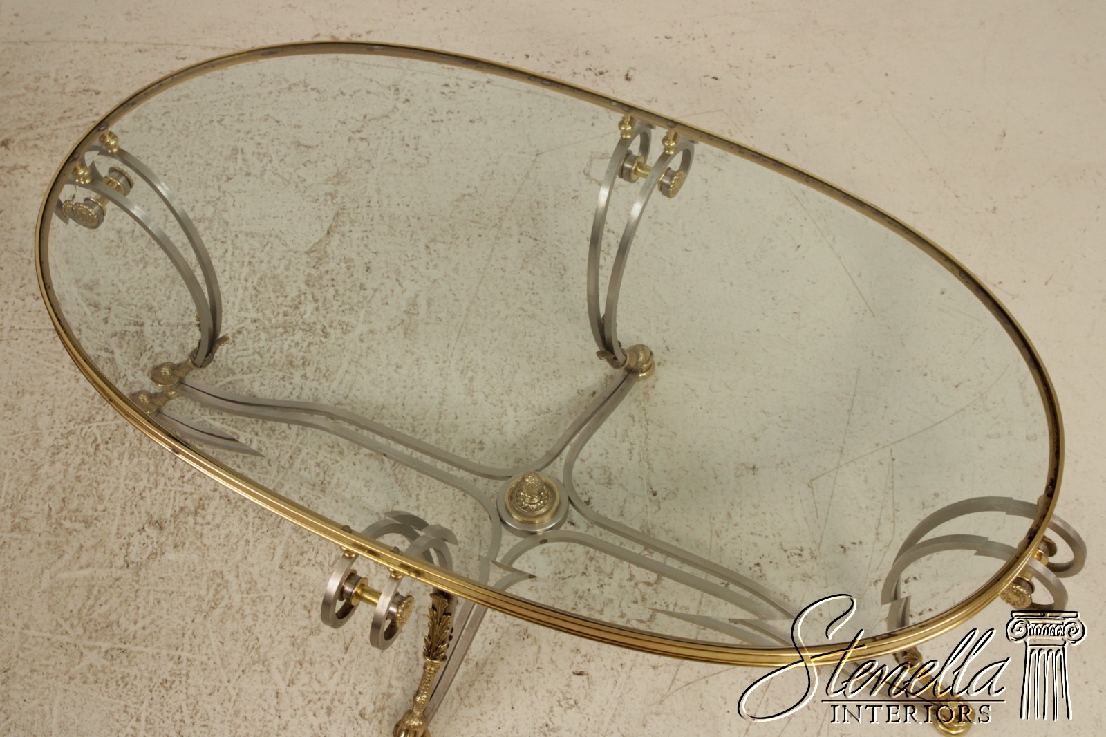 F71899: LABARGE Regency Brass & Steel Glass Top Coffee Table