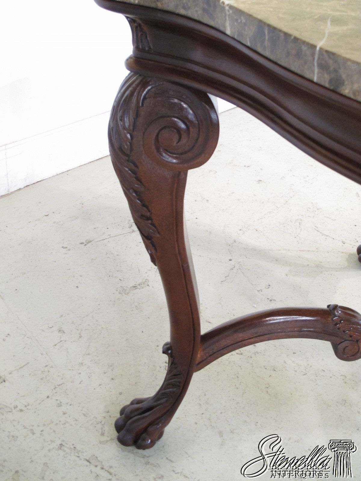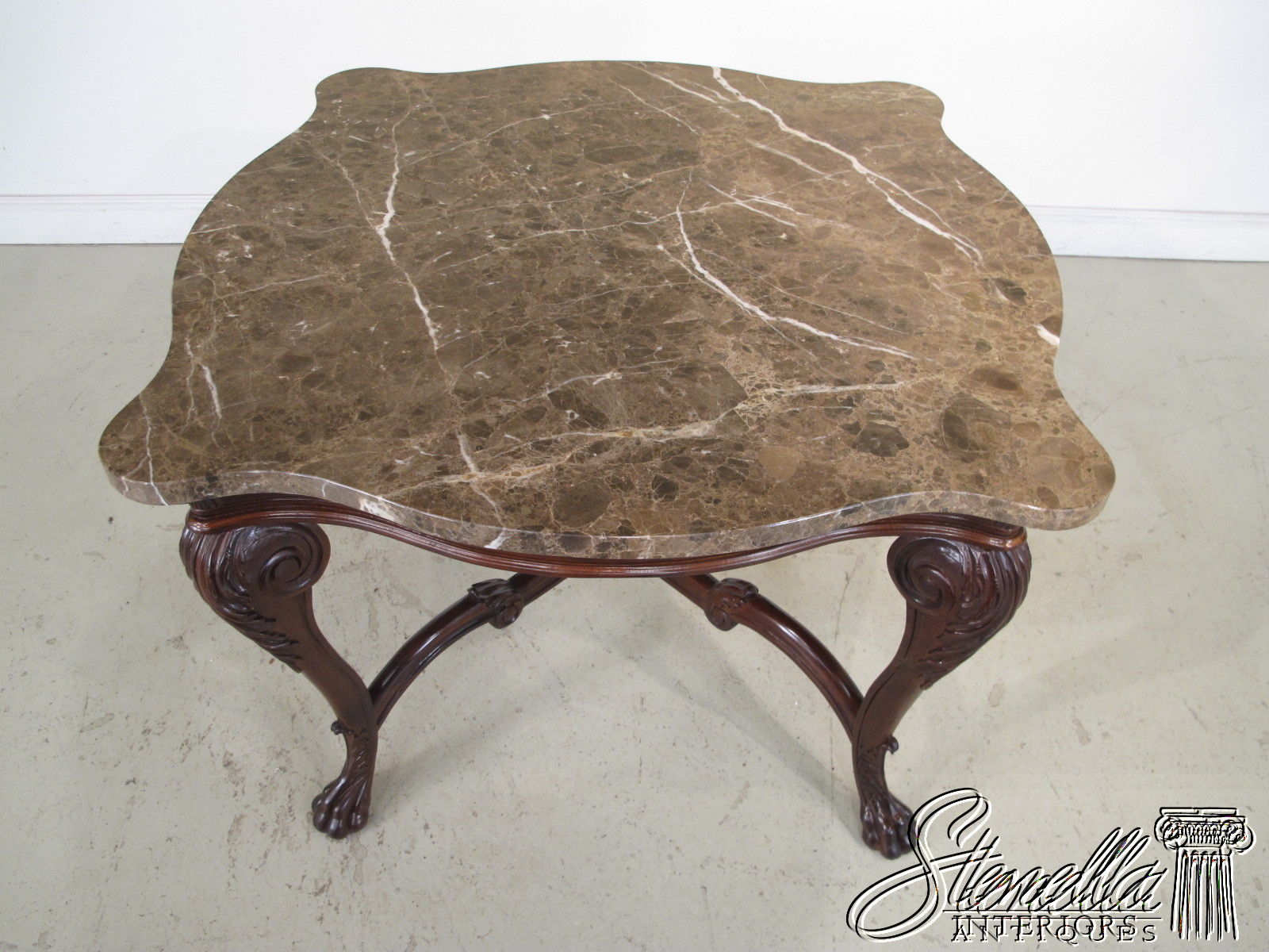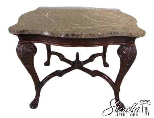L22228E: Marble Top Rococo Style Mahogany Table with Carved Paw Feet
