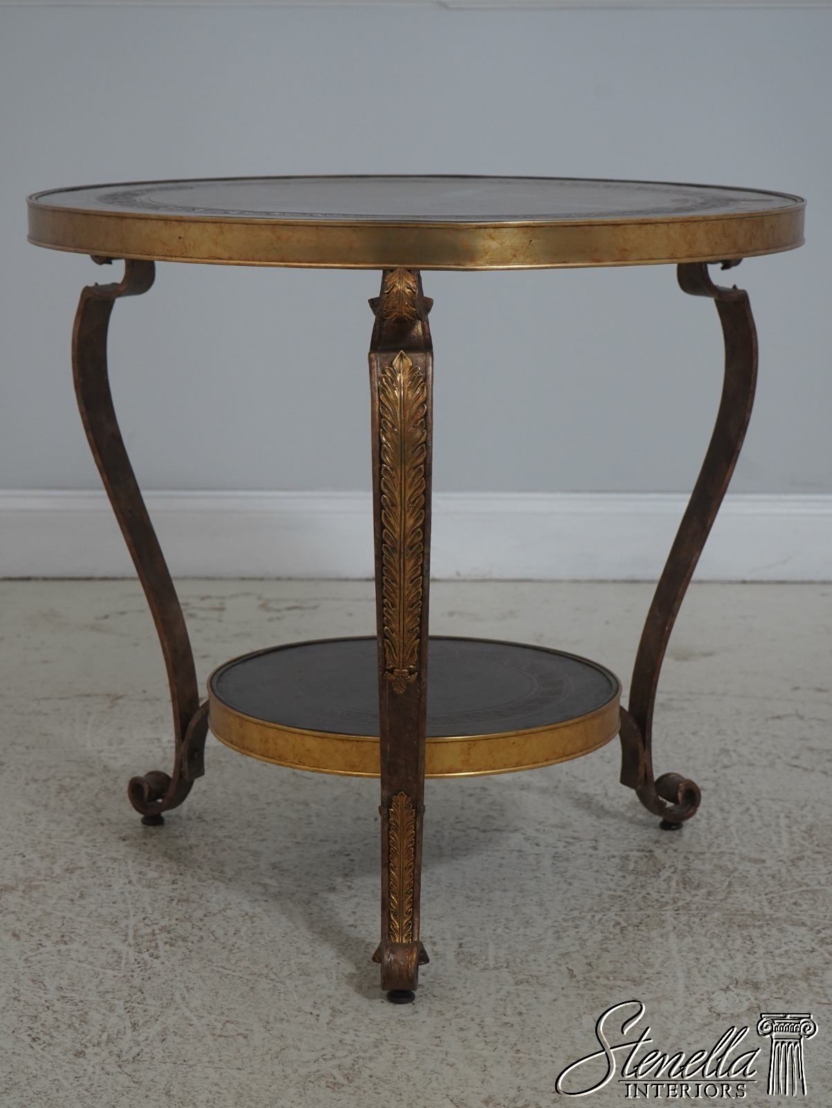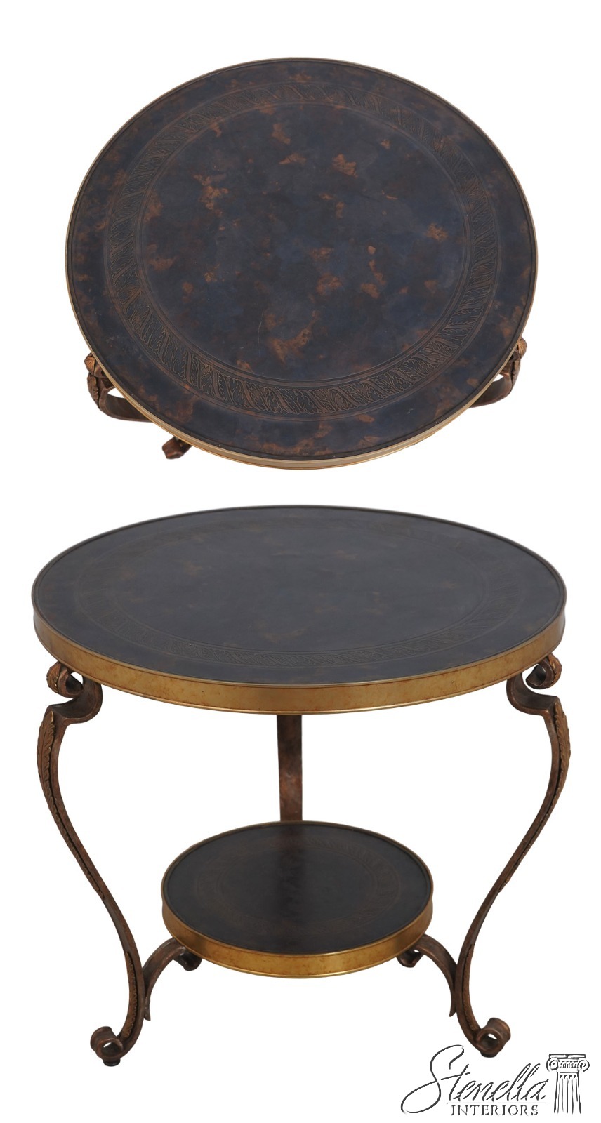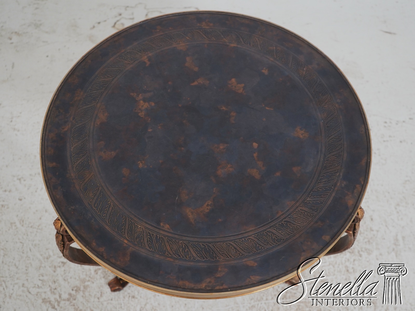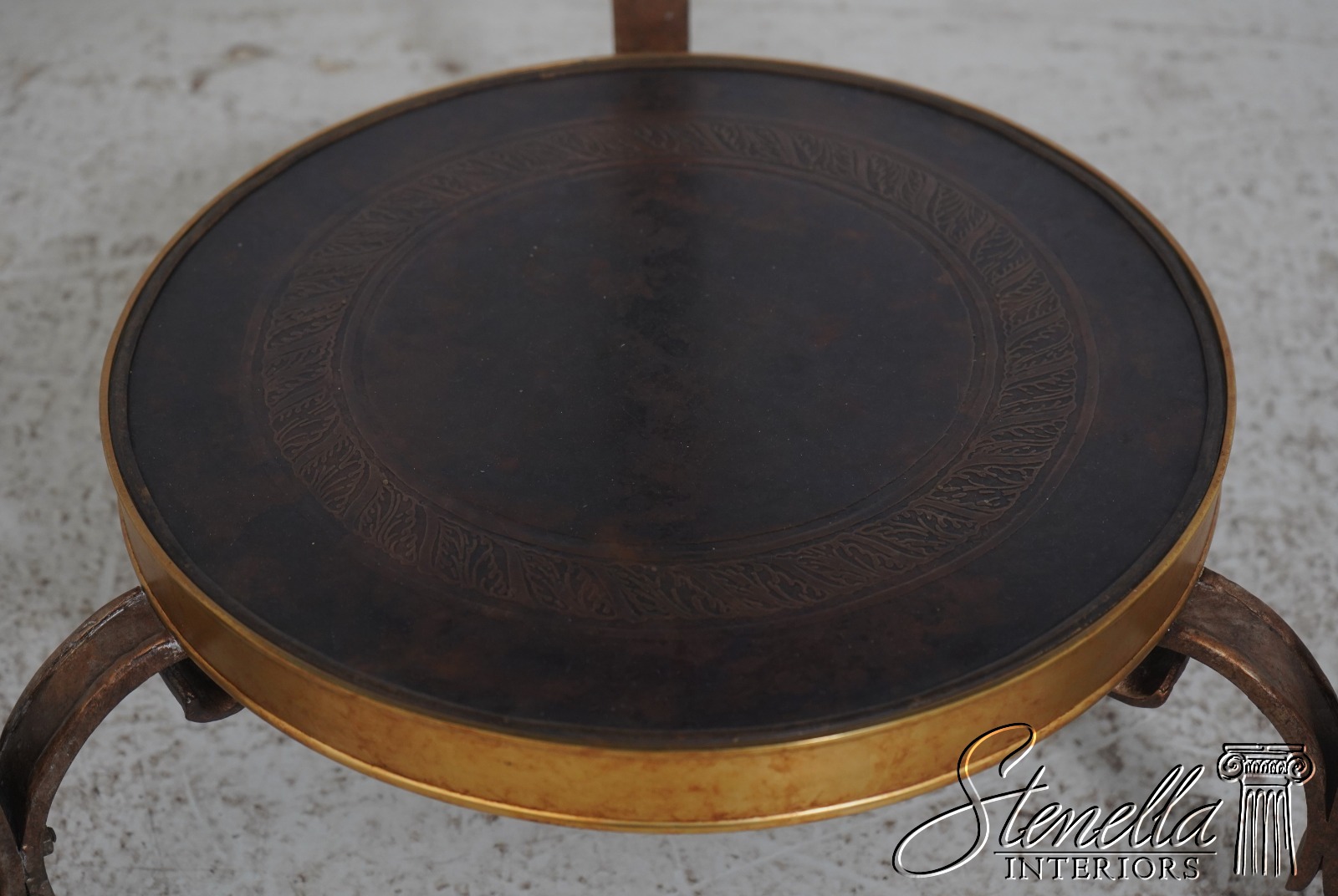 Details: French Empire Style Stunning Etched Bronze Top See Other Offerings For Matching Table Iron Scrolled Legs w. Brass Ormolu