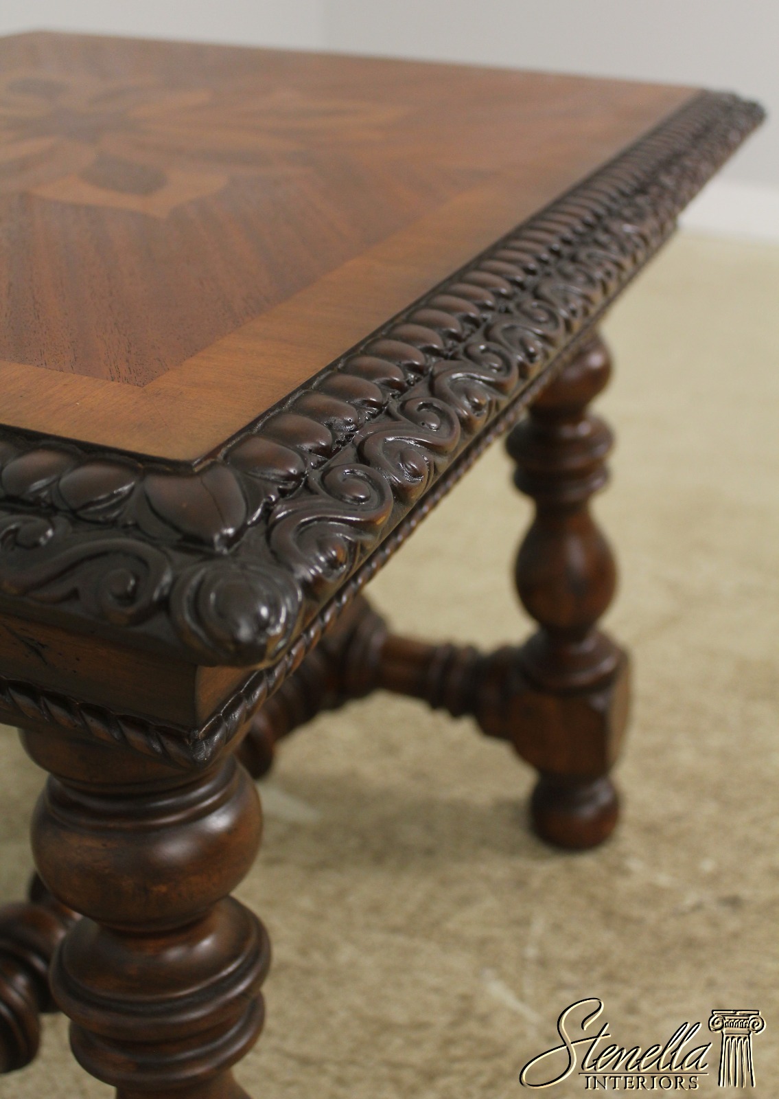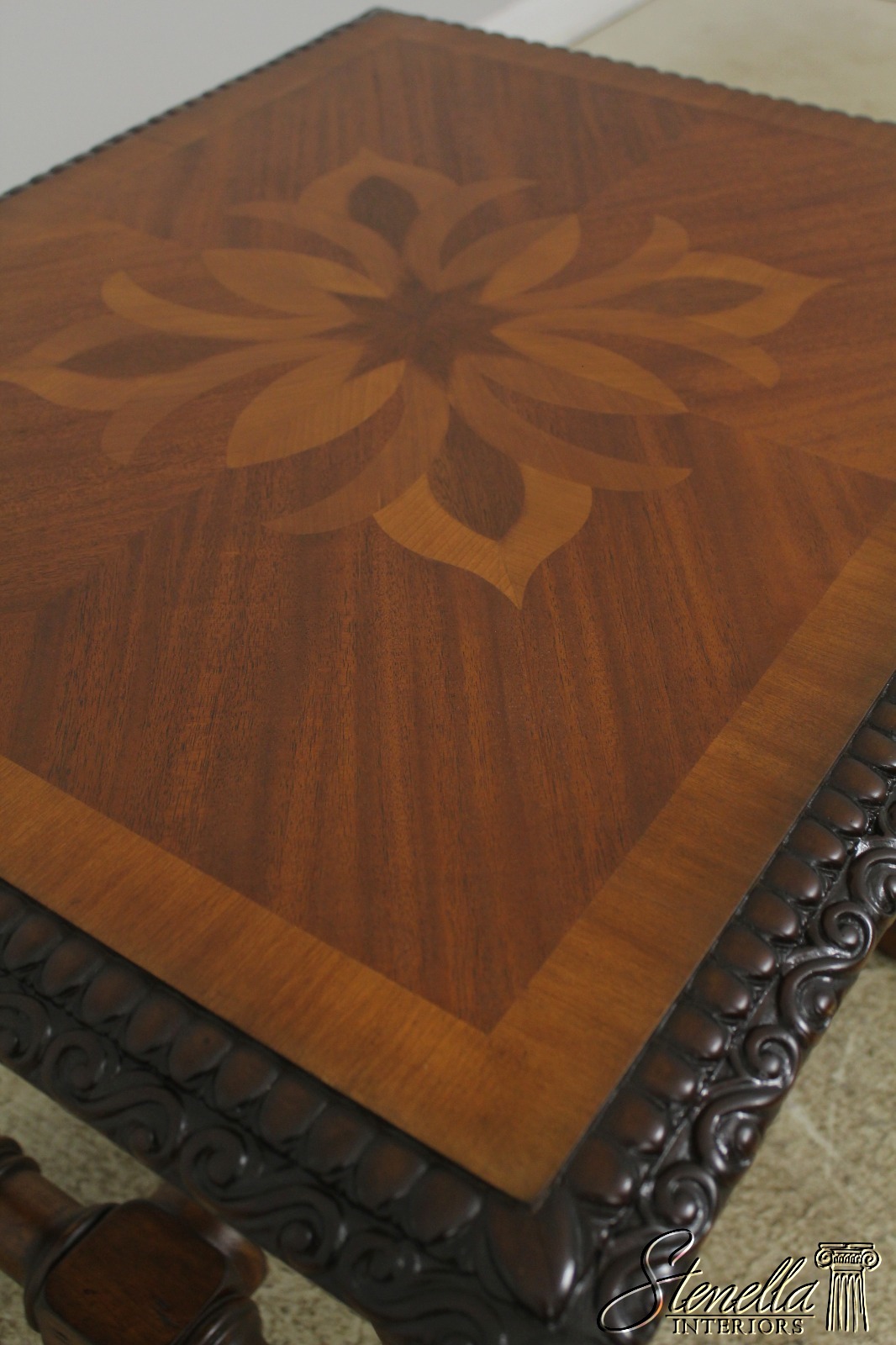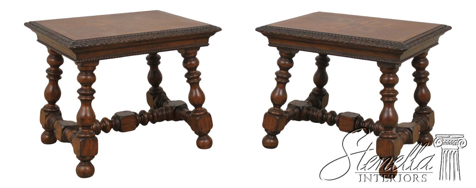 Details: Carved Borders Nice Turned Legs & Stretcher Bases English Style Nice Inlaid Tops Would Make Nice Library Or Foyer Tables Message Us If Interested In 1 Table Only Un-Marked As To Manufacture