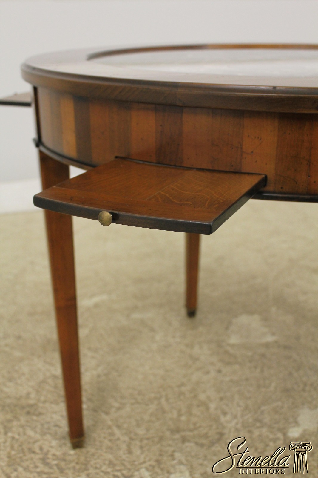 Details: Factory Distressed Finish Marble Or Granite Top High Quality Construction Brass Capped Legs French Style Pull Out Cup Holder Slides Possibly Grange Or Similar Manufacture Offered @ Fraction Original Retail Cost