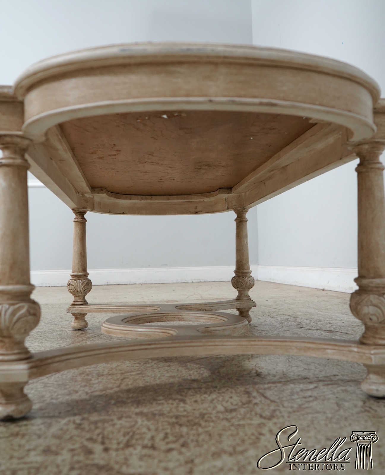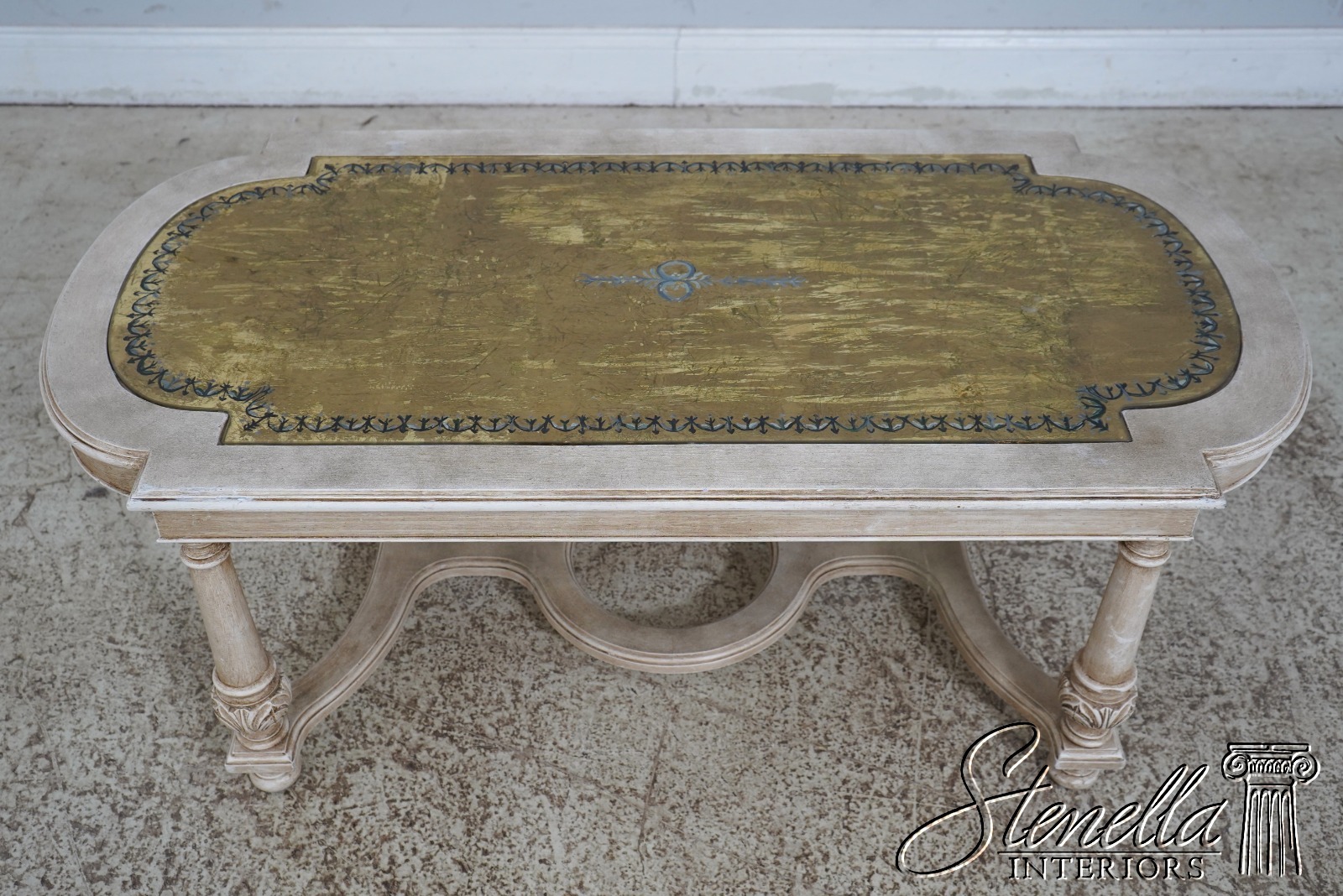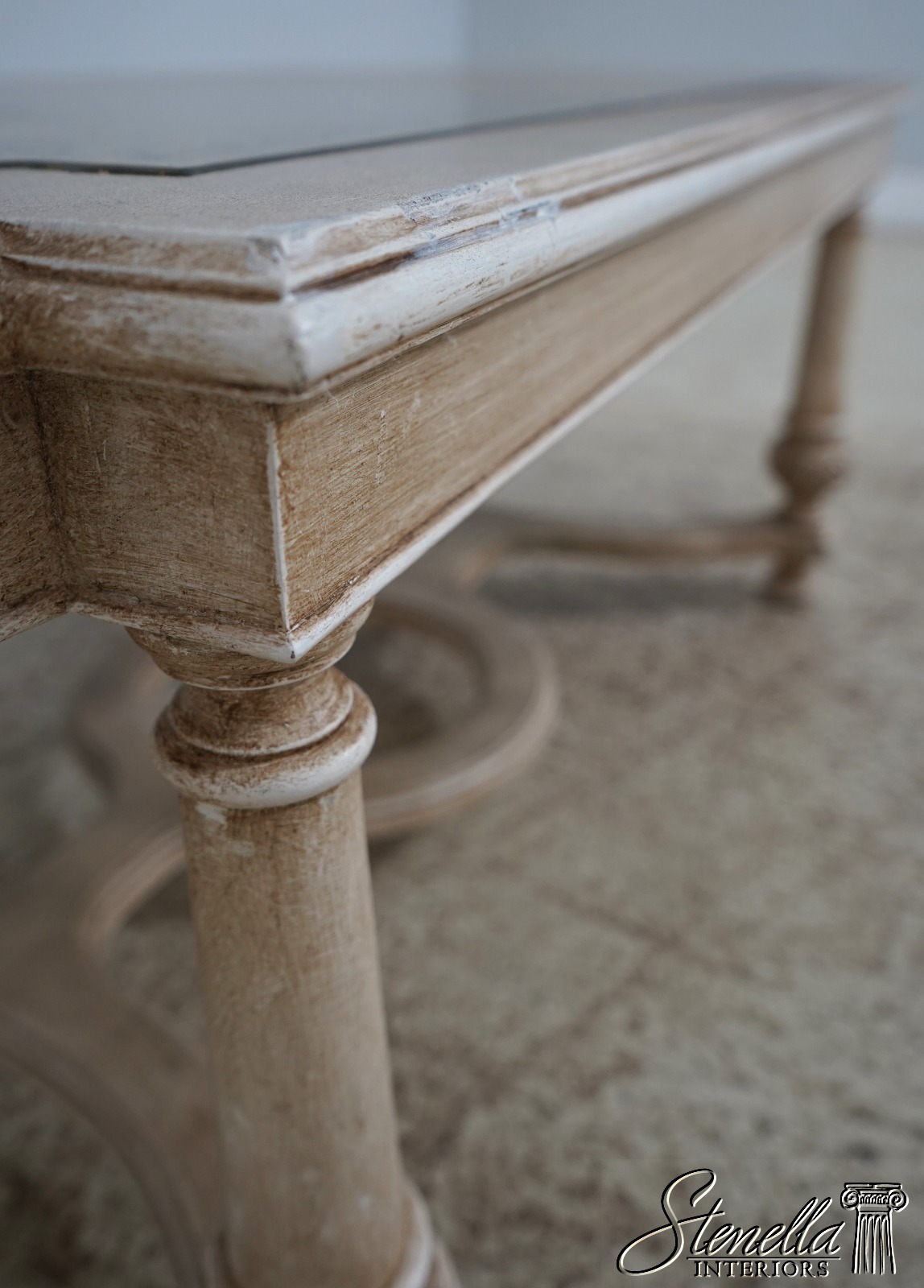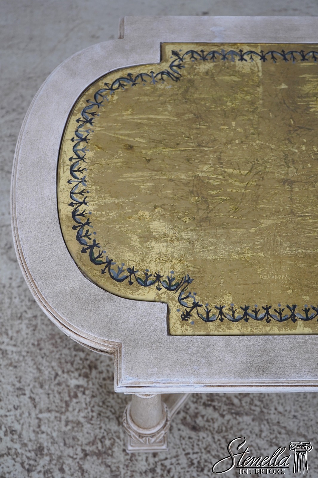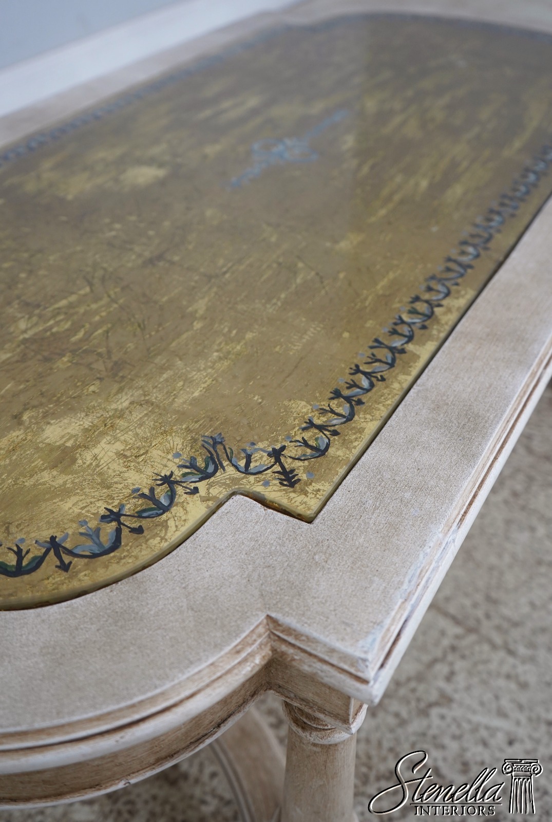 Details: Italian Design Nice Carved Details High Quality Construction Eglomise Reverse Gold Leaf Painted Glass Top Nice ‘Antique’ Painted Finish