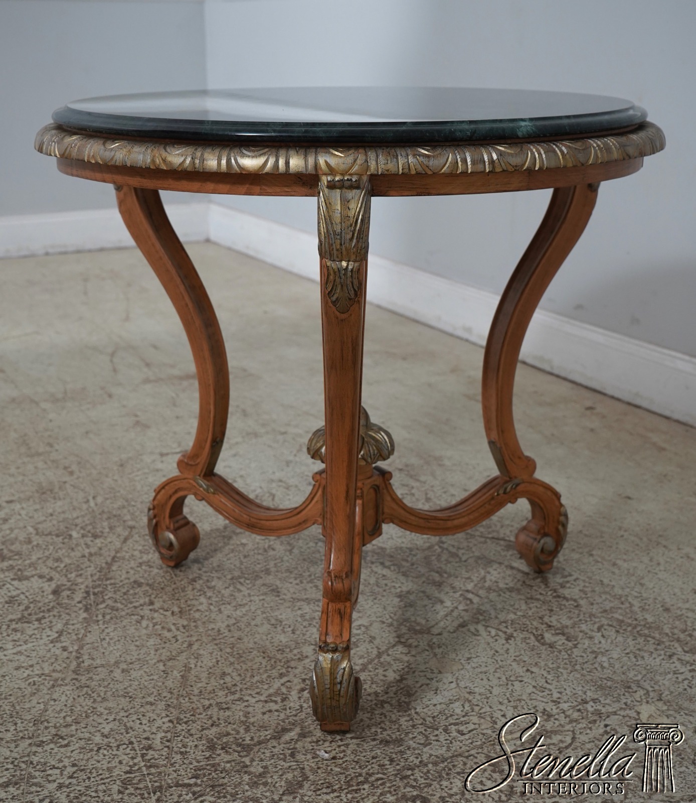 L62227: Italian Style Green Marble Top Round Lamp Table