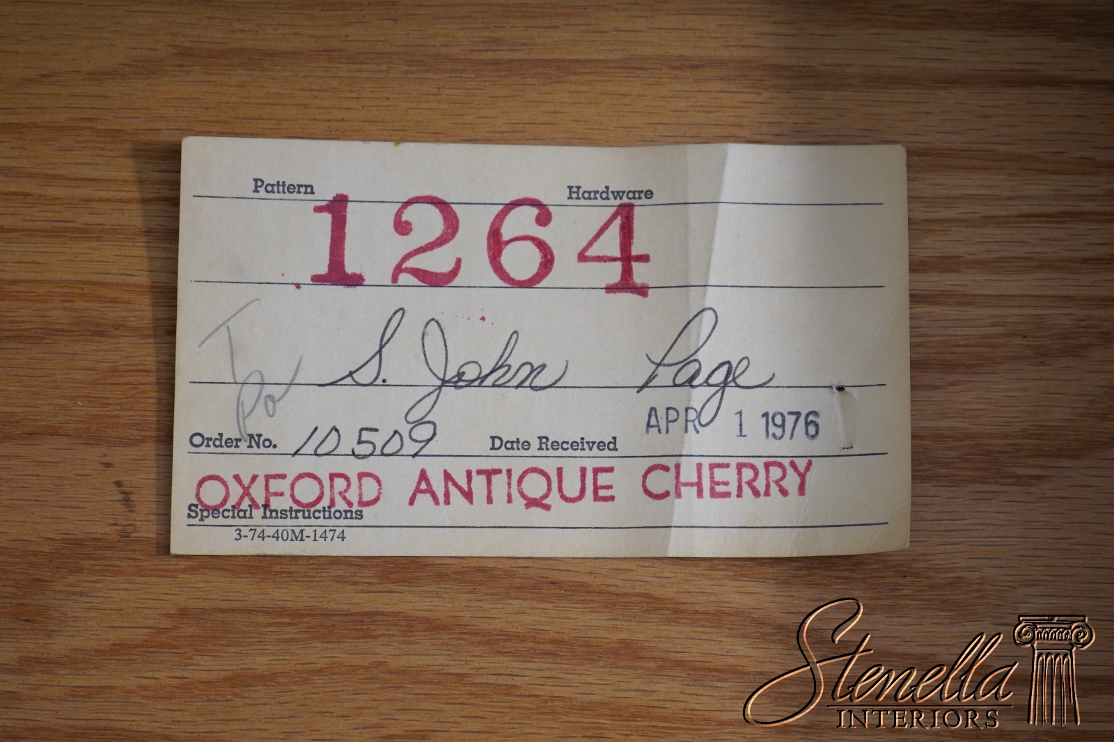 Age: Details: Oxford Antique Cherry Finish Bicentennial Collection Ball & Claw Feet Dovetailed Drawer Construction Fine Carved Details High Quality Construction 18 C. Design Chippendale Style Solid Brass Hardware Light Factory Distressed Offered @ Fraction Original Retail Cost