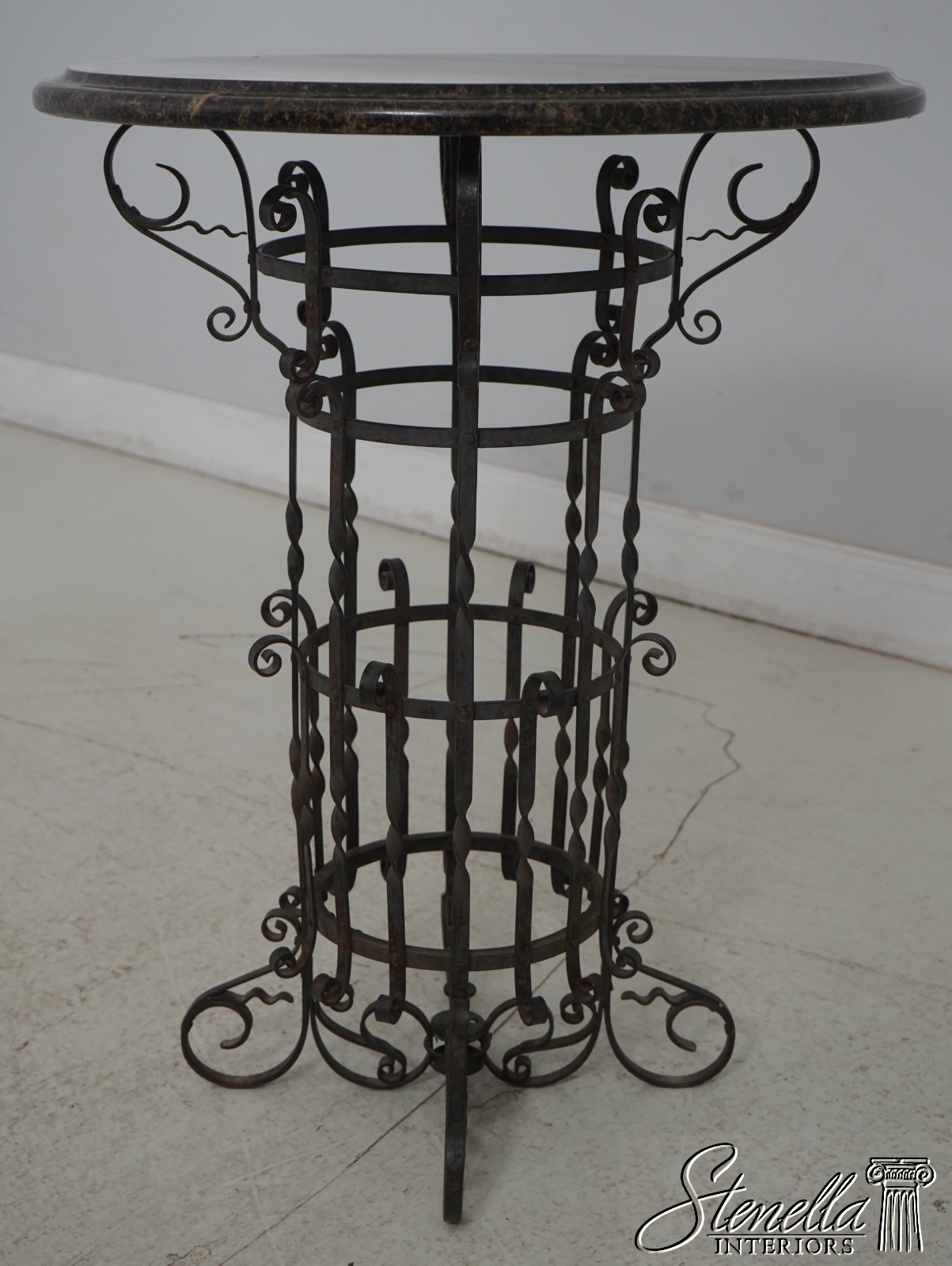L64725: Marble Top Round Iron Base Lamp Table