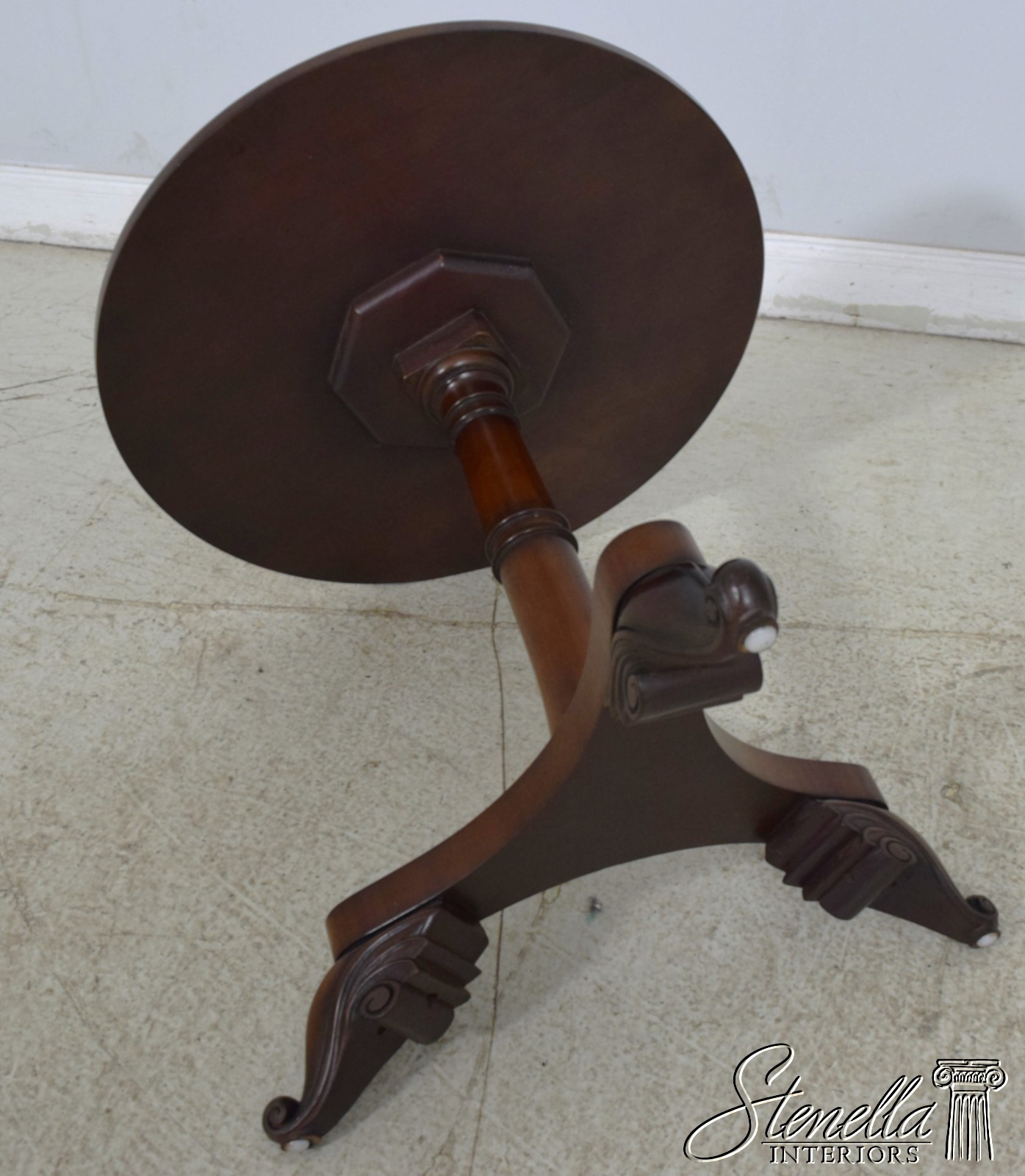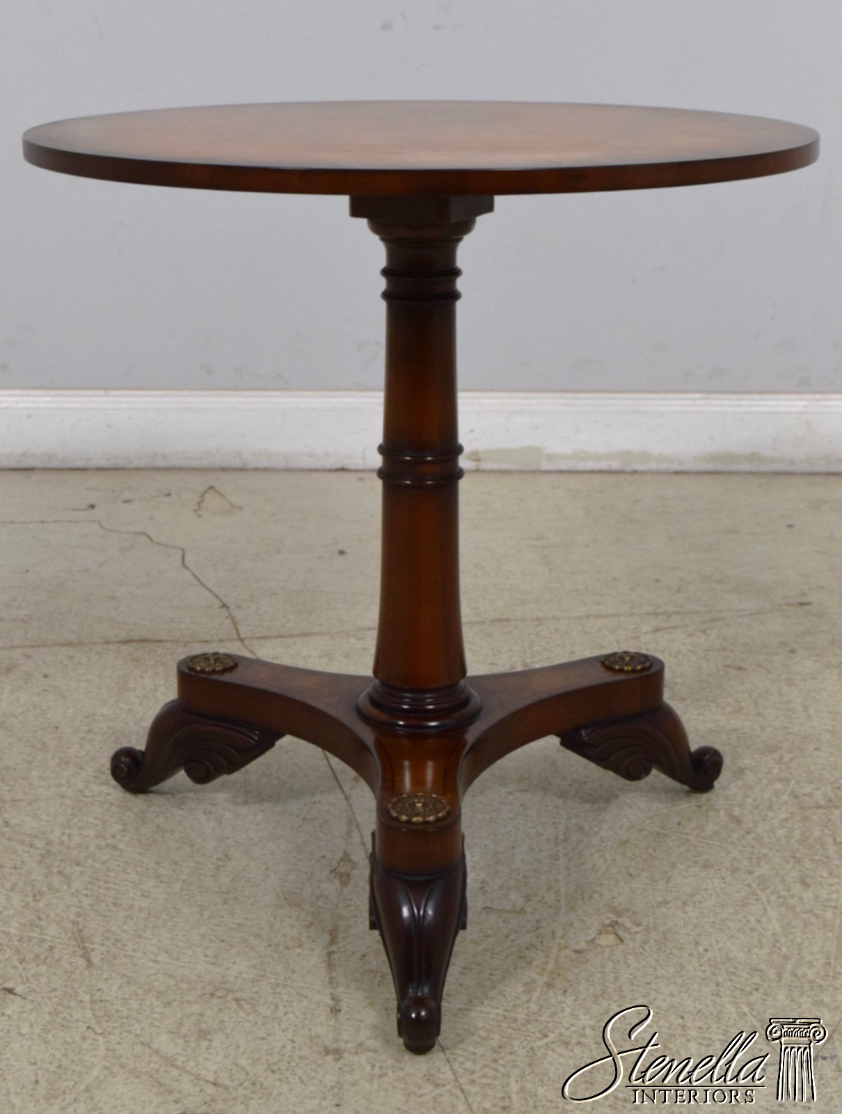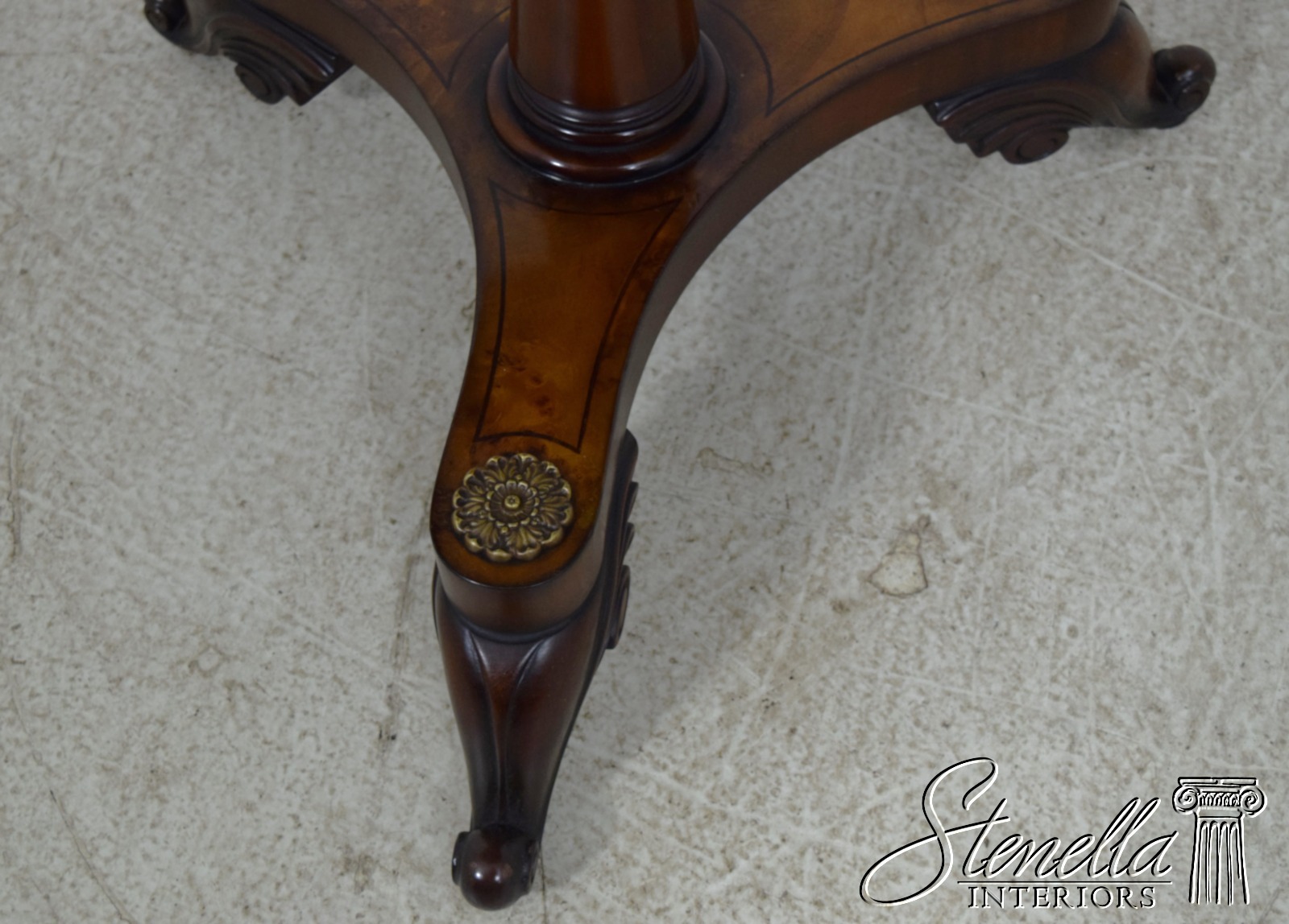 L65084EC: Regency Style Burl Walnut Round Pedestal Table