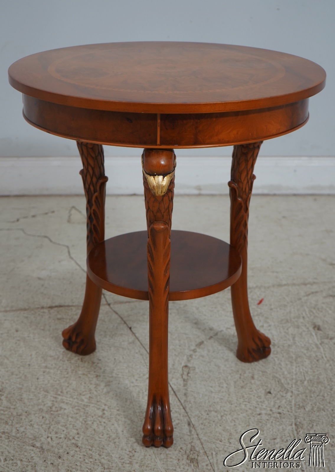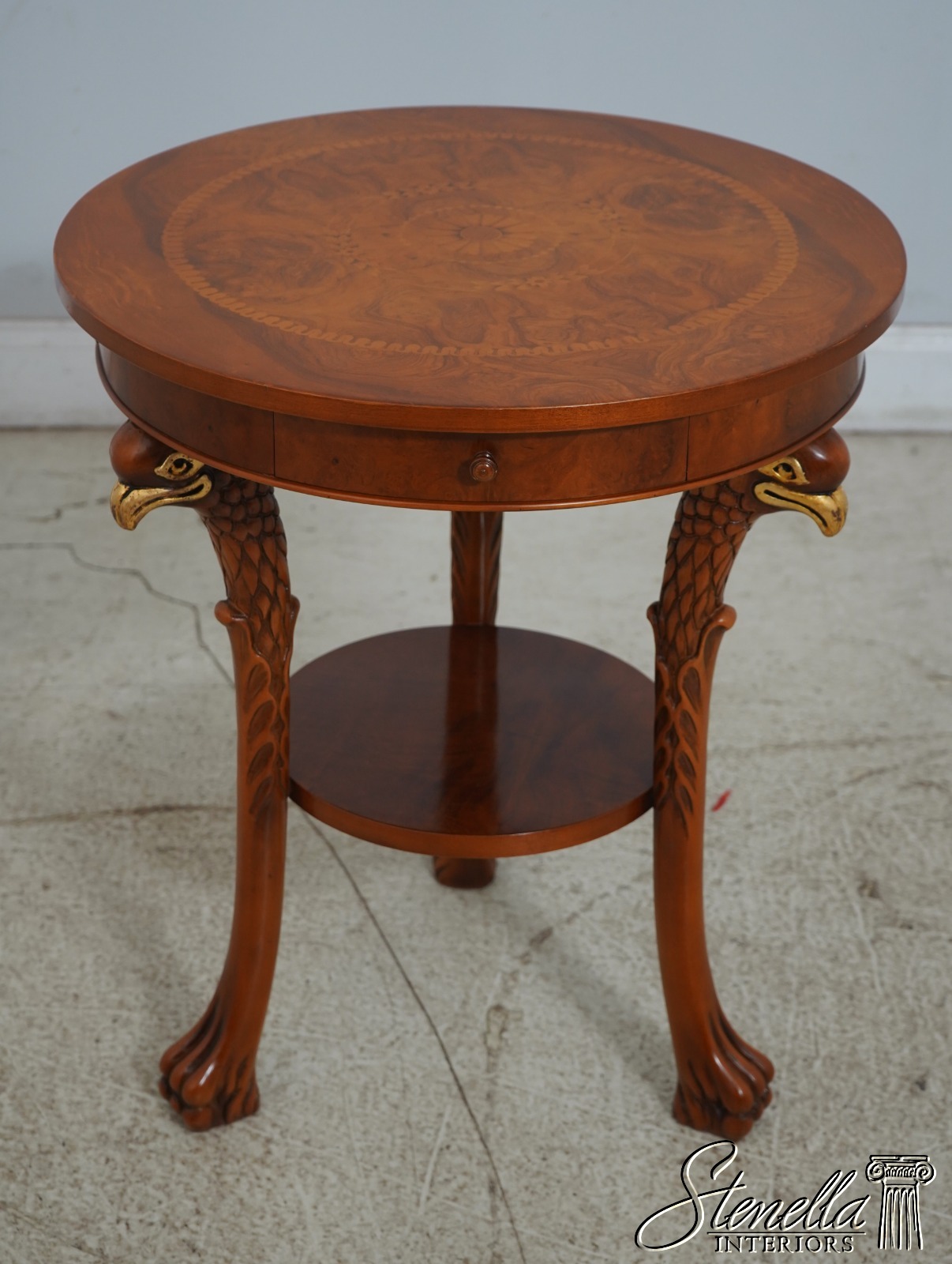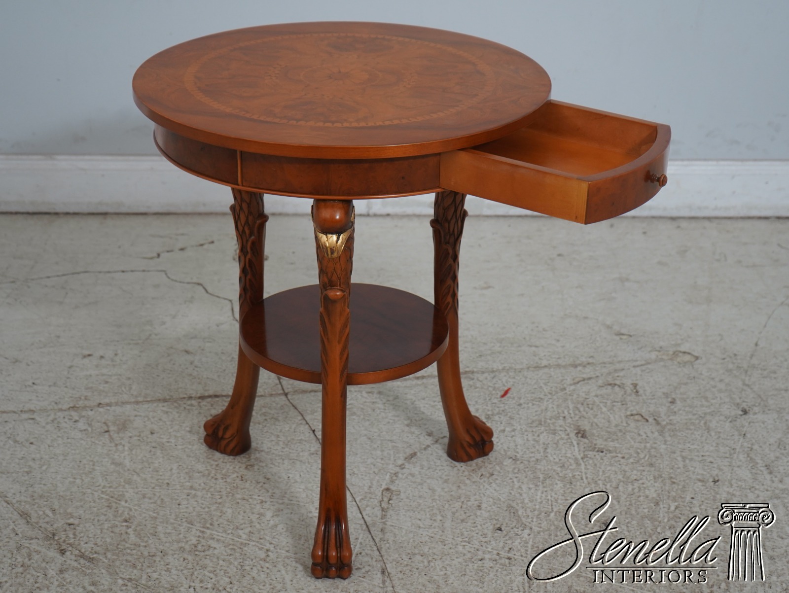 L65913EC: Pair Italian Classical Round Inlaid 1 Drawer Lamp Tables