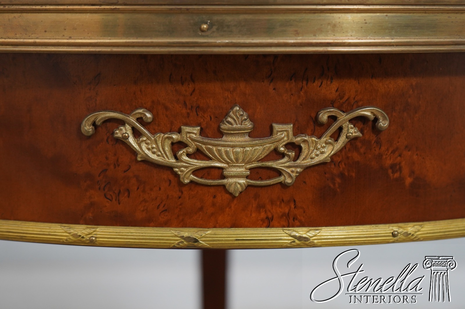 Details: Gorgeous Burl Walnut Throughout High Quality Construction French Empire Design Bronze Or Brass Mounted Ormolu Trim work Offered @ Fraction Original Retail Cost