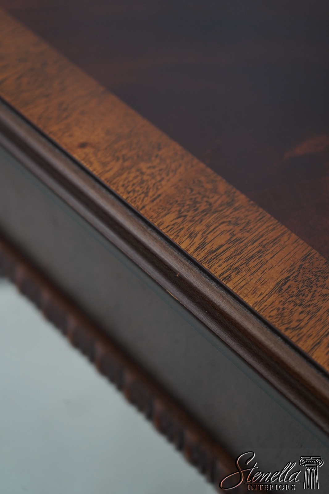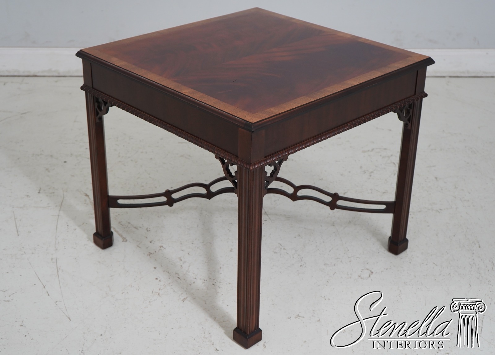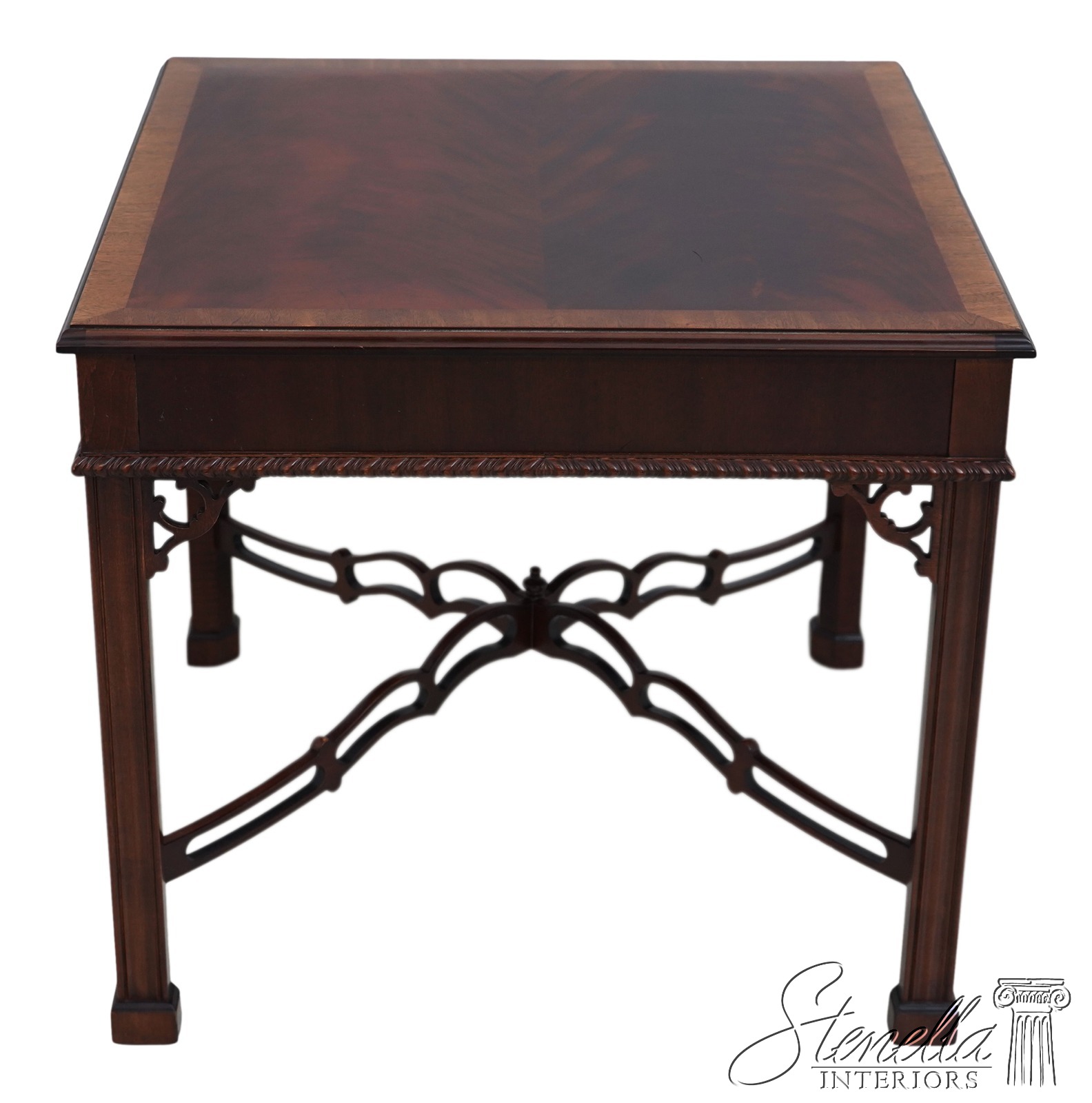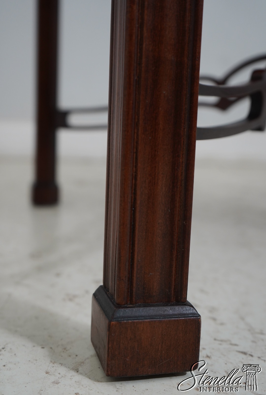 Age: Details: Gorgeous Figural Mahogany Top High Quality Construction 18 C Design Chippendale Style Traditional Style Stretcher Base Frame Un-Marked As To Manufacture - Possibly Hickory Chair Or Similar Manufacture