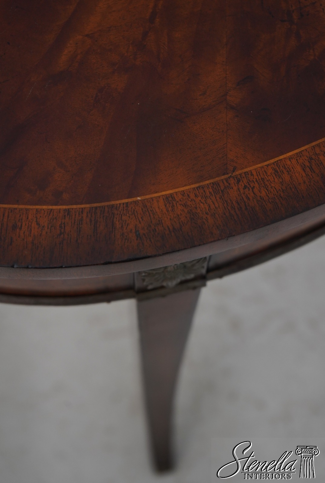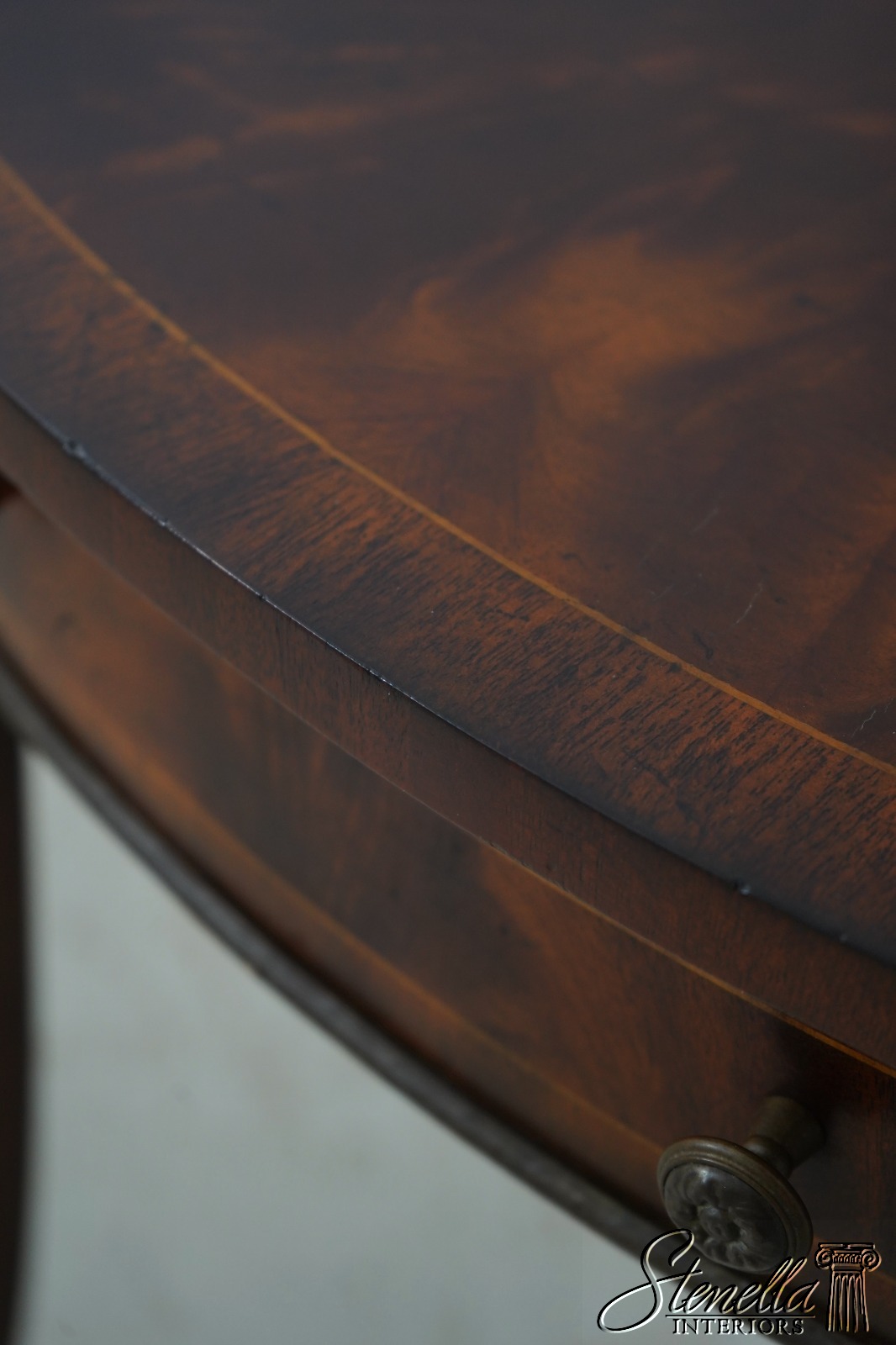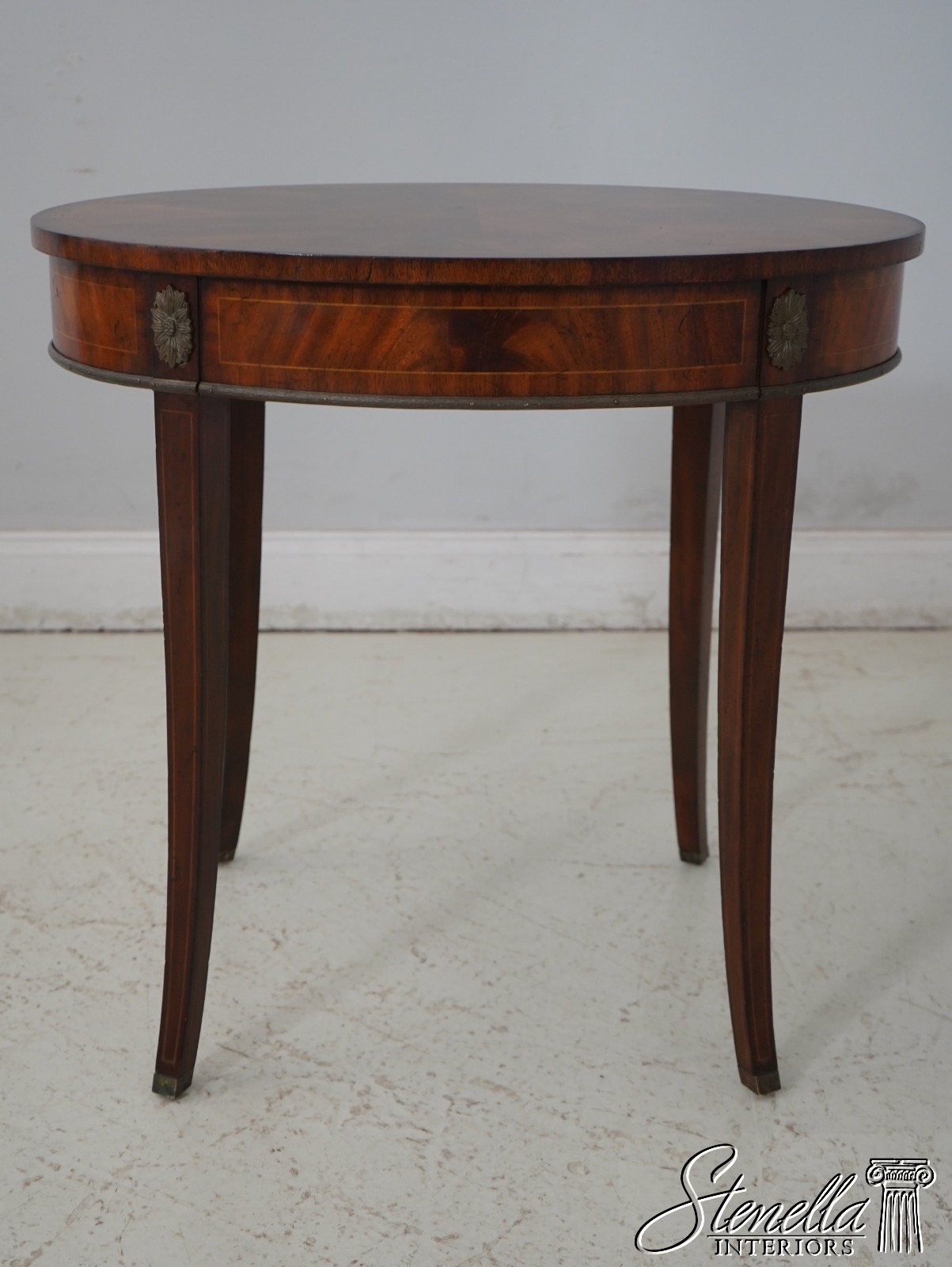 Details: Flame Mahogany Brass Capped Feet Quality Construction Line Inlay Throughout Figural Mahogany Throughout Brass Ormolu Mounts & Trim Solid Brass Hardware Sunburst Top Single Drawer Tapered Legs Offered @ Fraction Original Retail Cost