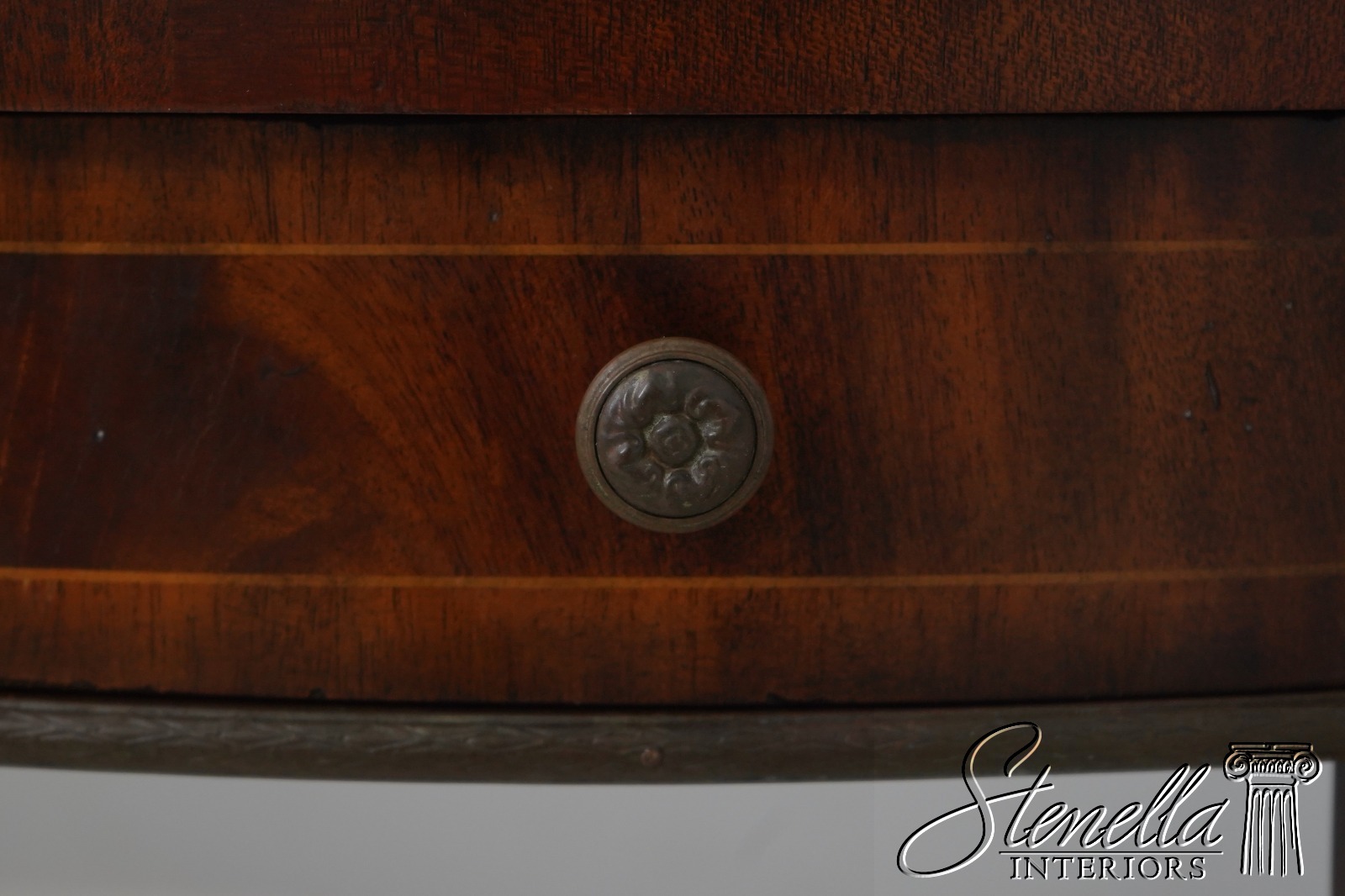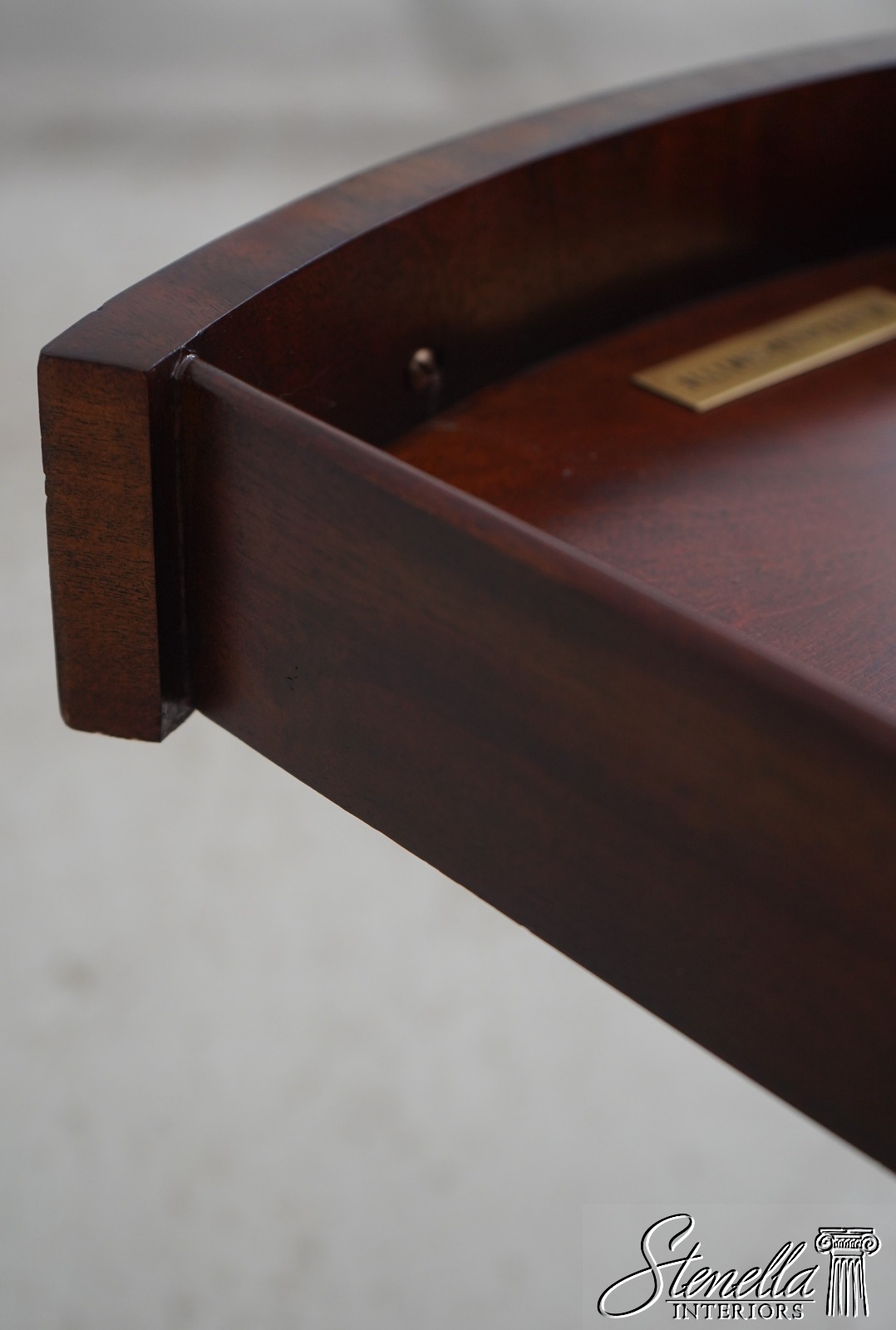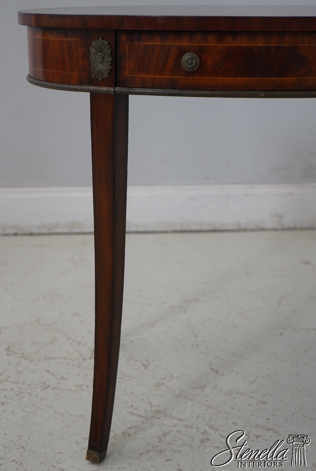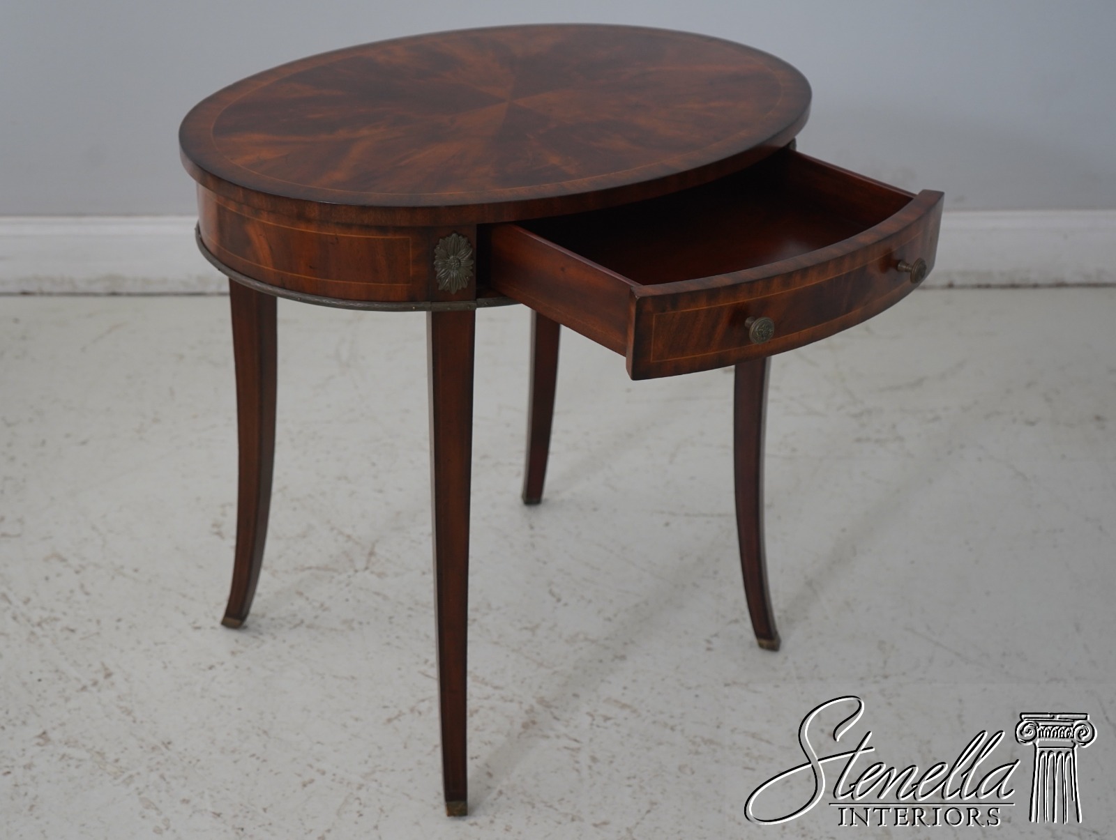 Details: Flame Mahogany Brass Capped Feet Quality Construction Line Inlay Throughout Figural Mahogany Throughout Brass Ormolu Mounts & Trim Solid Brass Hardware Sunburst Top Single Drawer Tapered Legs Offered @ Fraction Original Retail Cost