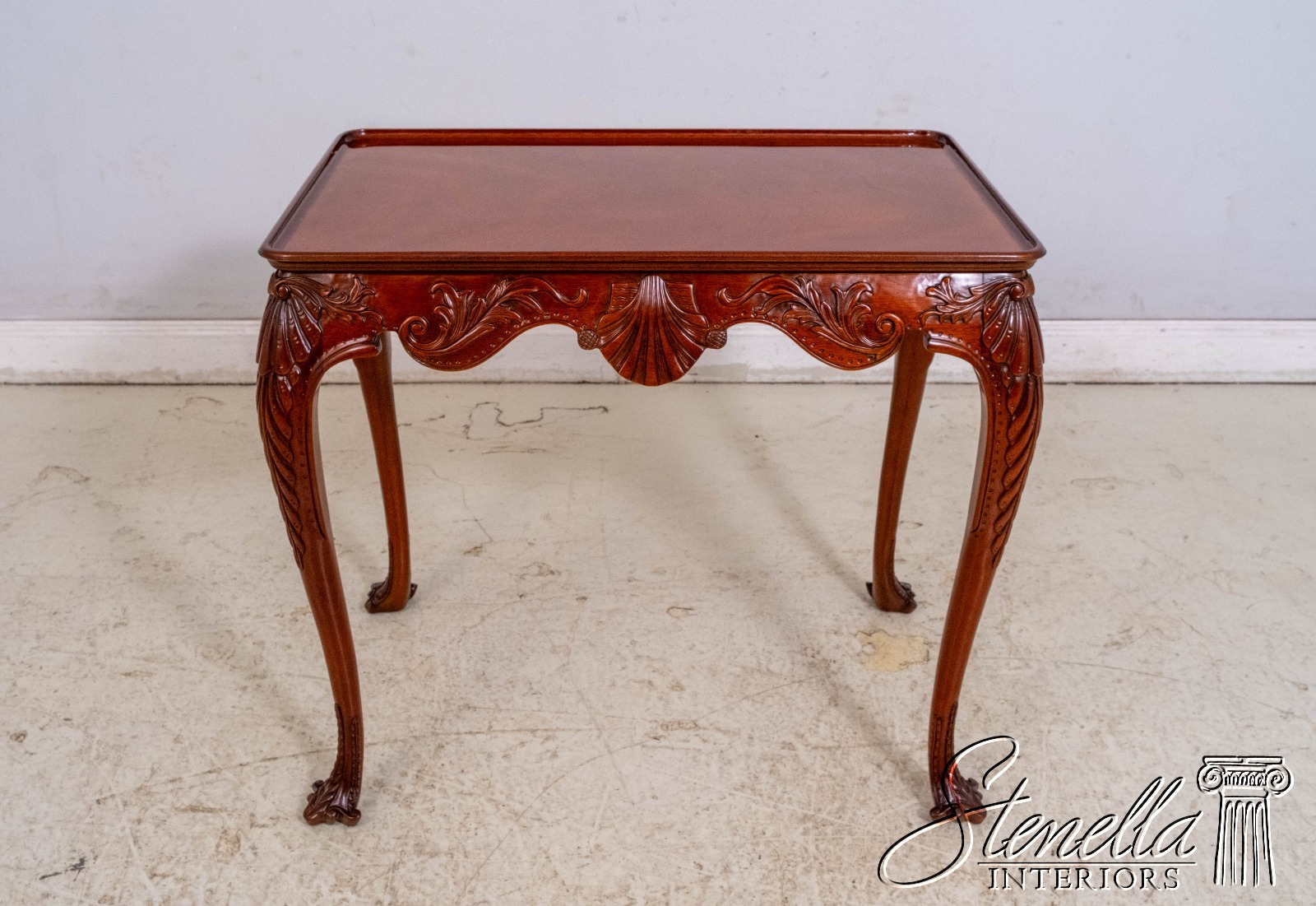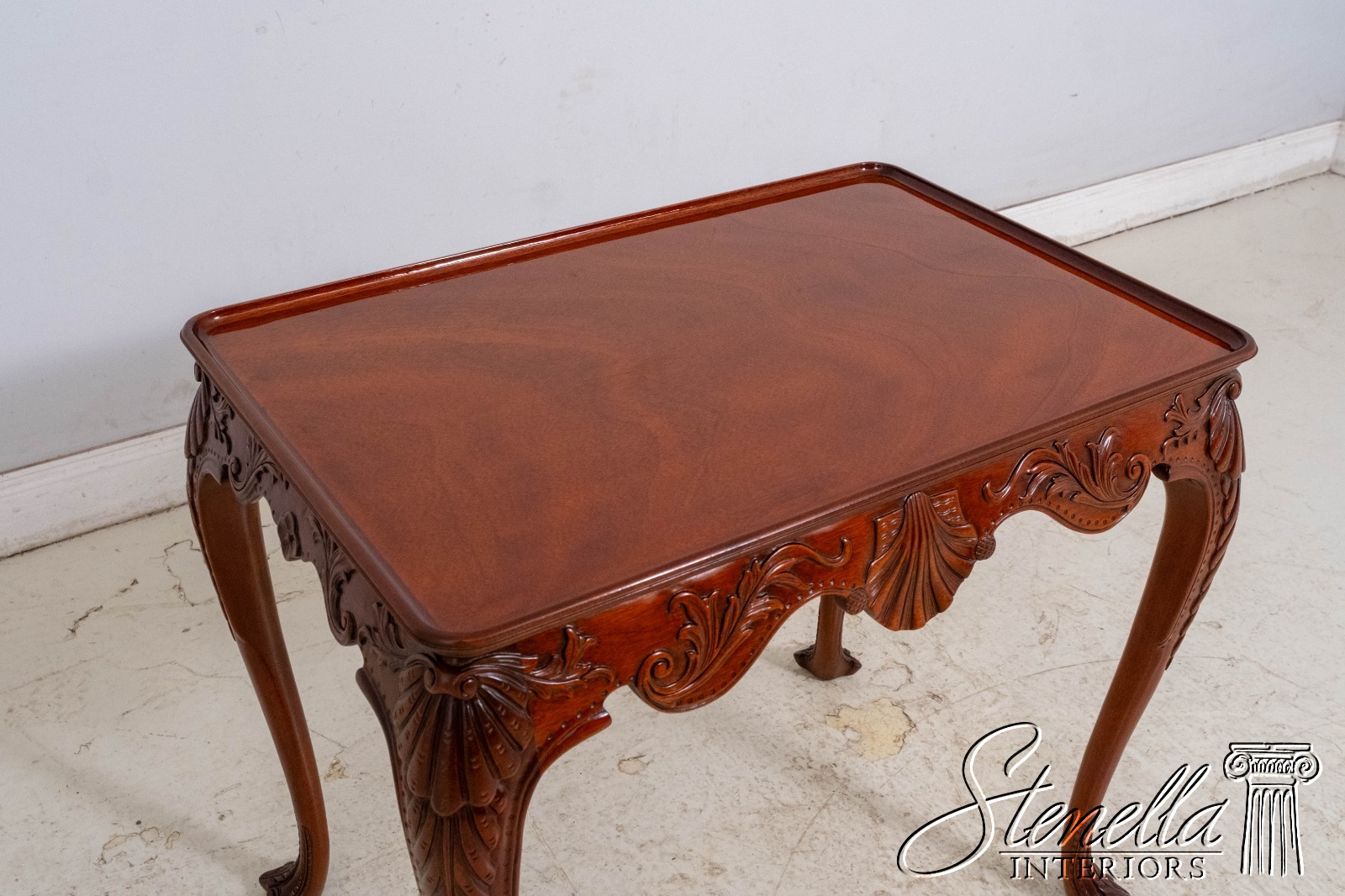 Details: Winterthur Collection Irish Georgian Society Collection Mahogany Fine Carved Details High Quality Construction Rich High Sheen Finish 18 C. Design Traditional Style Shell Carved Knees Double Scrolled Trifid Carved Feet Carved Scalloped Apron Offered @ Fraction Original Retail Cost