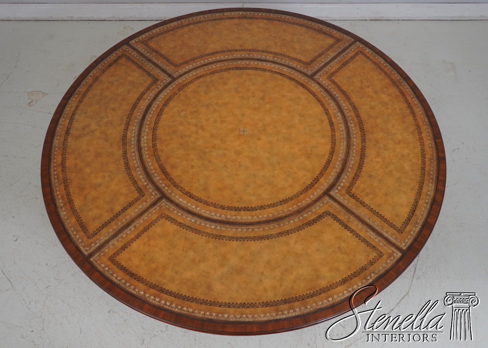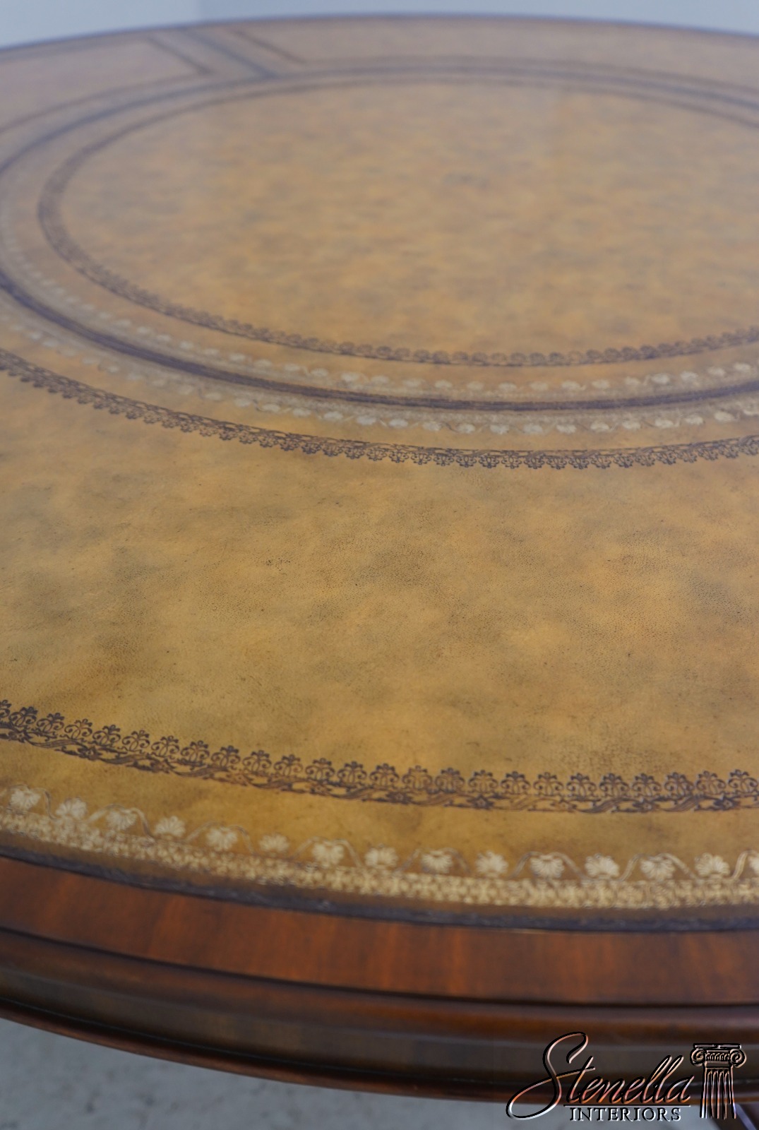 L69025: MAITLAND SMITH Mahogany Leather Top Round Table