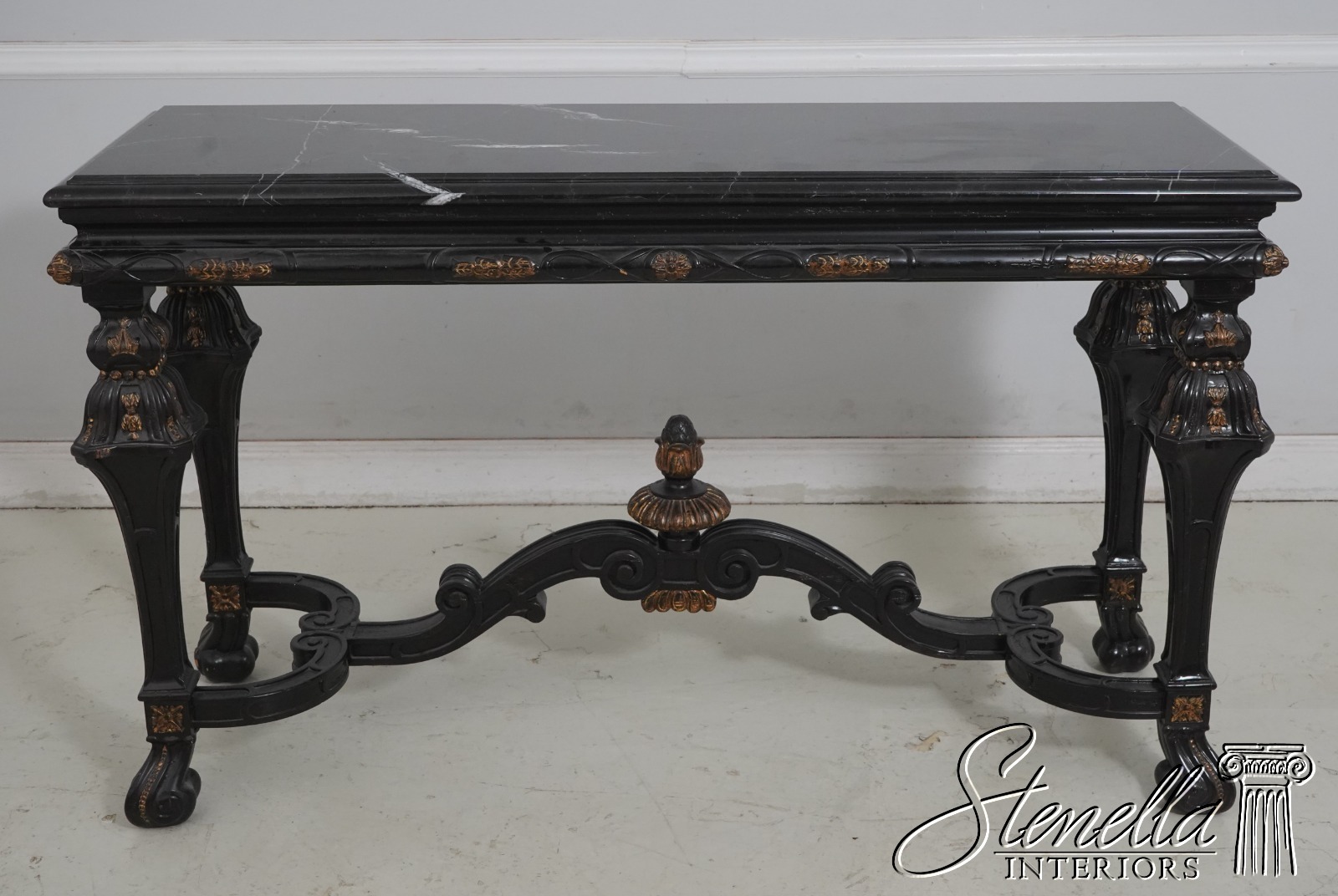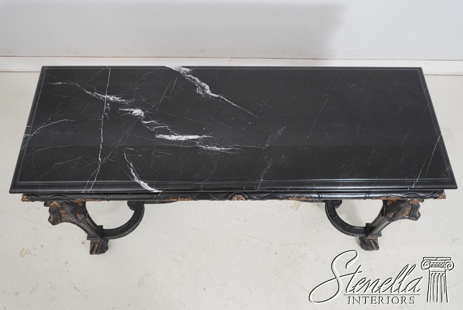 L69062: MARGE CARSON Black Marble Top Continental Console Table
