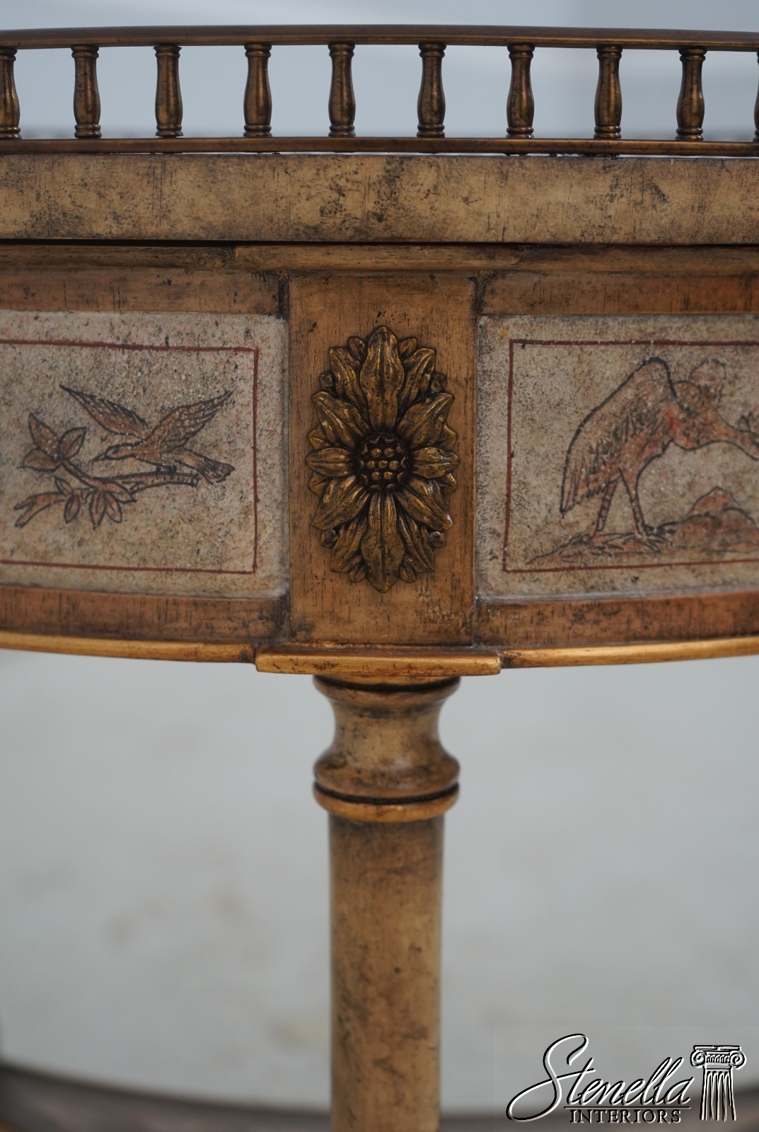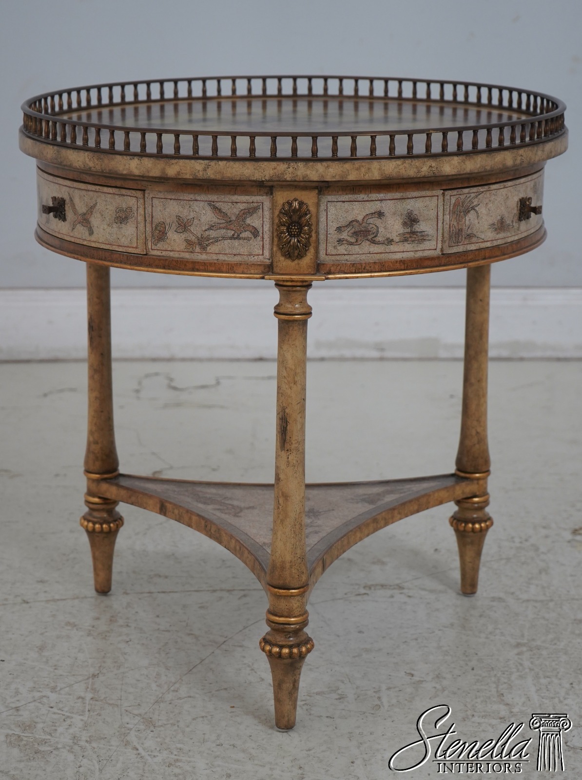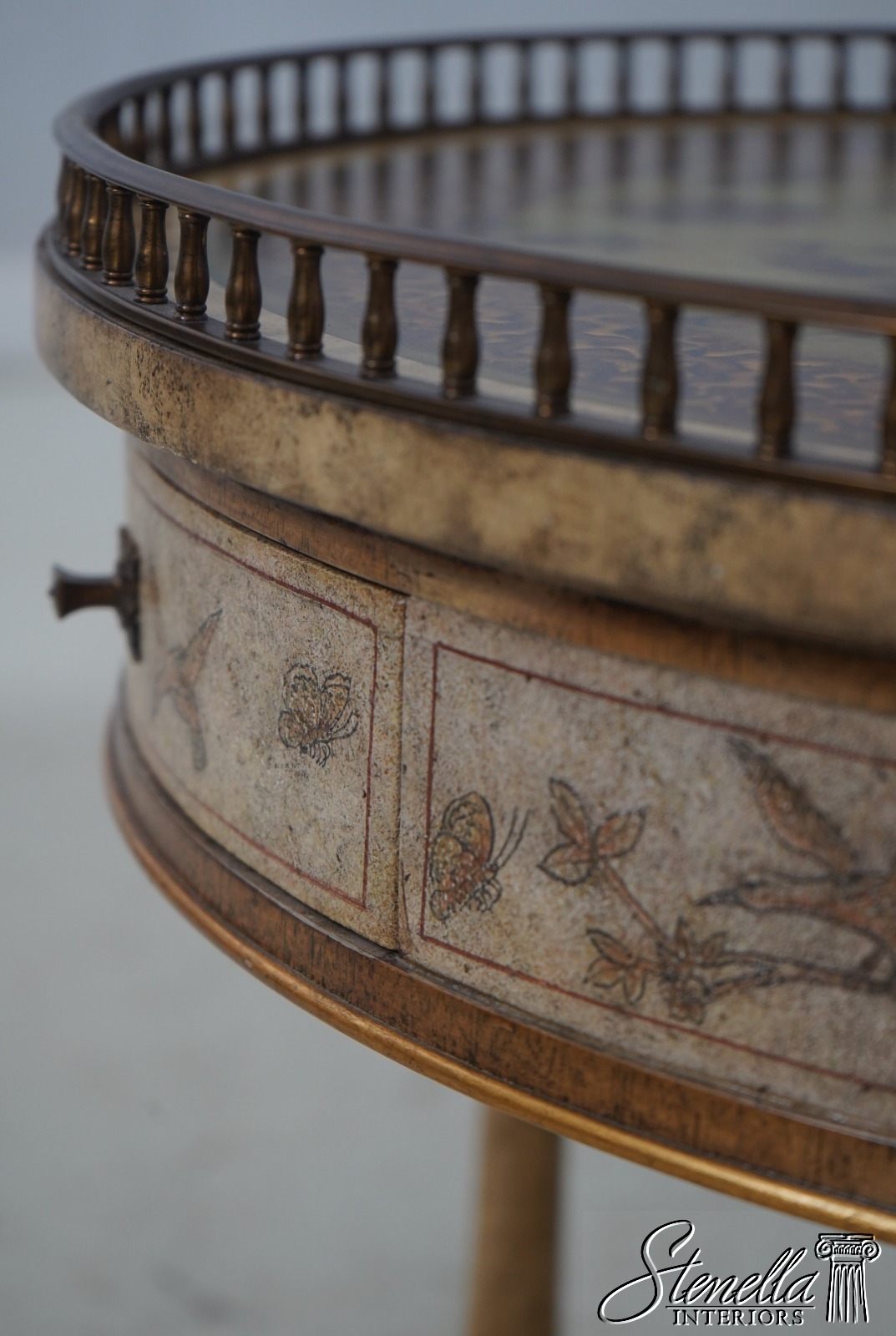 Details: Brass Gallery Pierced Top Fine Carved Details High Quality Construction Stunning Paint Decorated Finish Throughout Solid Brass Hardware Brass Gallery 3 Drawers Paint Decorated Gilded Accents Offered @ Fraction Original Retail Cost
