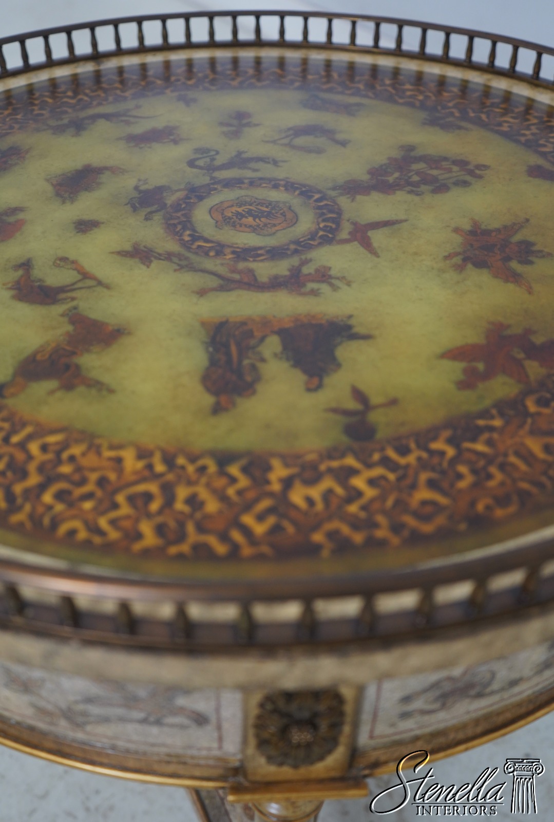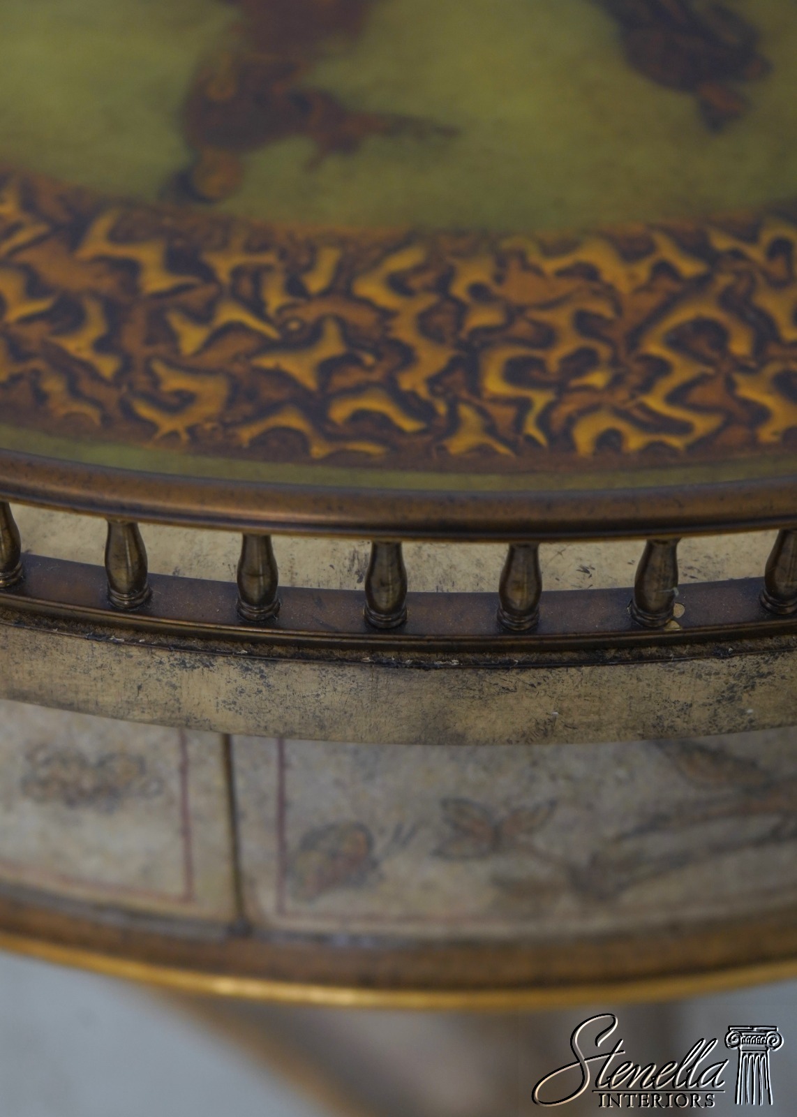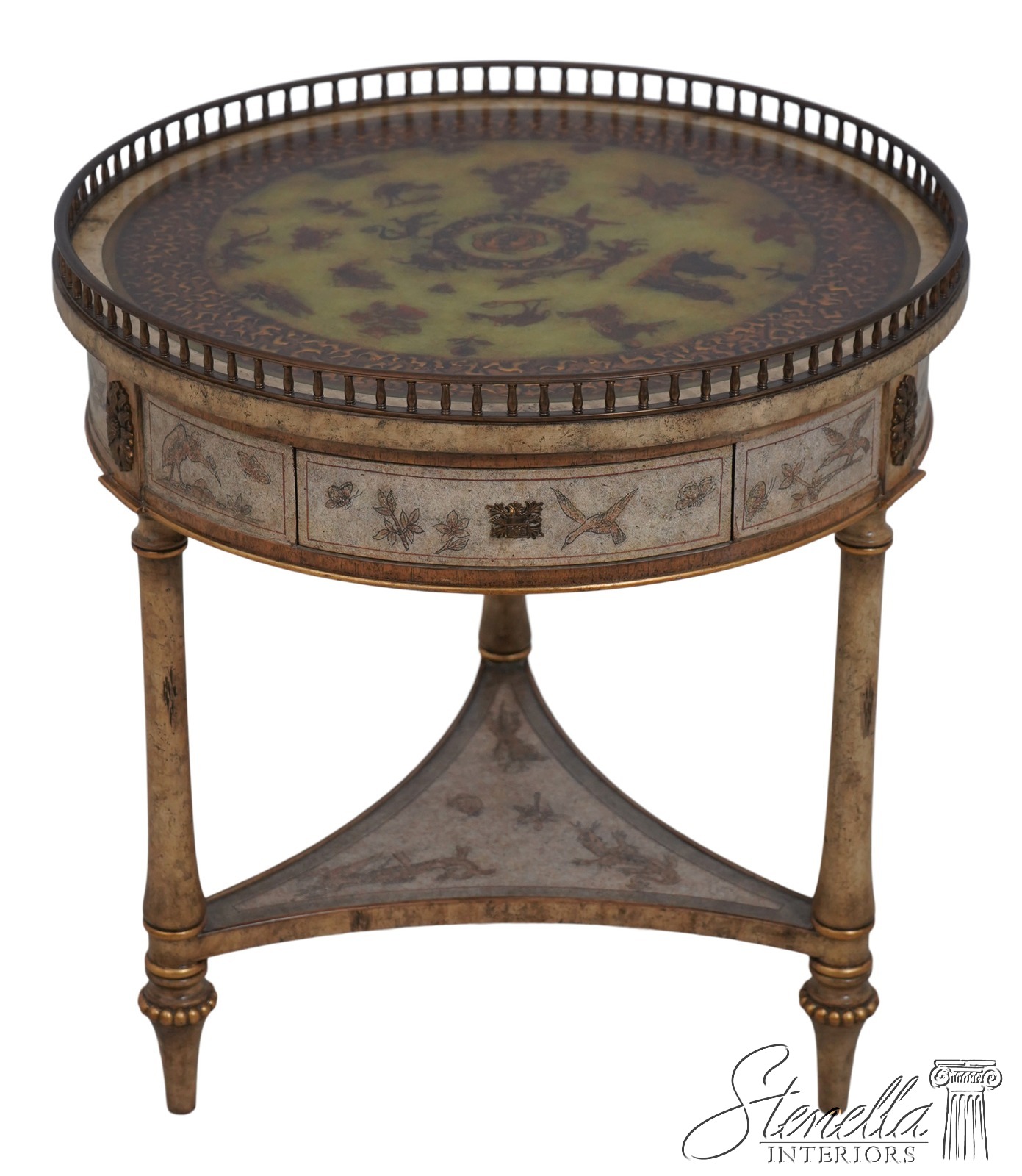Details: Brass Gallery Pierced Top Fine Carved Details High Quality Construction Stunning Paint Decorated Finish Throughout Solid Brass Hardware Brass Gallery 3 Drawers Paint Decorated Gilded Accents Offered @ Fraction Original Retail Cost