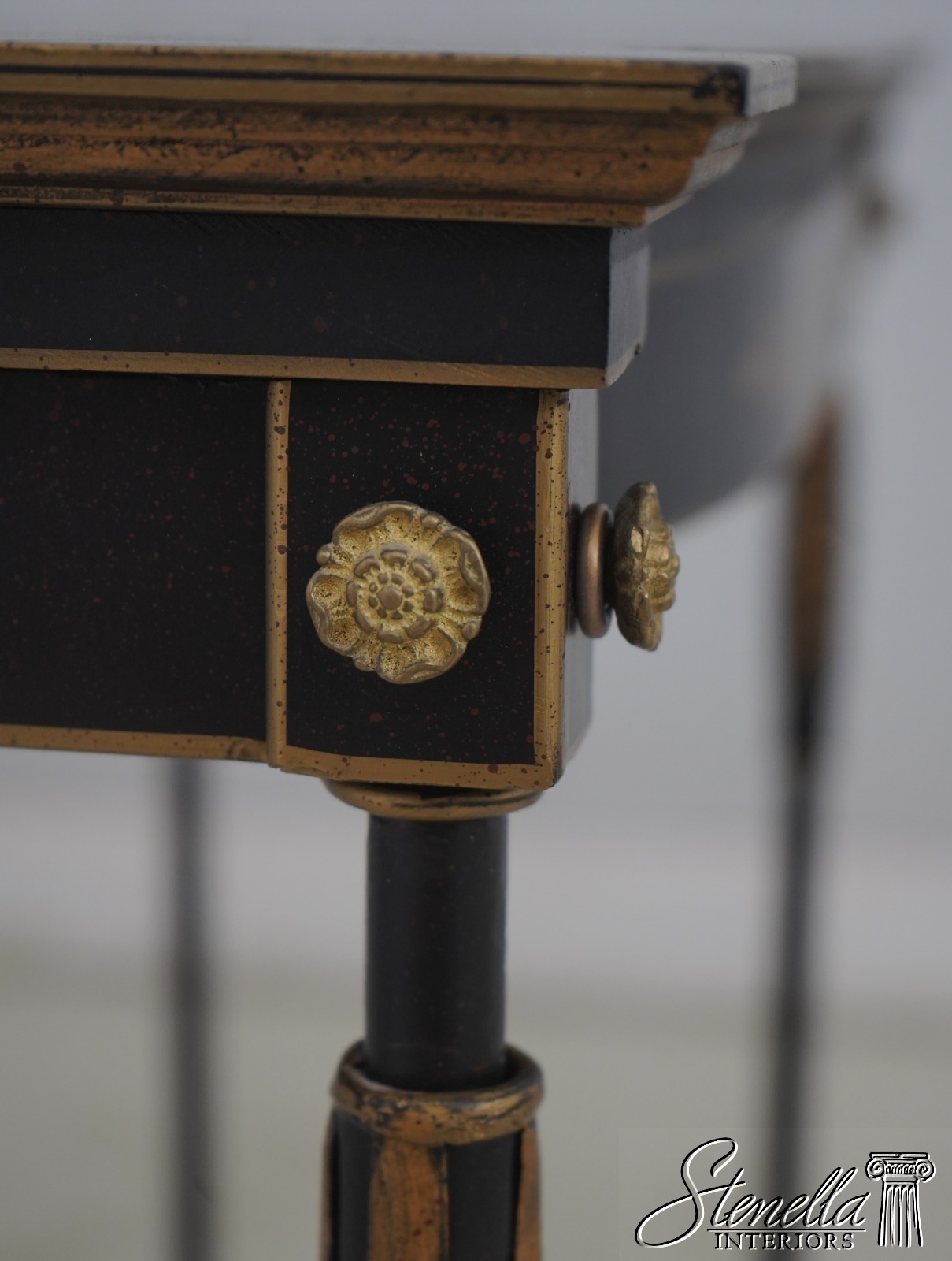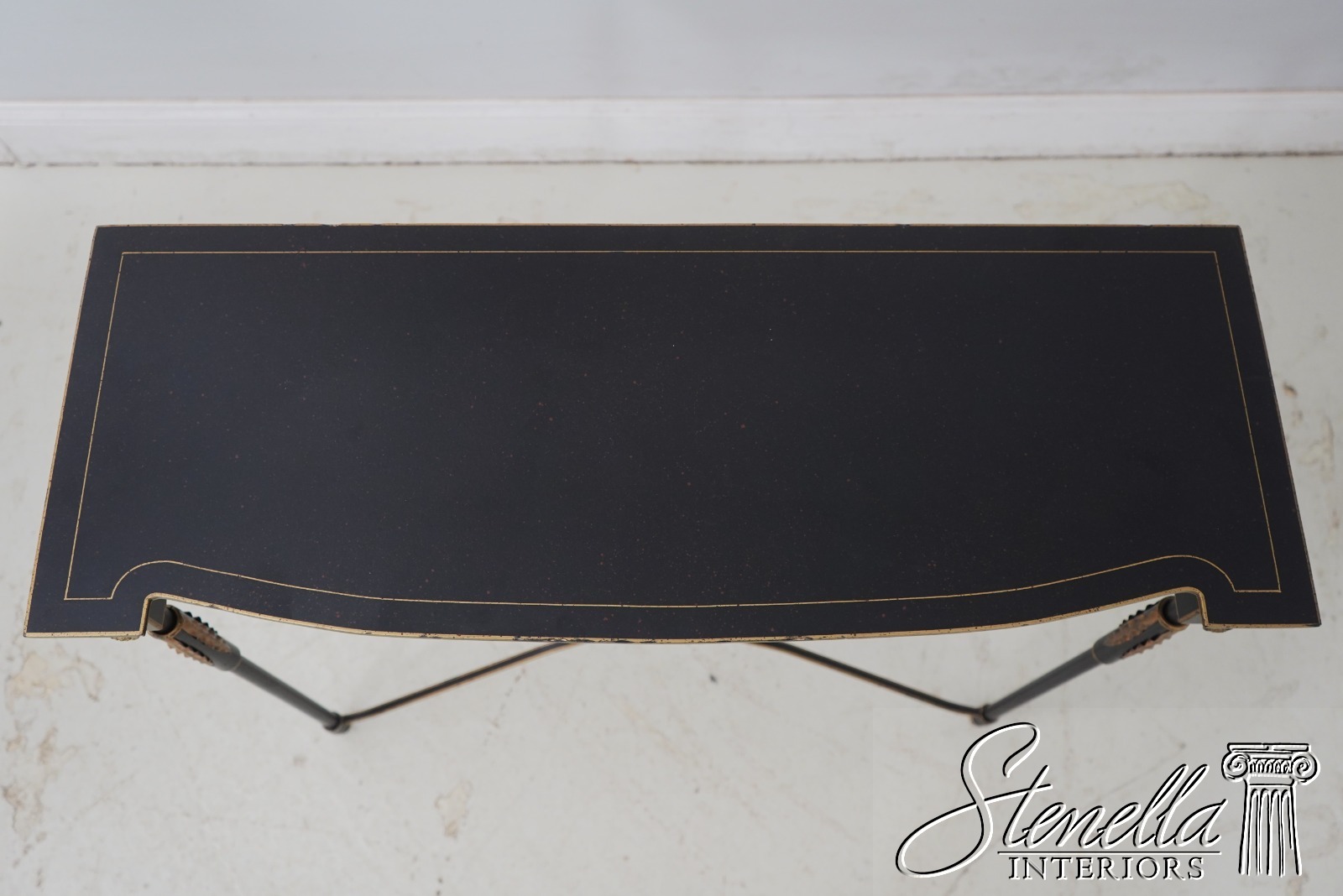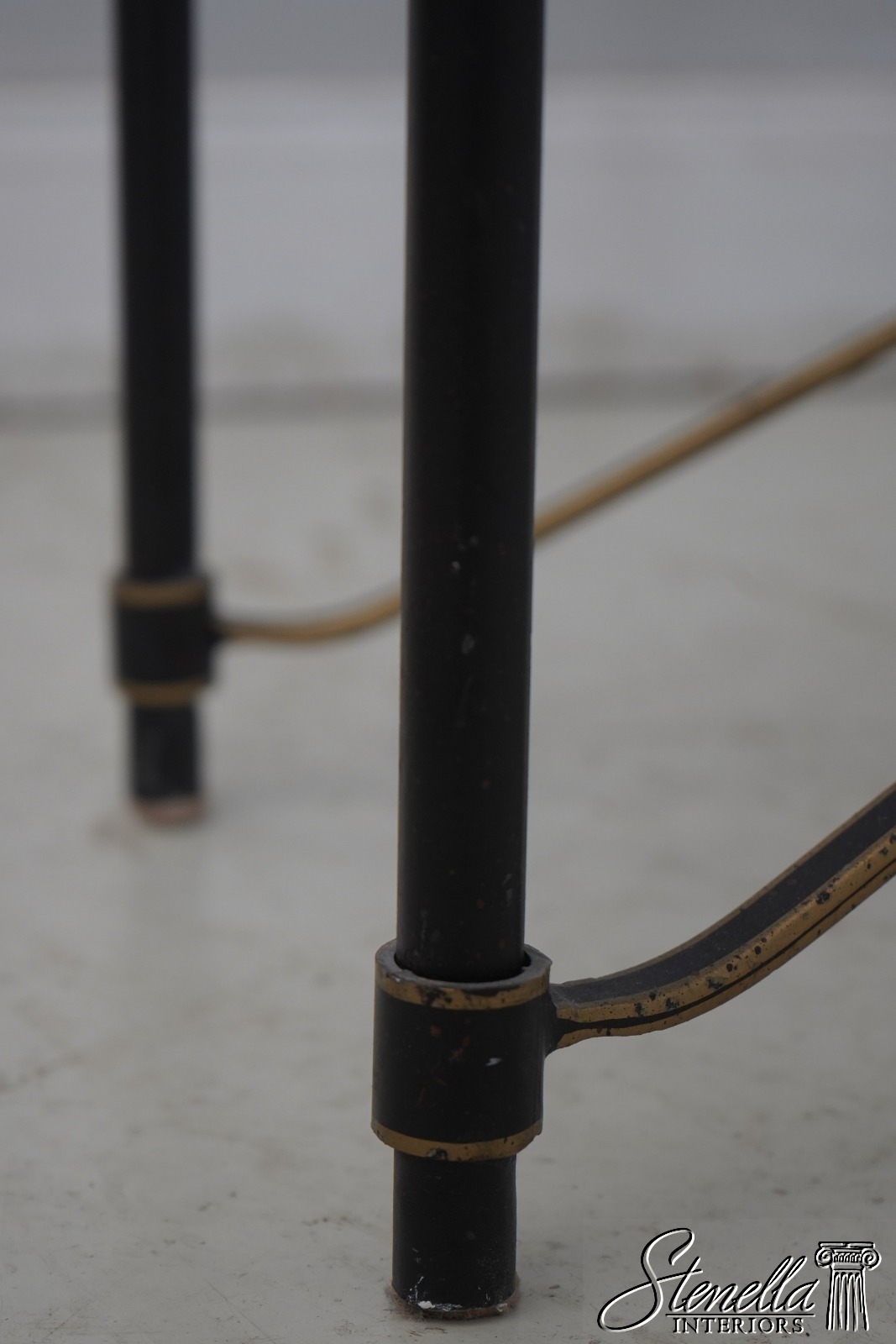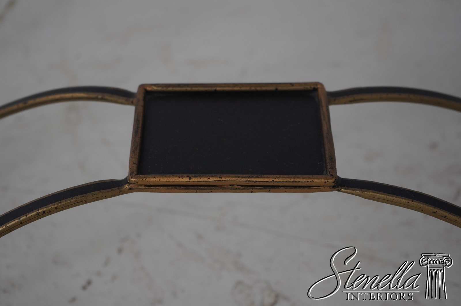 Details: Wood Top Metal Base High Quality Construction Hand Painted Black & Gold Finish Solid Brass Hardware Stretcher Base Frame Speckled Faux Finish To Top Brass Ormolu Offered @ Fraction Original Retail Cost