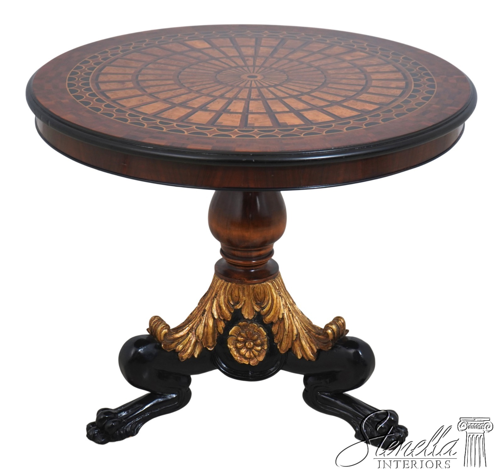L69754: Italian Regency Round Black & Gold Inlaid Center Table