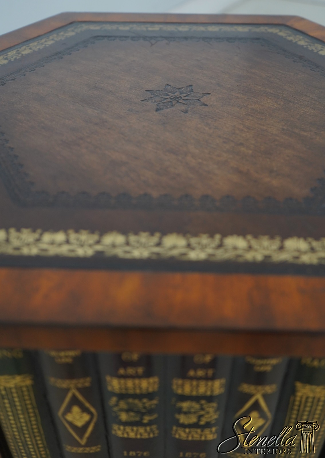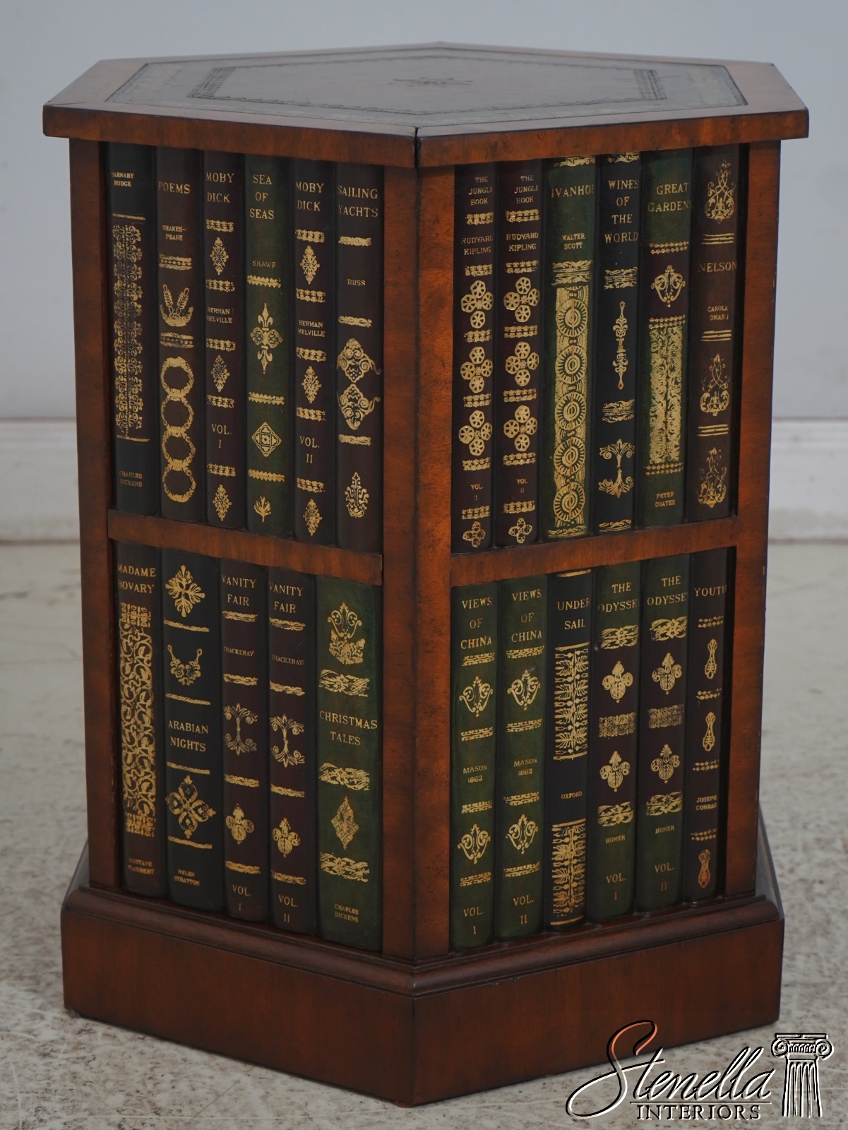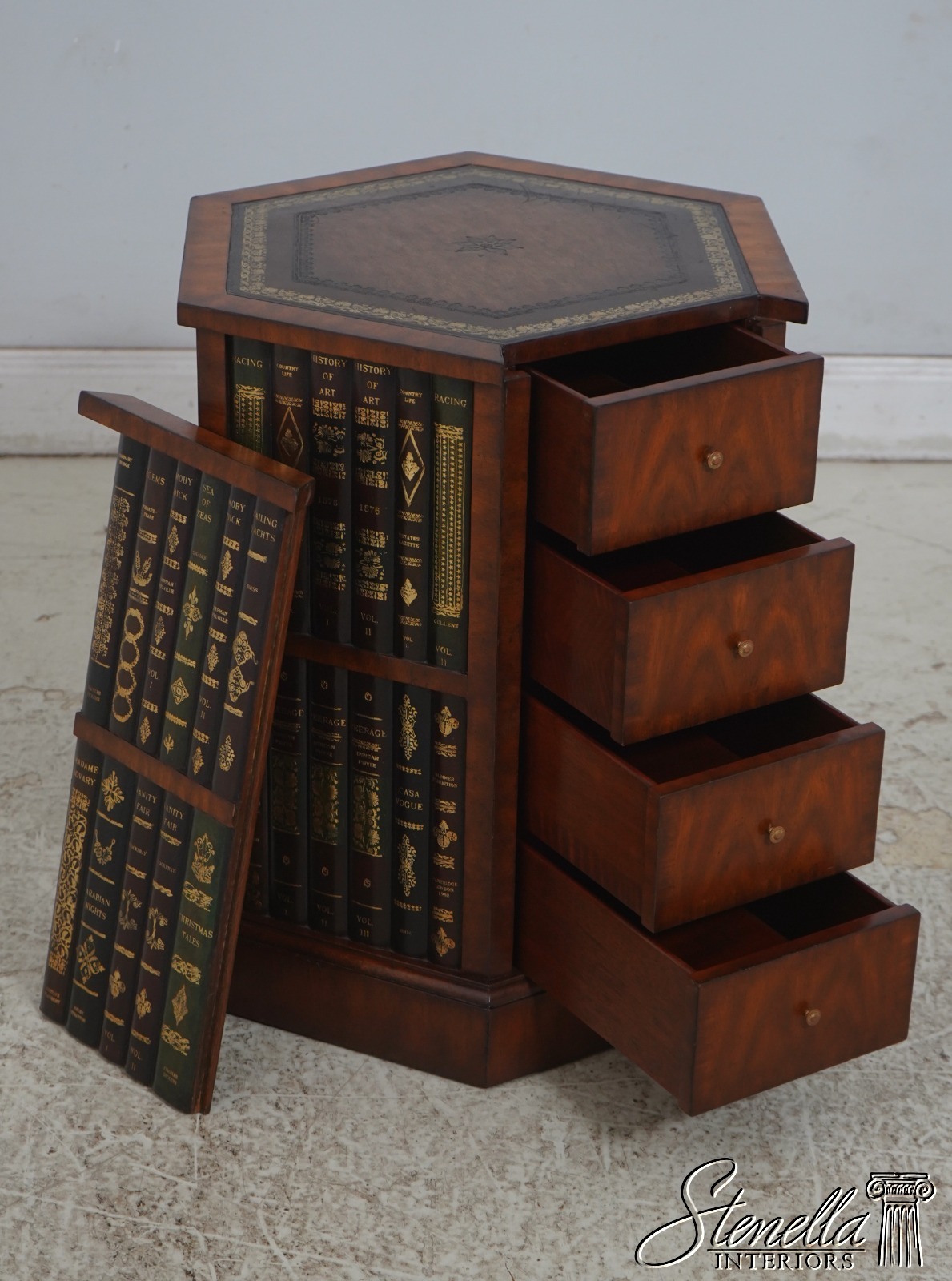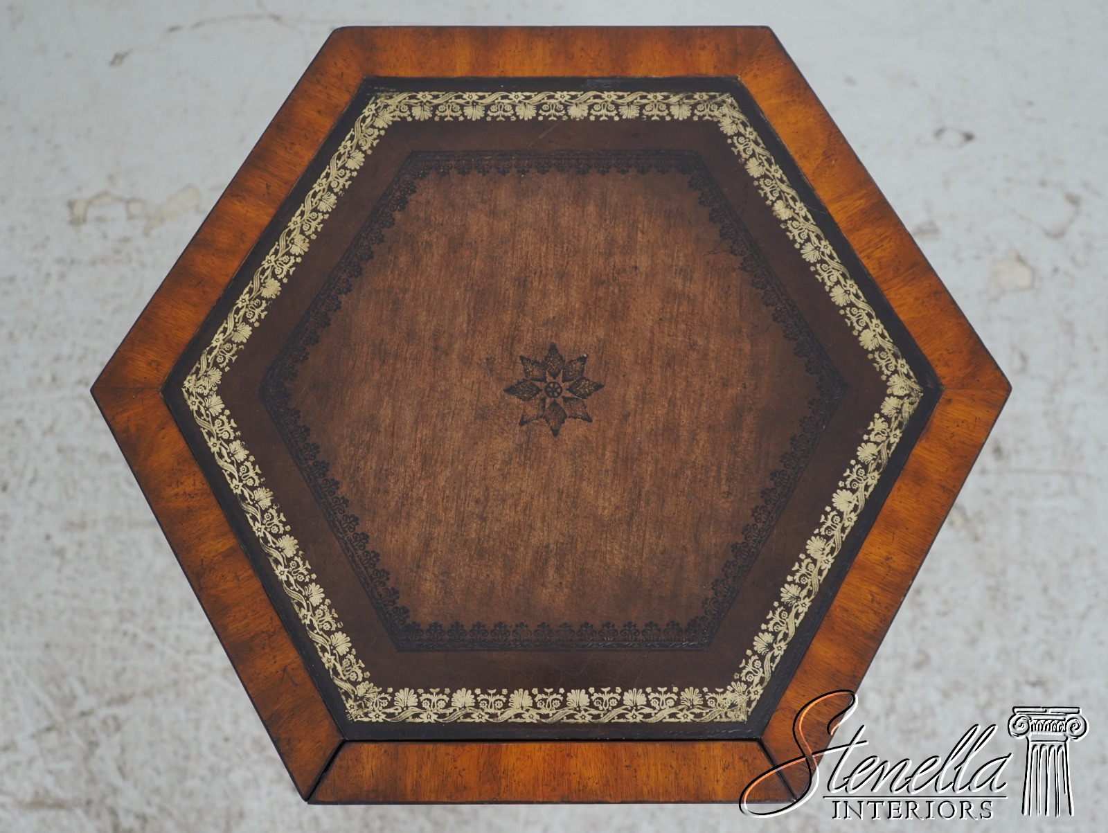 L69797: MAITLAND SMITH Hexagon Leather Bookspline Lamp Table