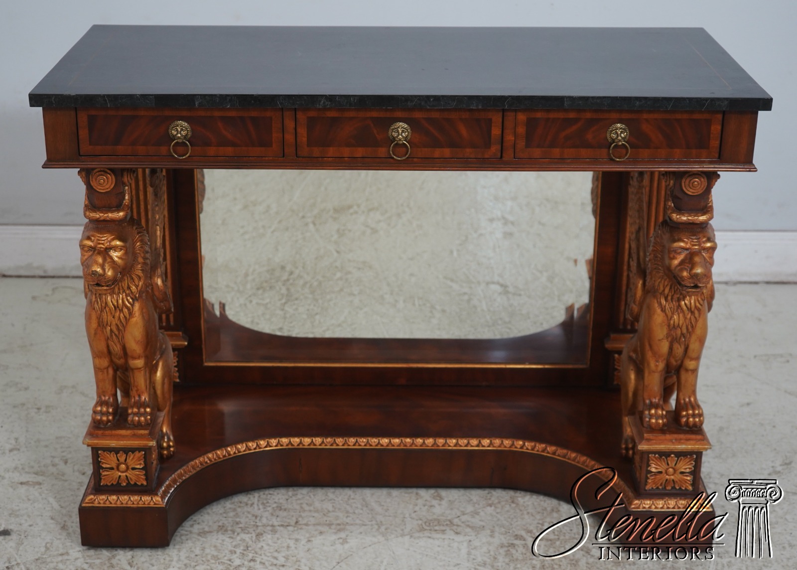 Details: Mahogany Tessellated Marble Overlay Top Beveled Glass Fine Carved Details High Quality Construction Mirrored Back Gold Painted Details Solid Brass Hardware Figural Mahogany Offered @ Fraction Original Retail Cost