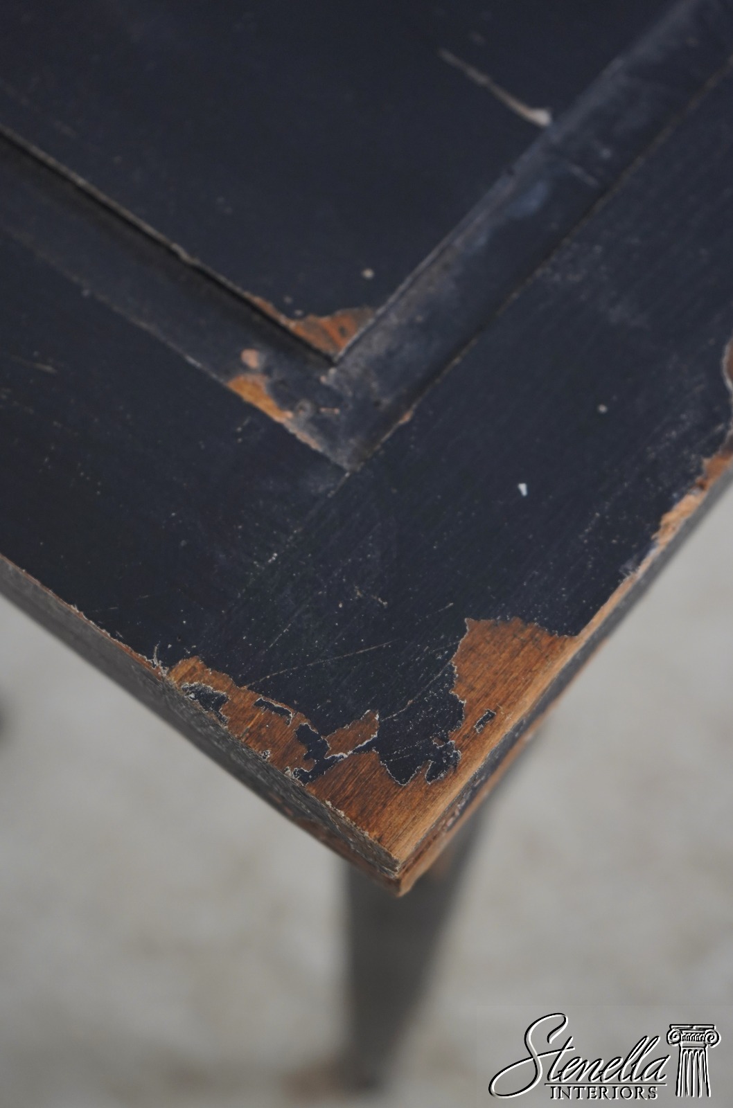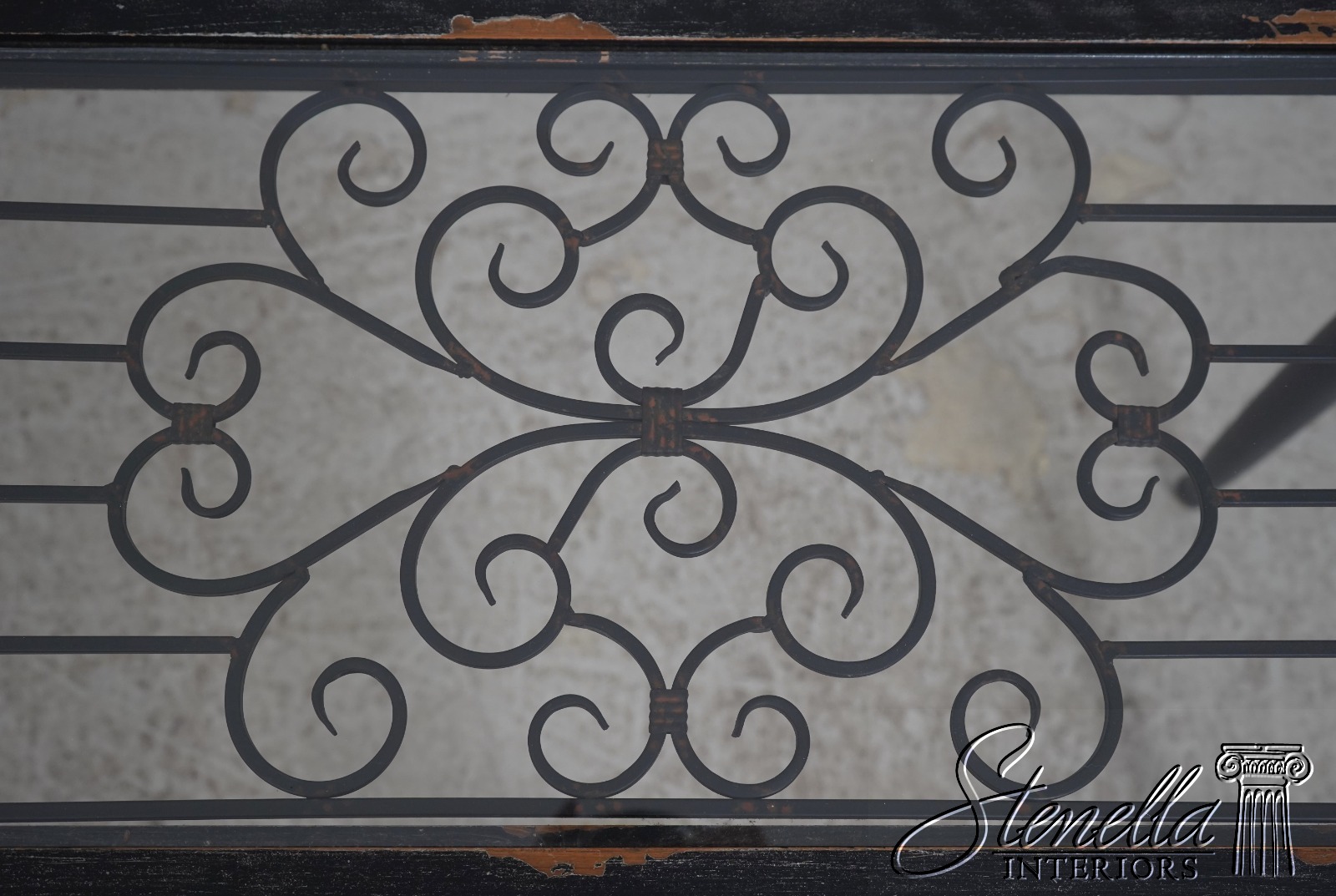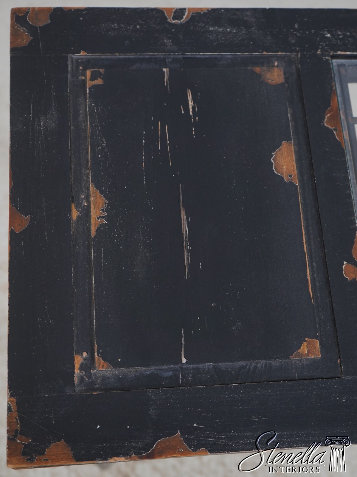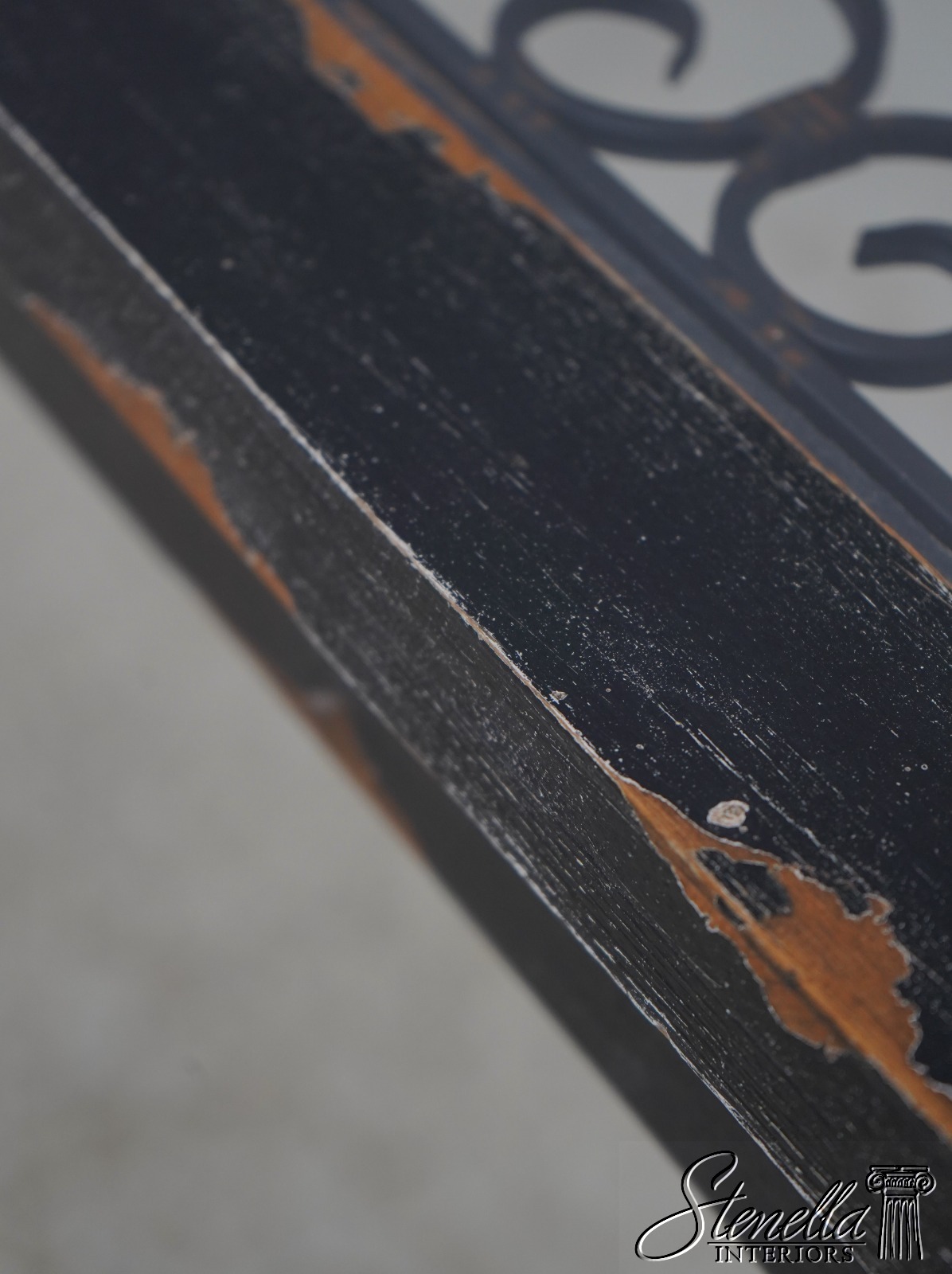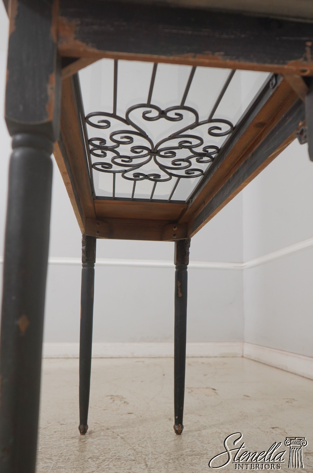 Details: High Quality Construction Factory Distressed Metal Corner Supports Unique Continental Style Table Intentional Distressed Finish Un-Marked As To Manufacture Inset Metal Grill Offered @ Fraction Original Retail Cost