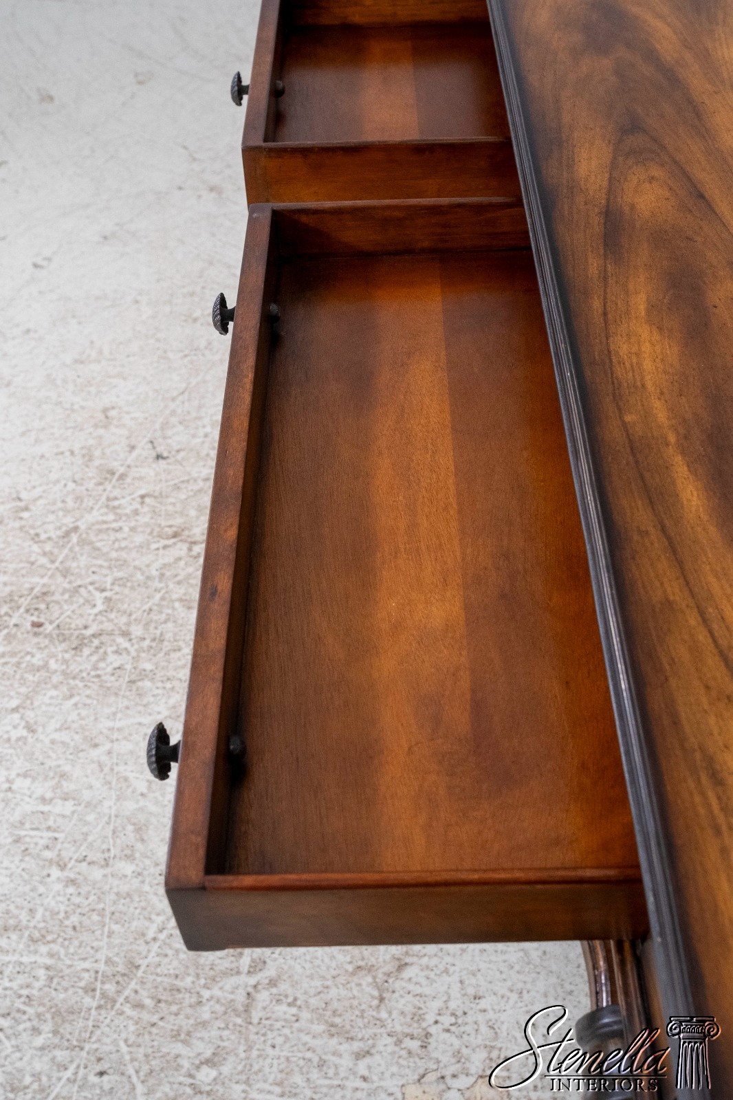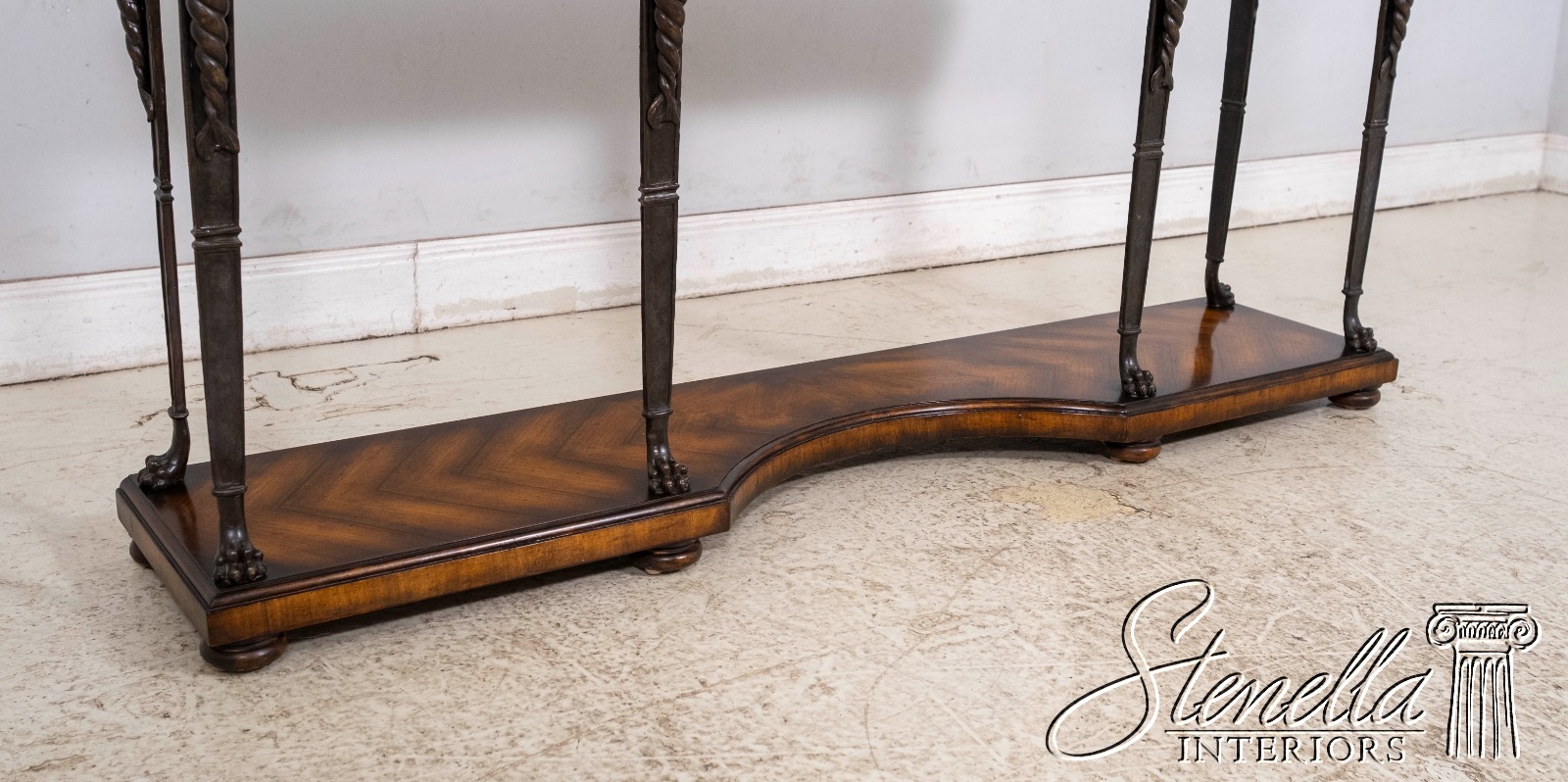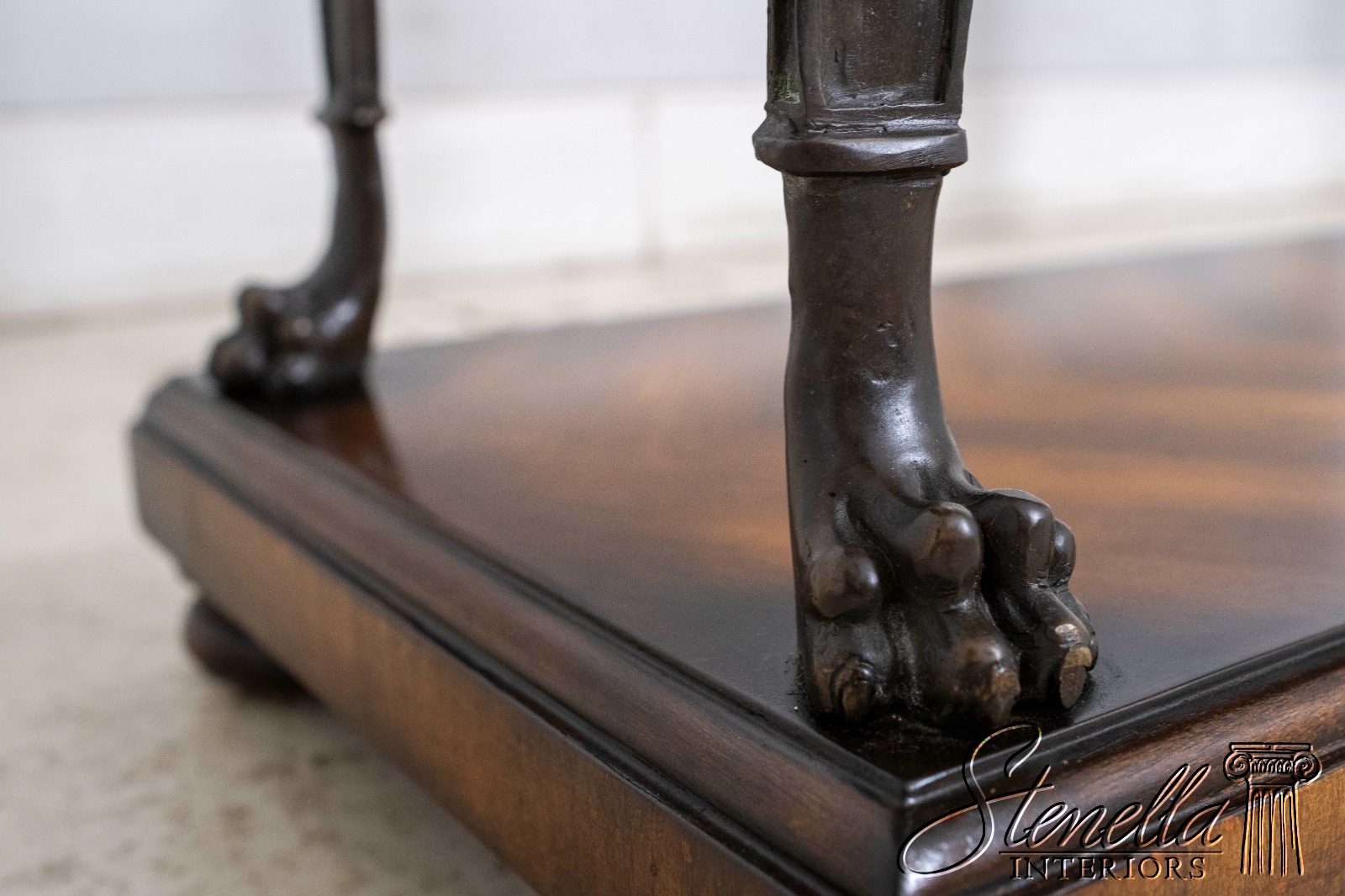 Details: Stunning Decorator Table Bun Feet Dovetailed Drawer Construction High Quality Construction Nice Inlay Work Throughout Traditional Style Bronze Trim Work Shell Form Pulls Detailed Bronze Figural Legs Low Lip Metal Gallery Offered @ Fraction Original Retail Cost