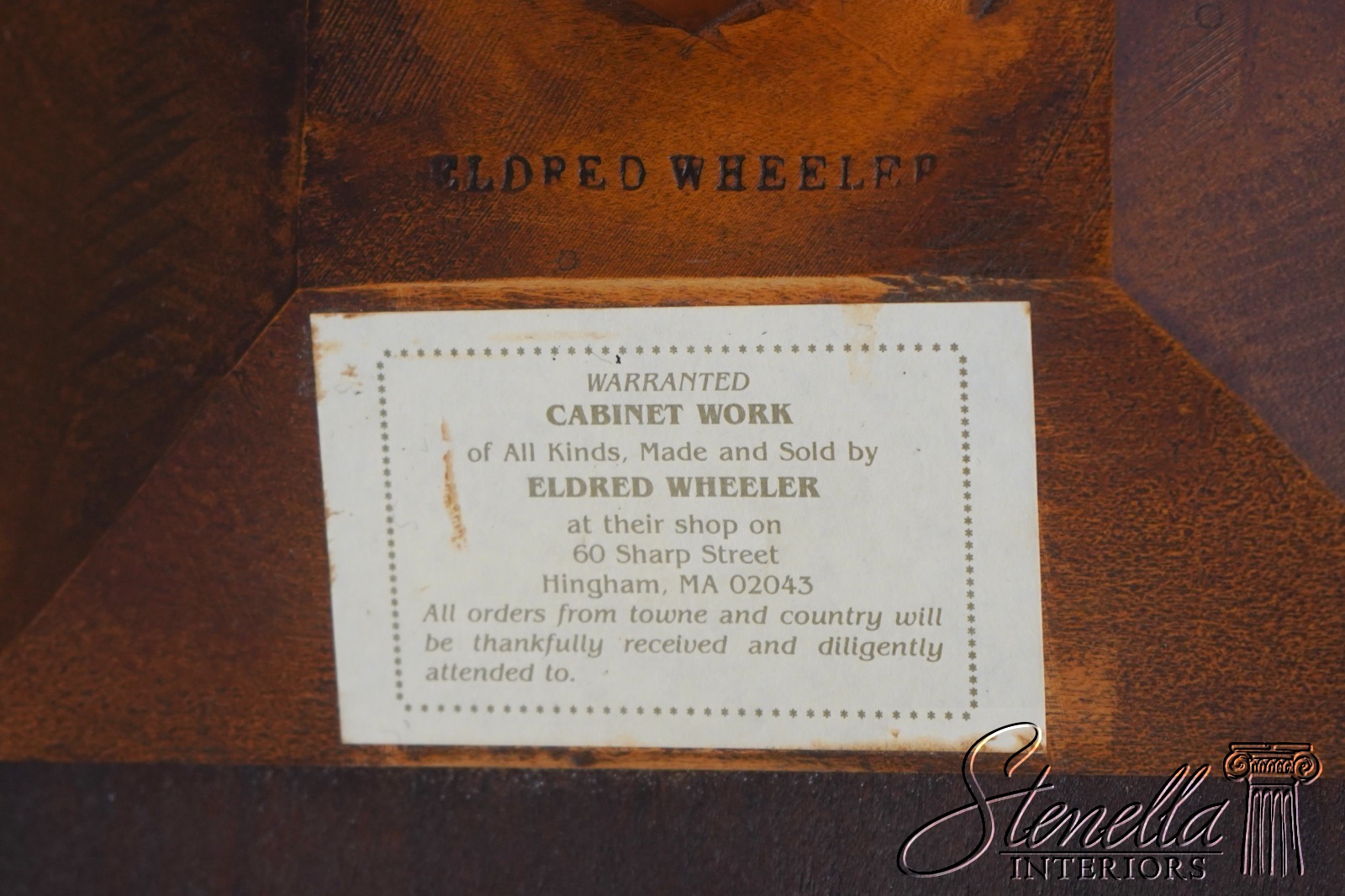 | Paypal | Ebay Payments | | Visa/MC/AMEX/DIS | Contact for credit card processing | | Check | Mail to: Stenella Antiques & Interiors