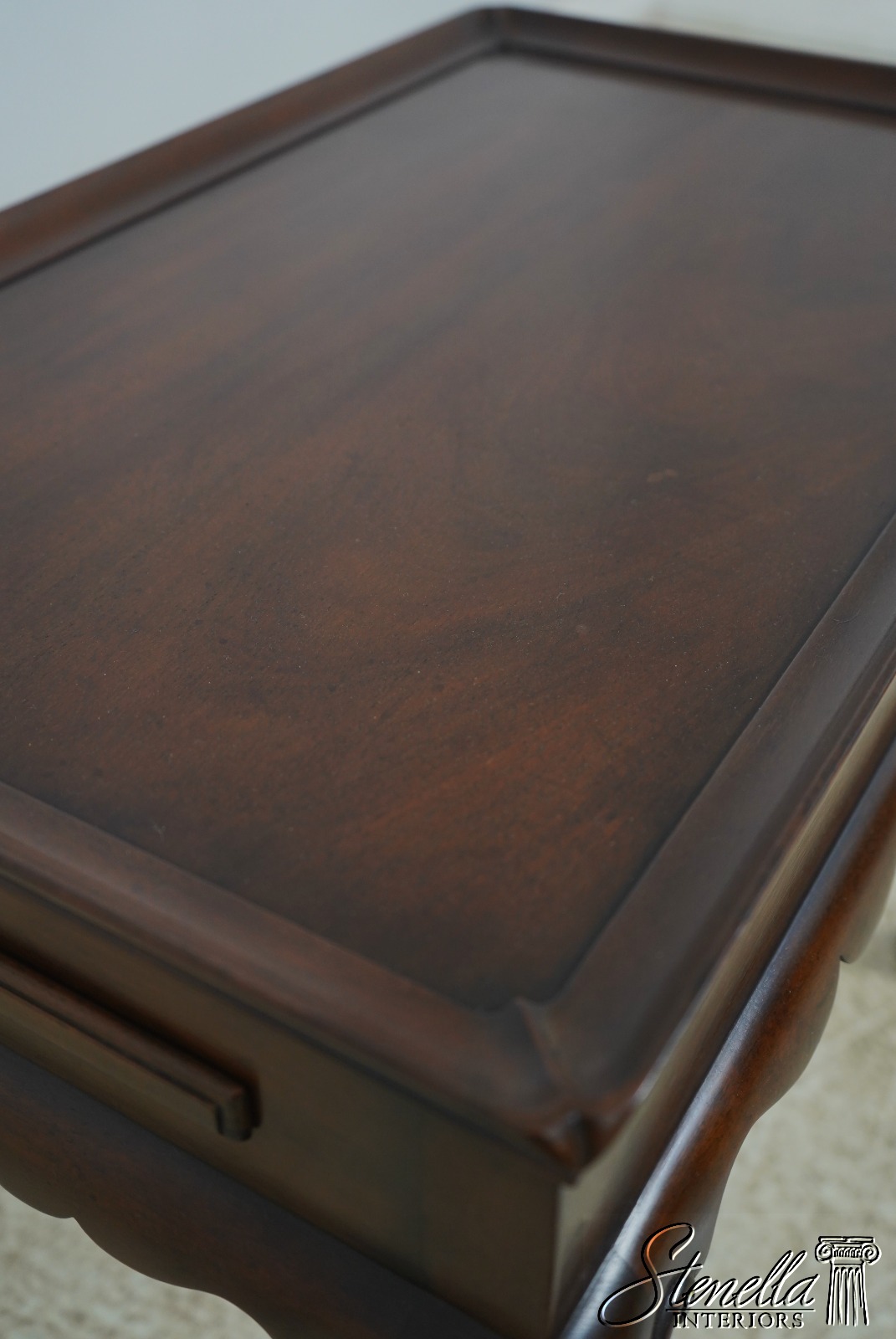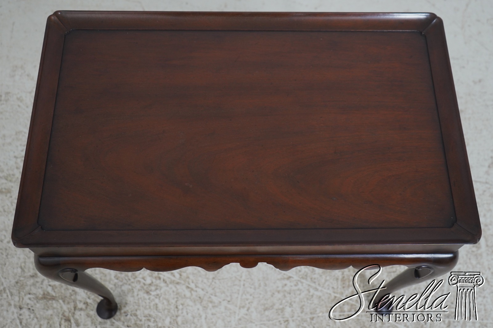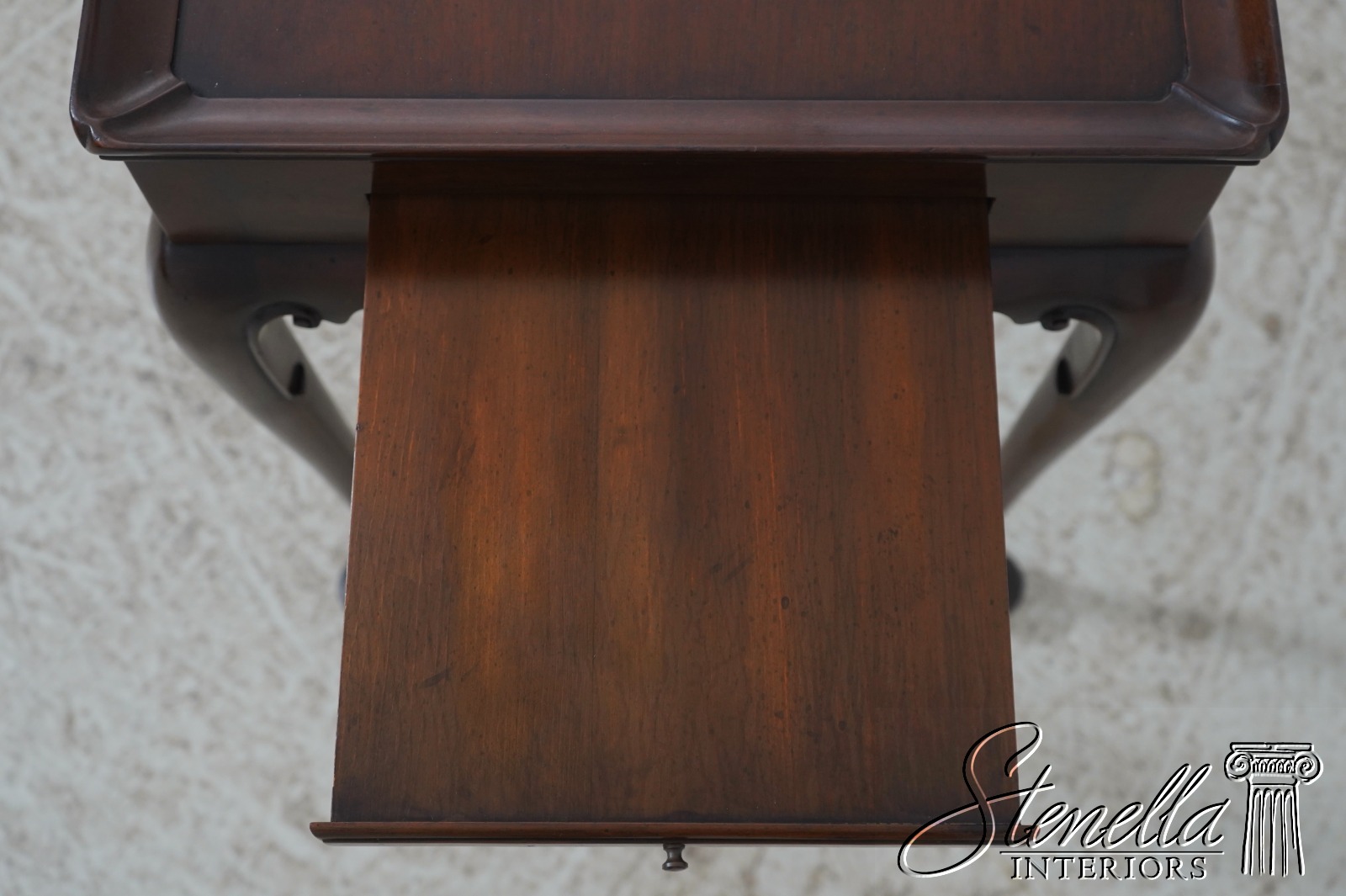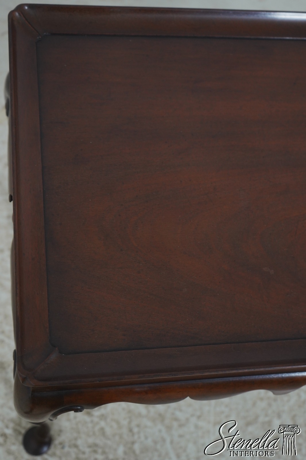 The original of this piece is American circa 1735-50. This elegant mahogany tea table was designed by a Massachusetts cabinetmaker. It is made of mahogany with pine candle slides. Note the graceful scallop of the apron and the delicate hand carving of the cabriole legs.