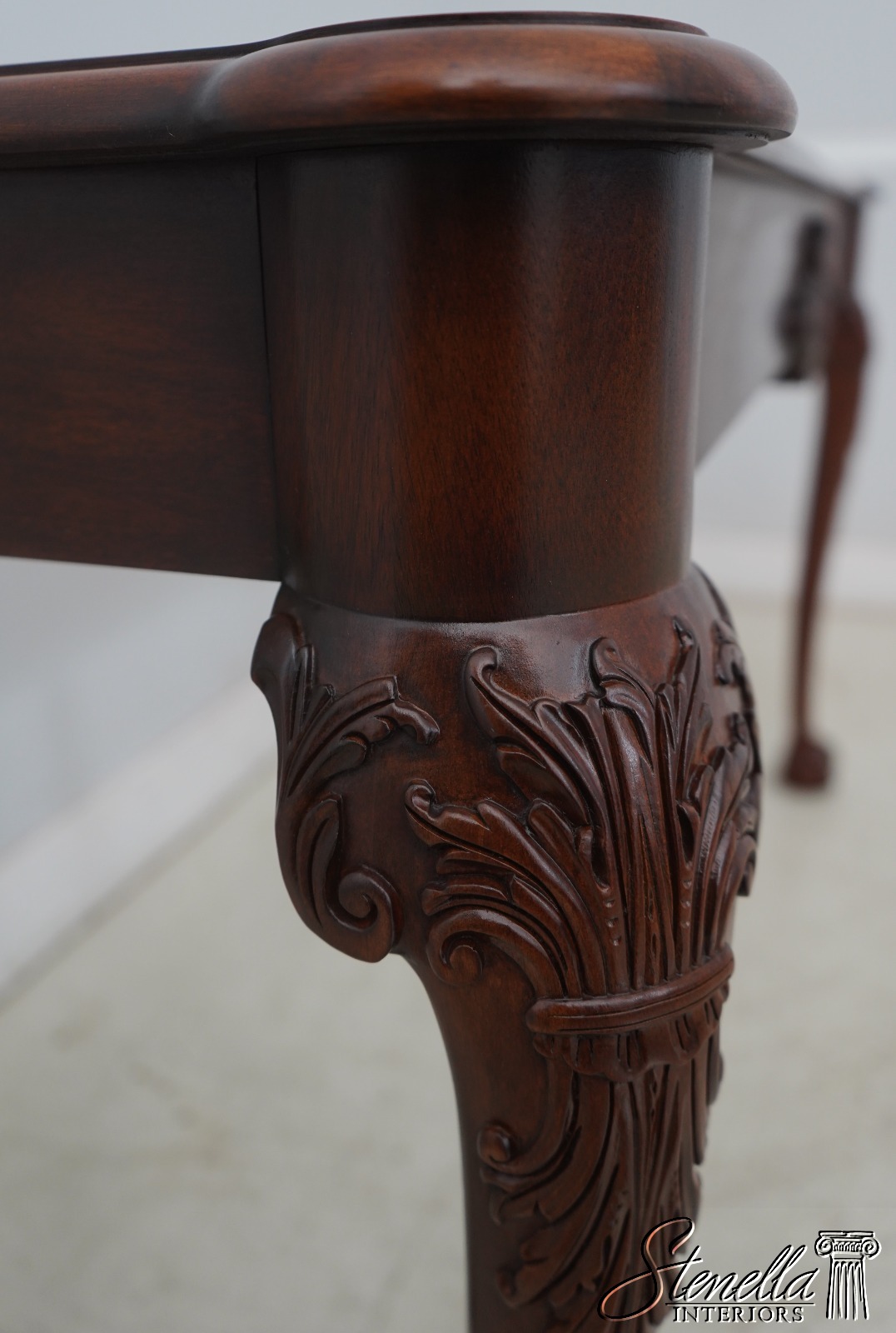 Details: Finish no. 29 Ball & Claw Feet Fine Carved Details High Quality Construction 18 C. Design Chippendale Style Gorgeous Figural Mahogany Finish Traditional Style Offered @ Fraction Original Retail Cost