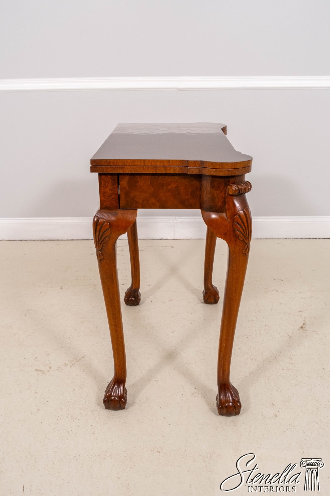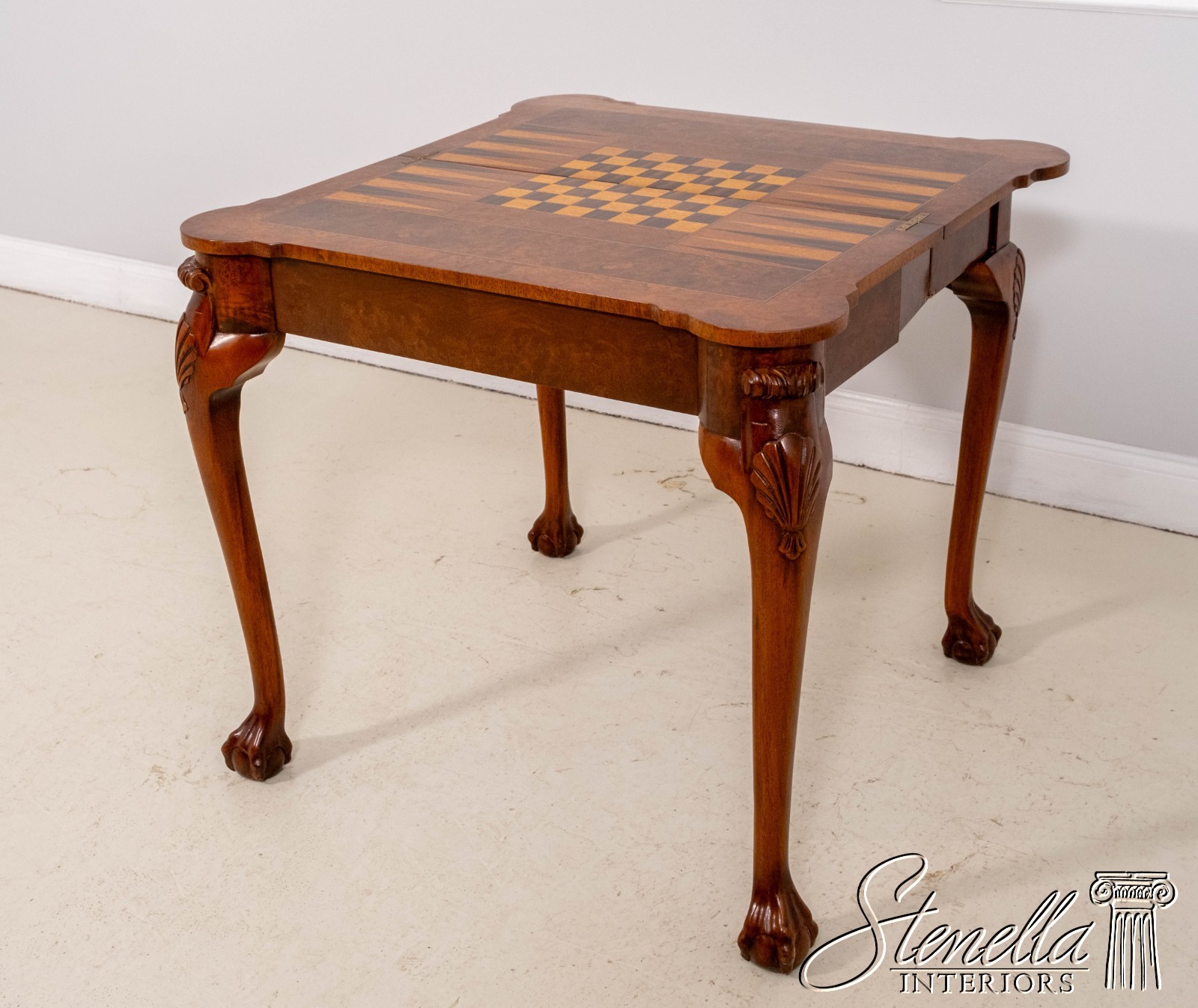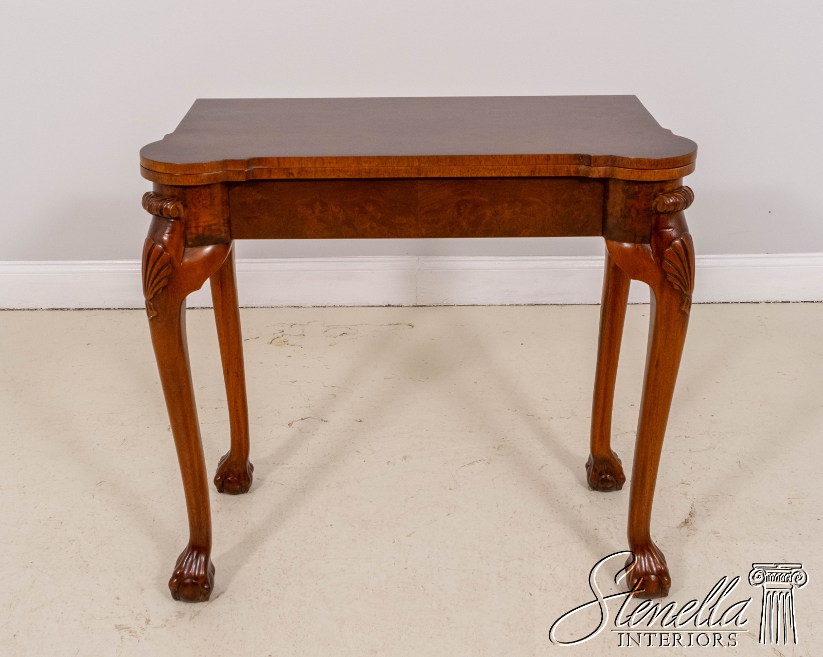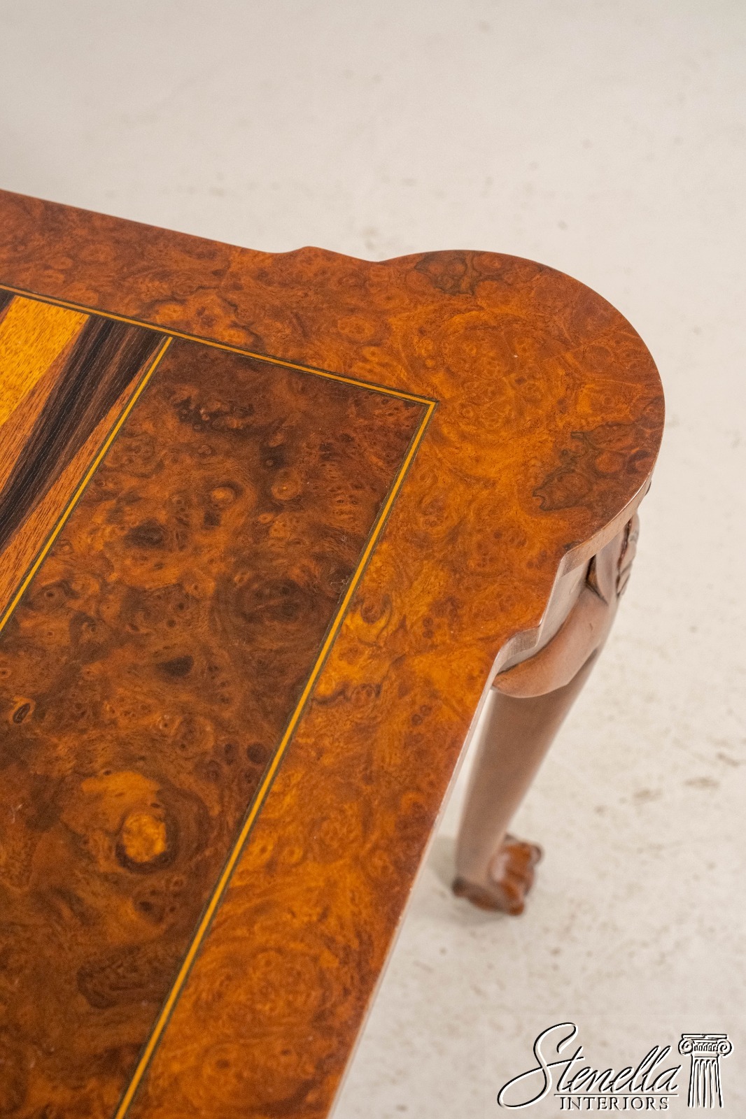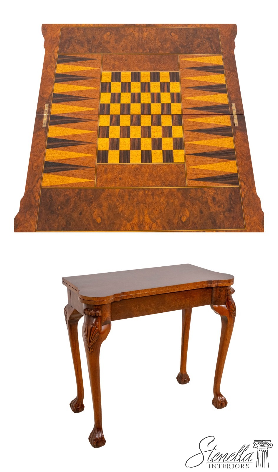 L70594: Chippendale Style Burl Walnut Flip Top Inlaid Game Table