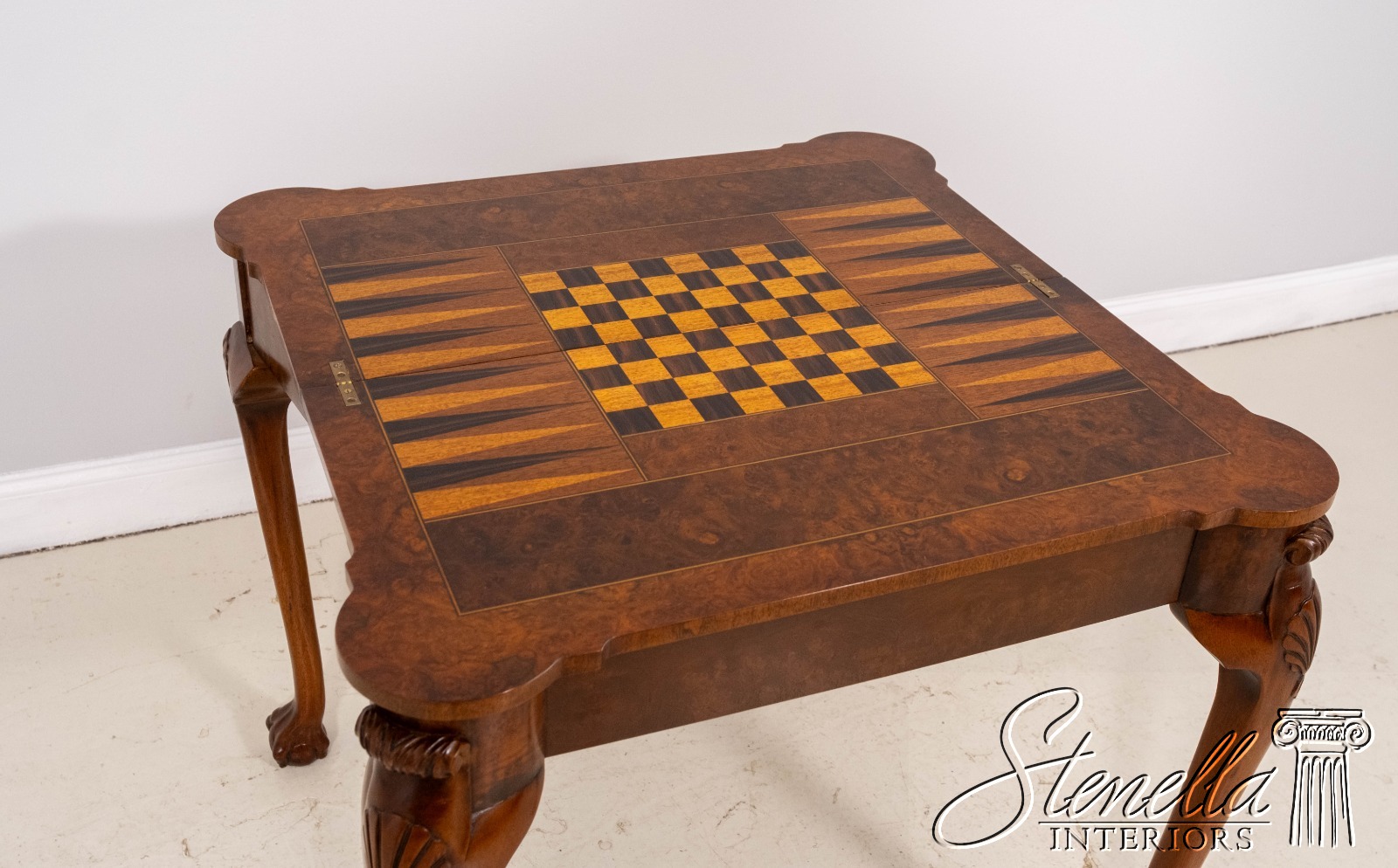 - L70594: Chippendale Style Burl Walnut Flip Top Inlaid Game Table