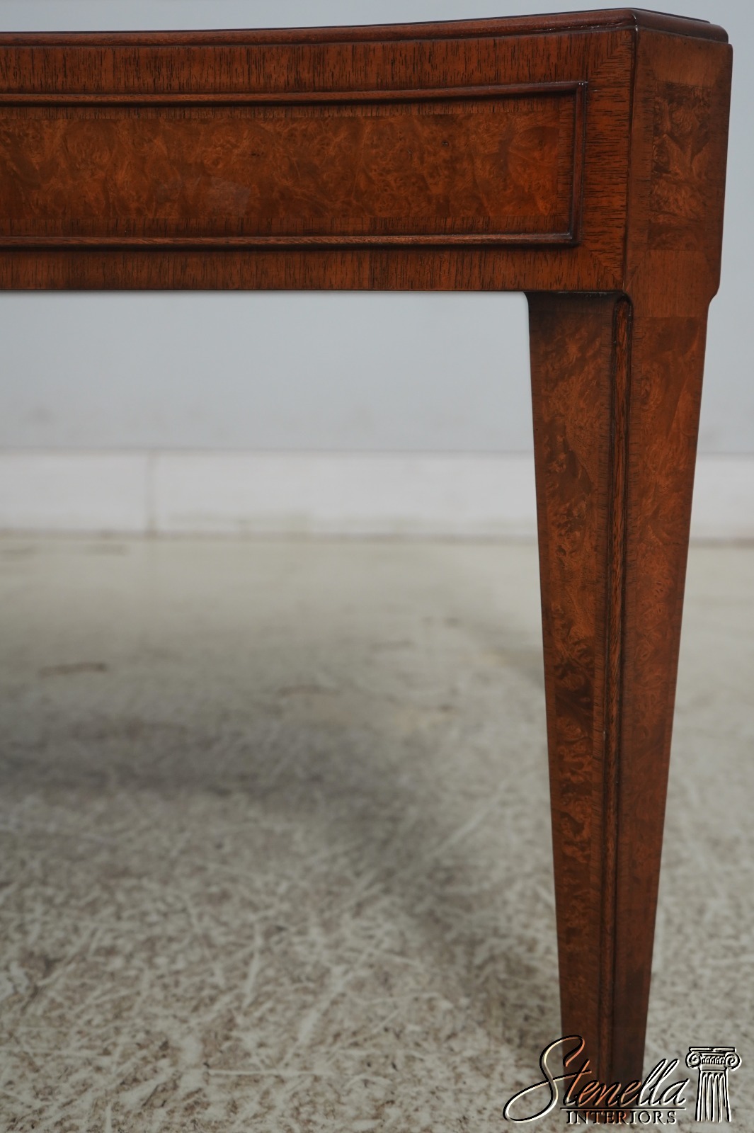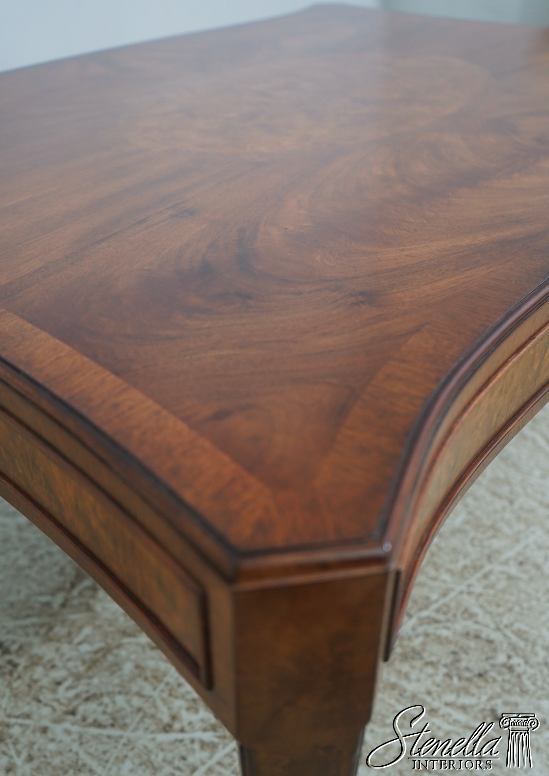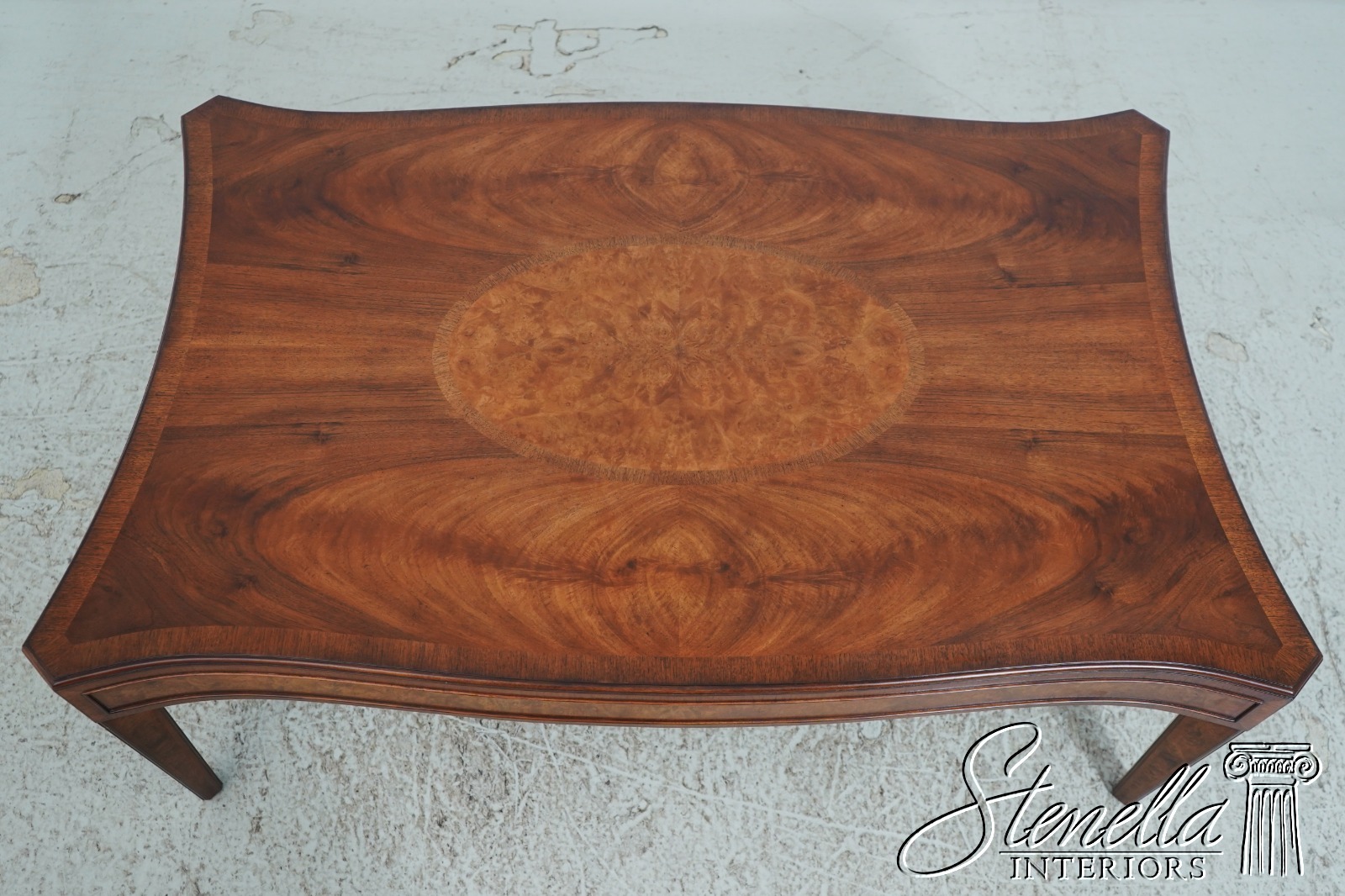 Details: High Quality Construction Large Impressive Table High Quality Construction Sheraton Style Gorgeous Mahogany Top w. Burl Walnut Center Inlay Offered @ Fraction Original Retail Cost